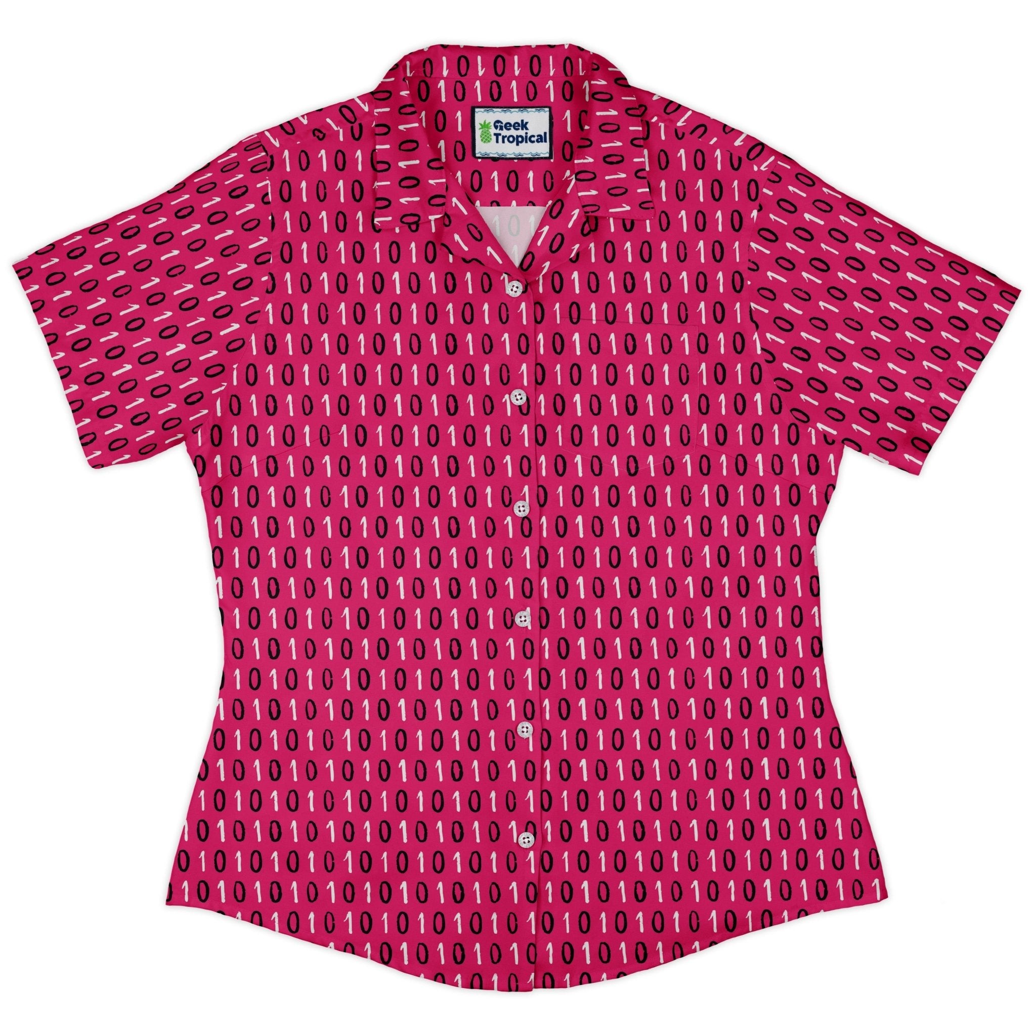 1s and 0s Pink Binary Curvy Button Up Shirt