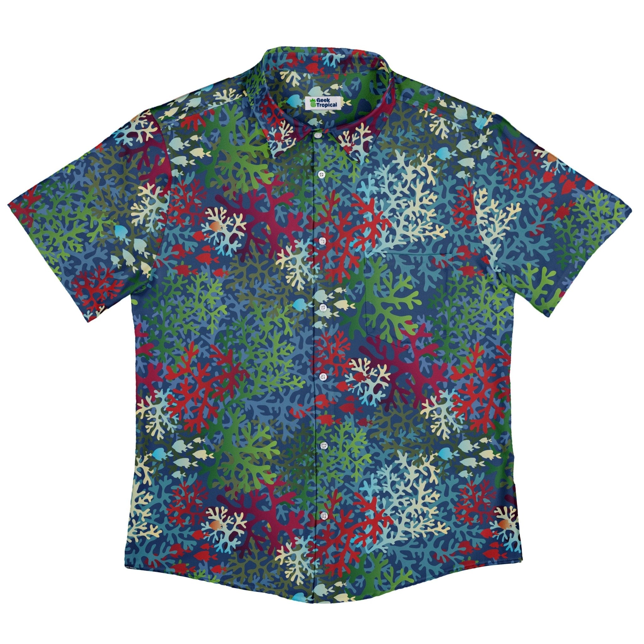 Meet A Christmas Coral Button Up Shirt: a reef-to-wreath mashup that turns marine biology into holiday style. Intricate coral branches tangle into a crisp, all-over repeat with clean flow across the front for a seamless look. The festive palette pops without shouting, making it equally at home at office parties or aquarium nights. Geeky, playful, and artist-backed—your seasonal statement under the sea.