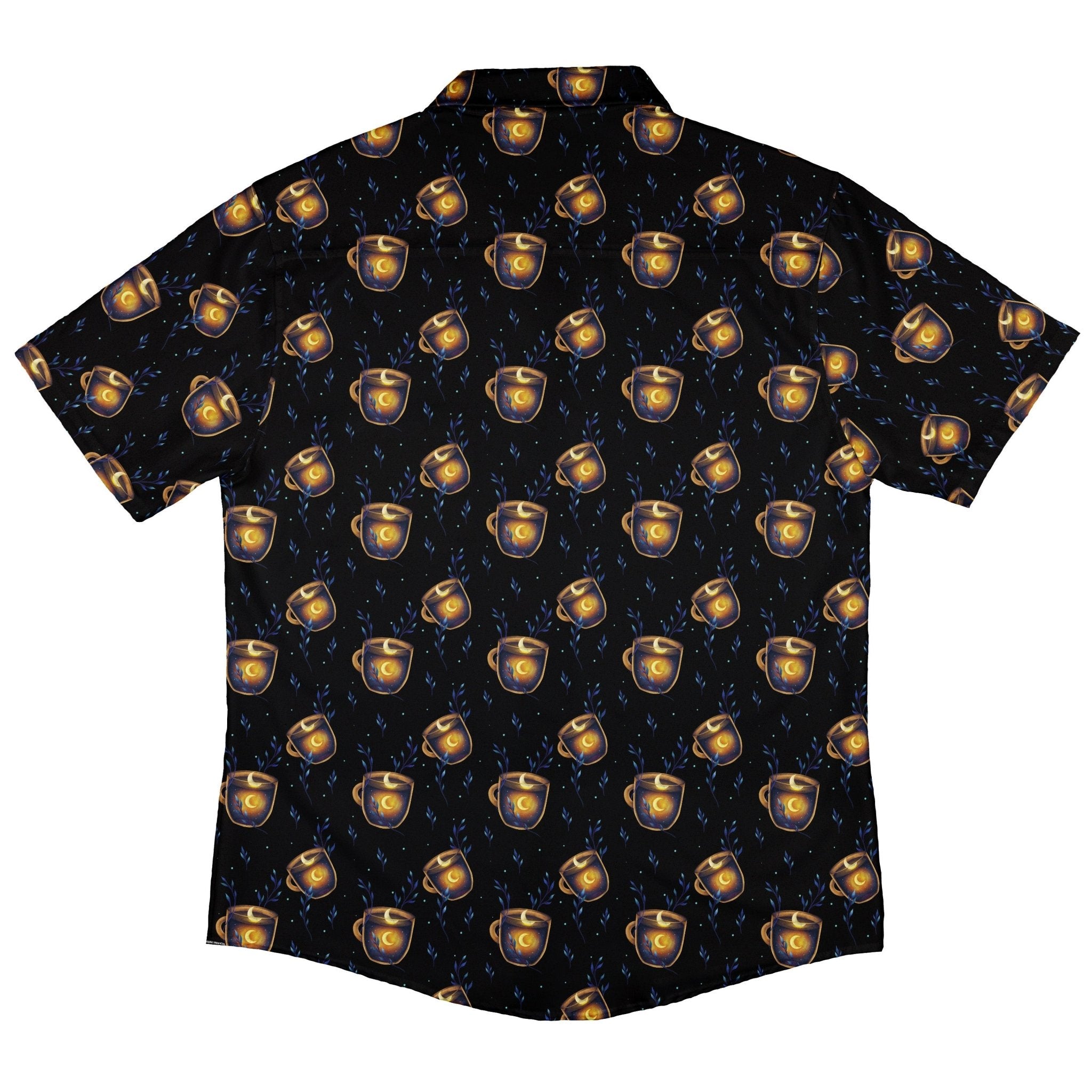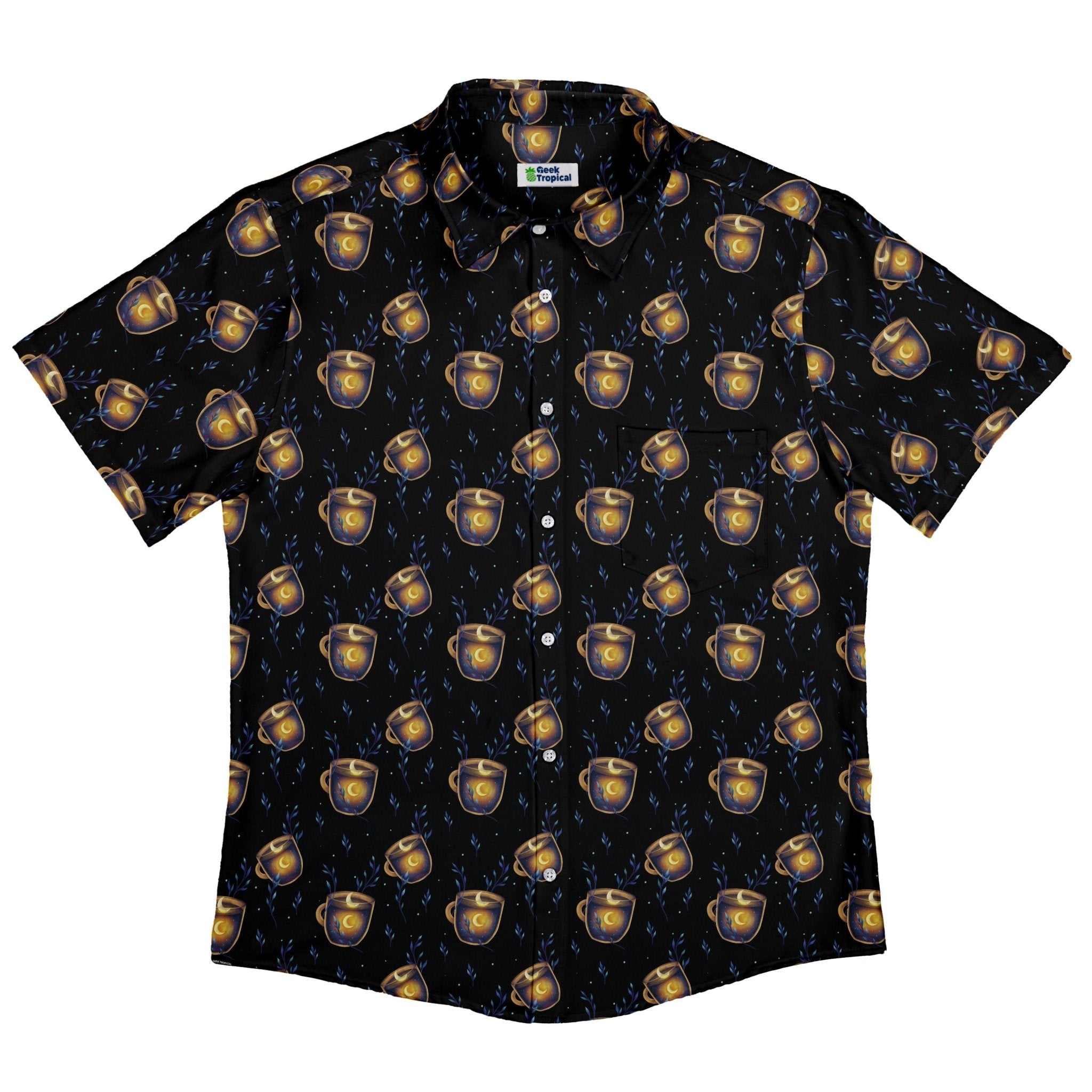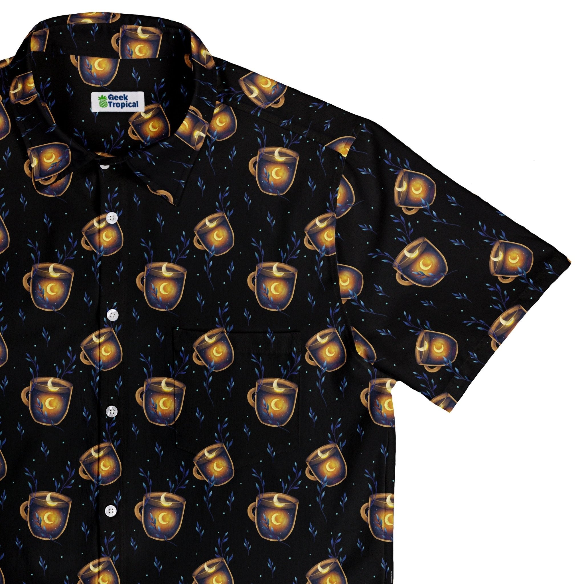 Meet the A Cup of Moonshine Button Up Shirt—your invite to a stargazer’s coffee break. A dreamy night-sky print scatters crisp stars and pale moons as a lone astronaut floats serenely across the fabric, blending cosmic whimsy with clean, modern lines. Designed by Episodic and finished with eco-conscious inks, it brings geek-to-chic energy and an easy unisex vibe to con floors, date nights, and midnight moon-walks.