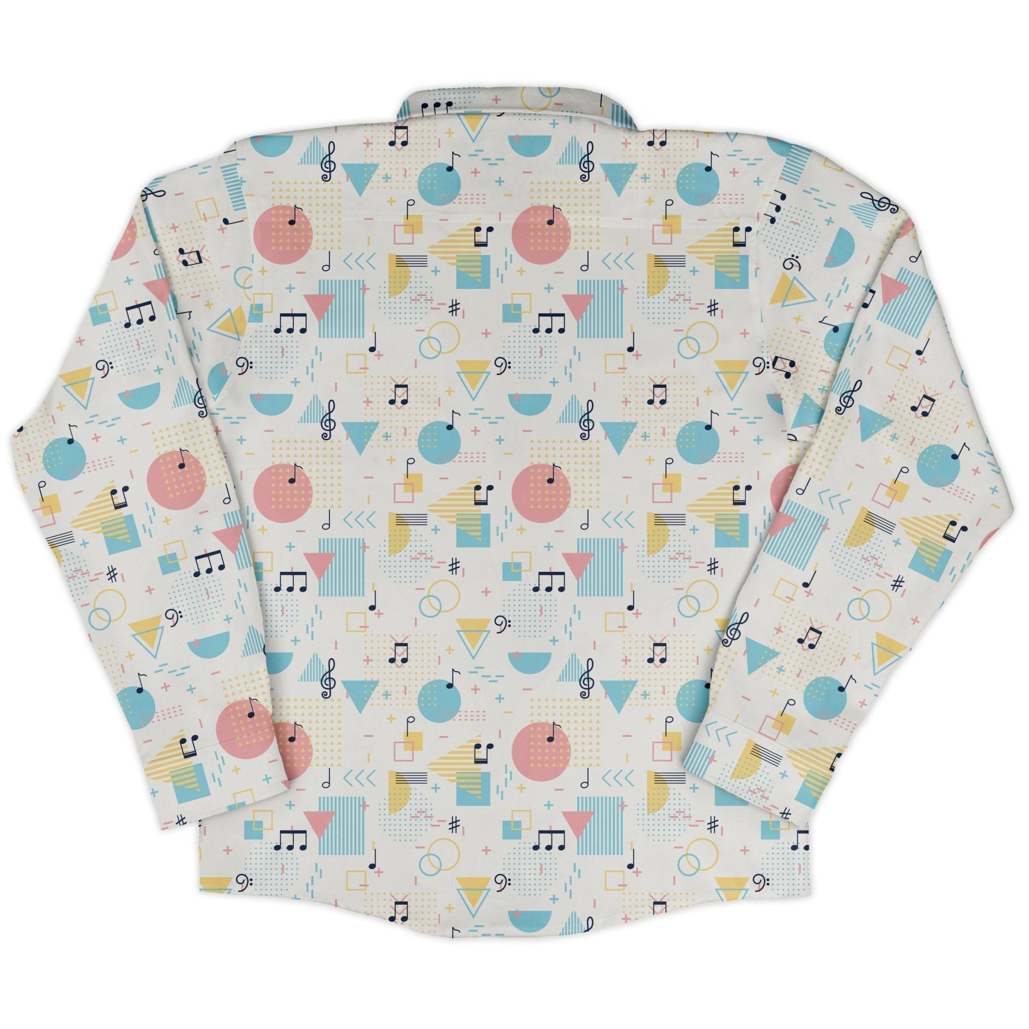 Alphabet Music Memphis Style White Long Sleeve Button Up Shirt