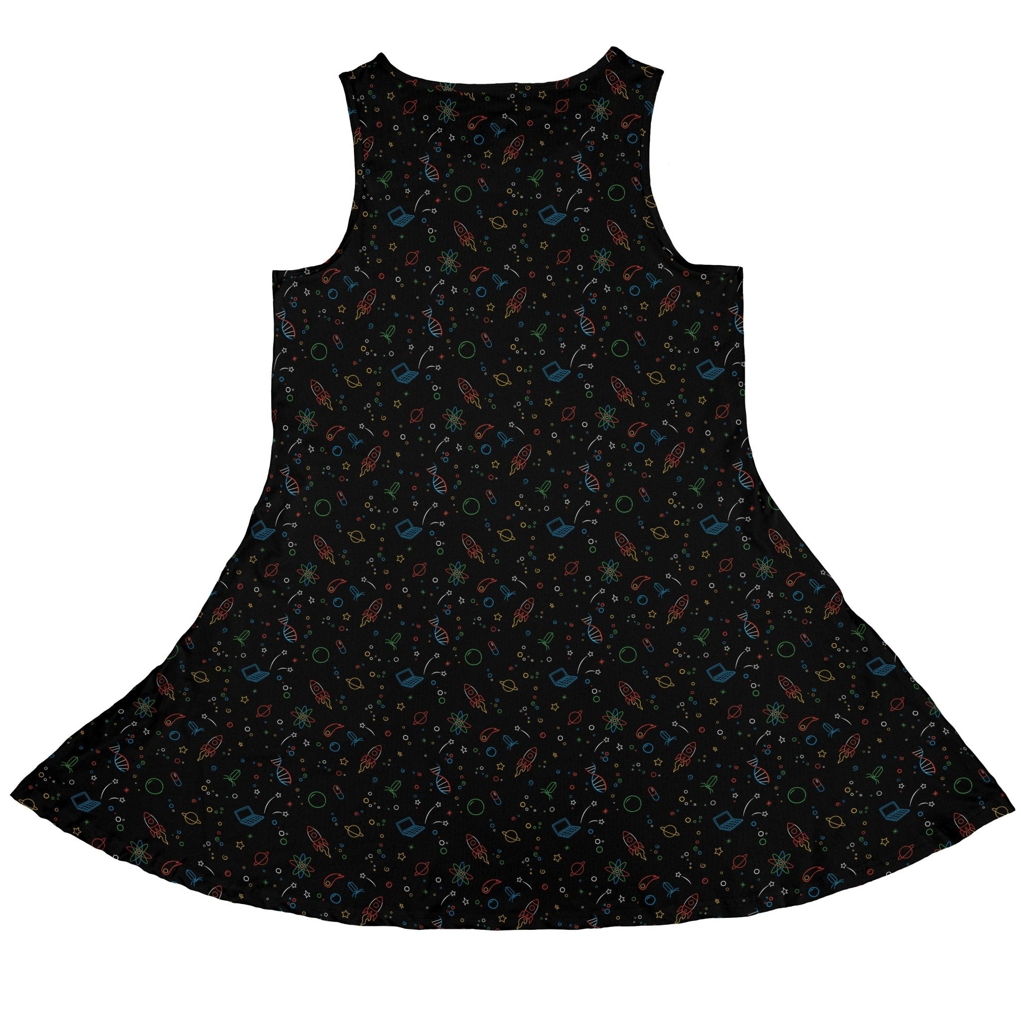 The Always Science Icons Dress salutes your inner lab legend with an all-over constellation of clean, minimalist science symbols. Designed by Tobe Fonseca, it balances geeky charm with a refined, everyday vibe. Soft, breathable stretch moves with you while the fabric stays confidently opaque. Deep pockets handle your phone—and yes, a gamepad. Dress it up or down, and know your purchase directly supports the artist who created it.