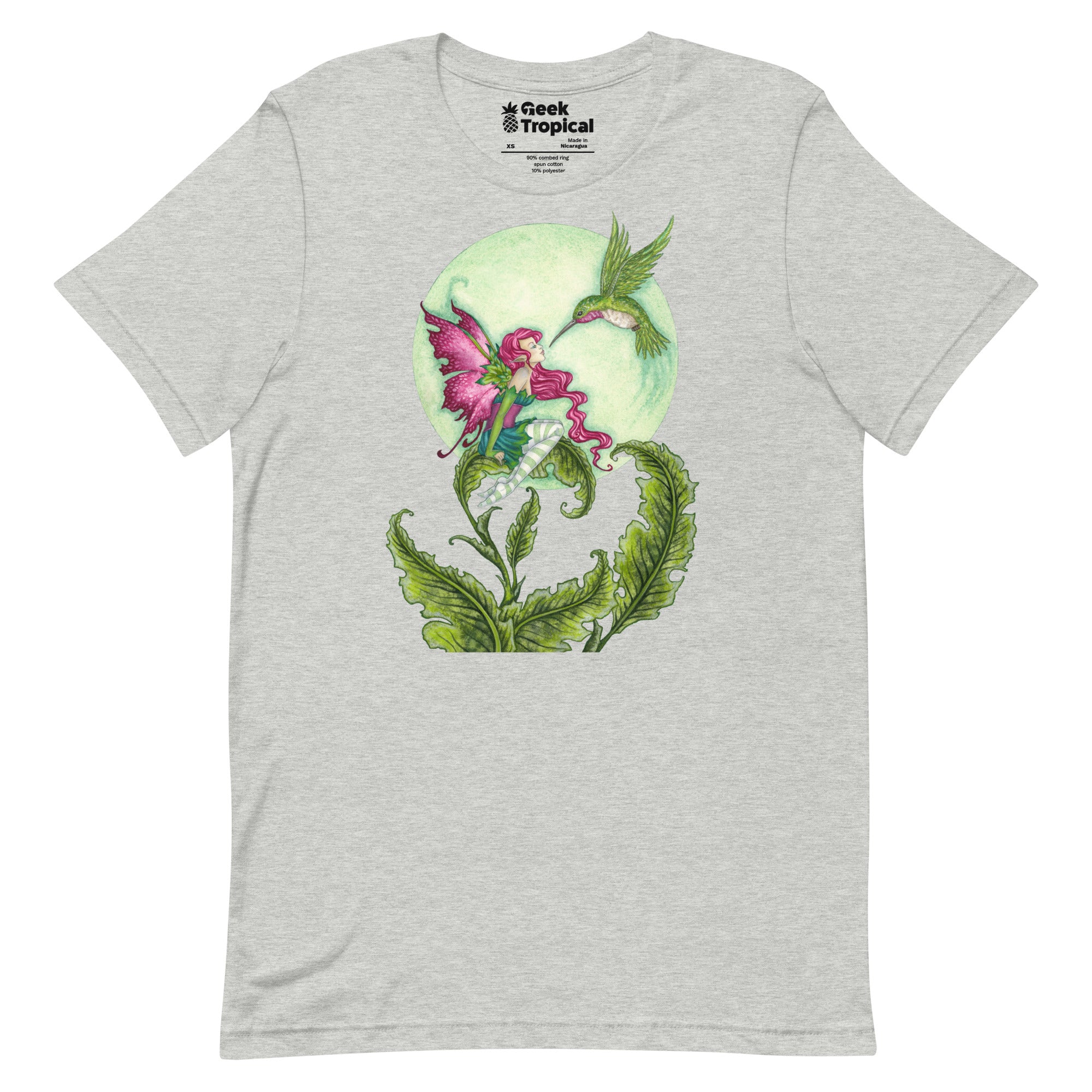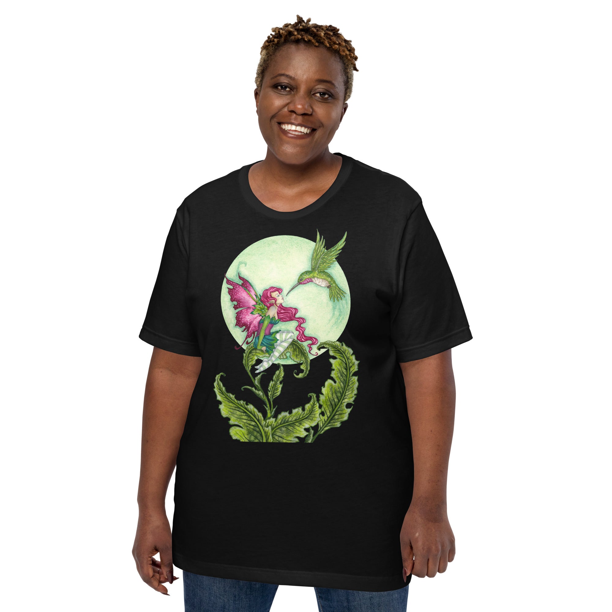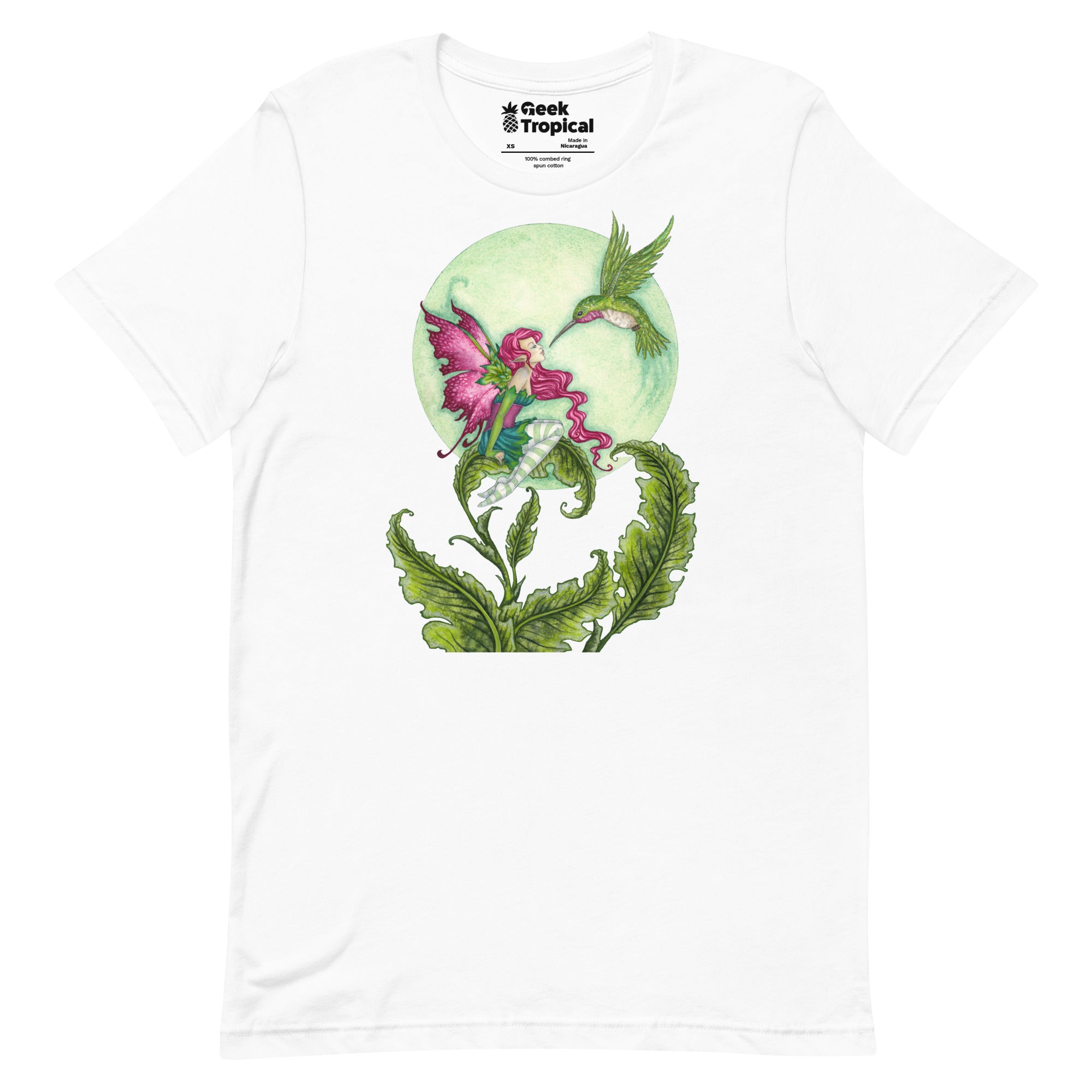 Meet the Fairy and Hummingbird T-Shirt, a wearable daydream for fantasy fans. Designed by Amy Brown, the art frames a graceful fae poised mid-breath as a curious hummingbird hovers near, wings a blur and details crisp and enchanting. Vividly printed with eco-conscious inks, this official, artist-supported piece brings fae whimsy to everyday quests - perfect for fairycore fits, nature nerds, and gentle-goth geeks alike.