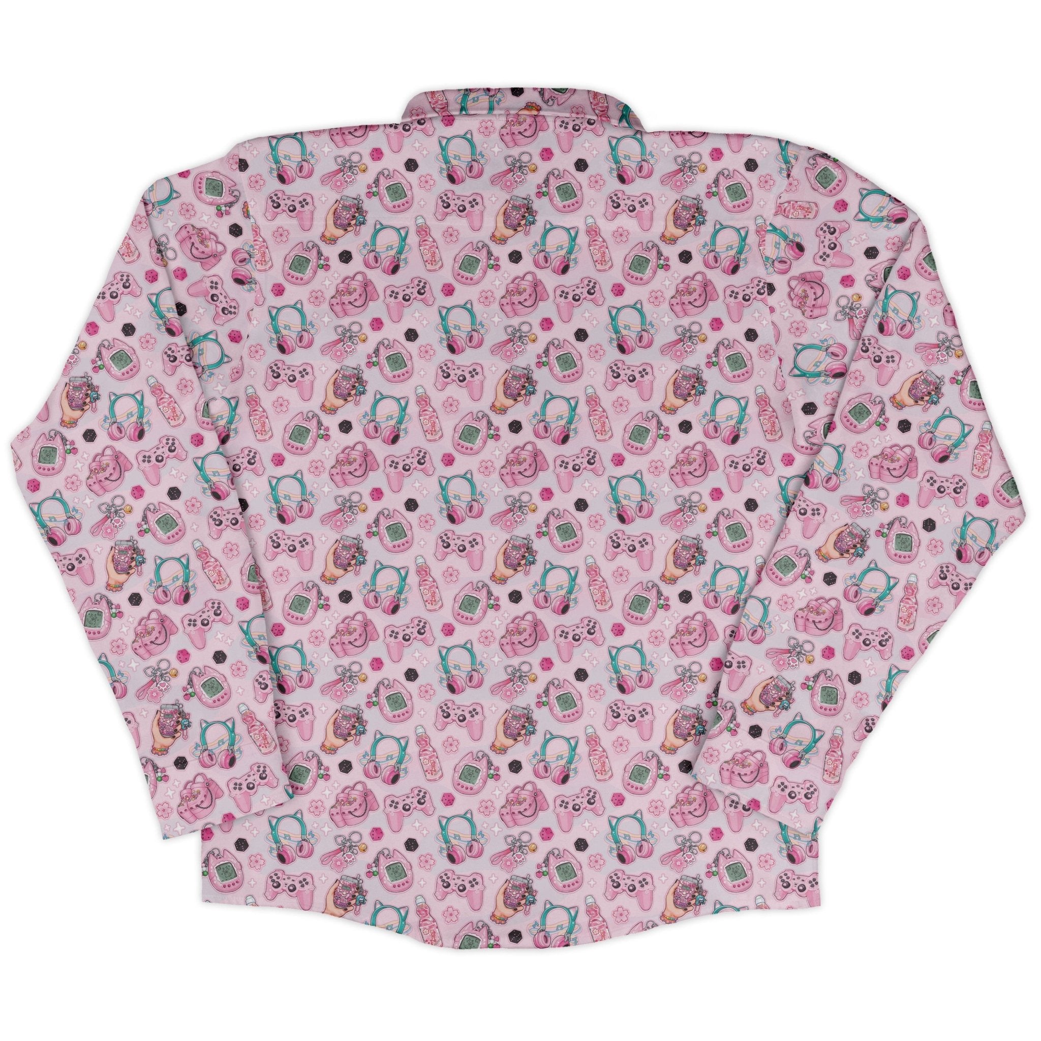 Anime Gamer Items Pink Long Sleeve Button Up Shirt