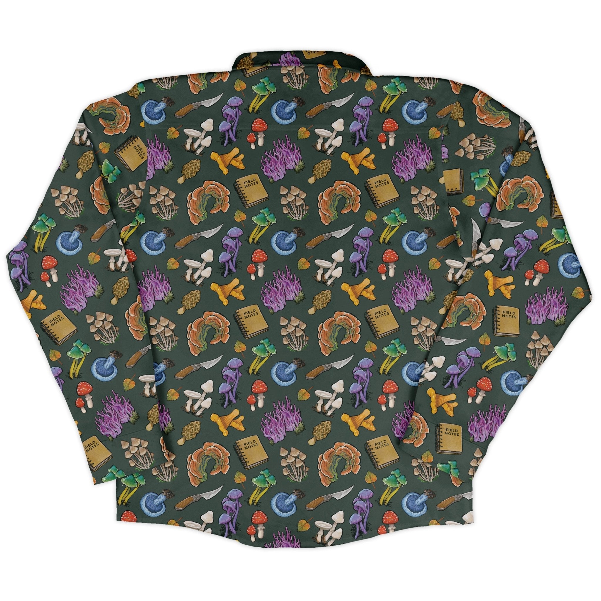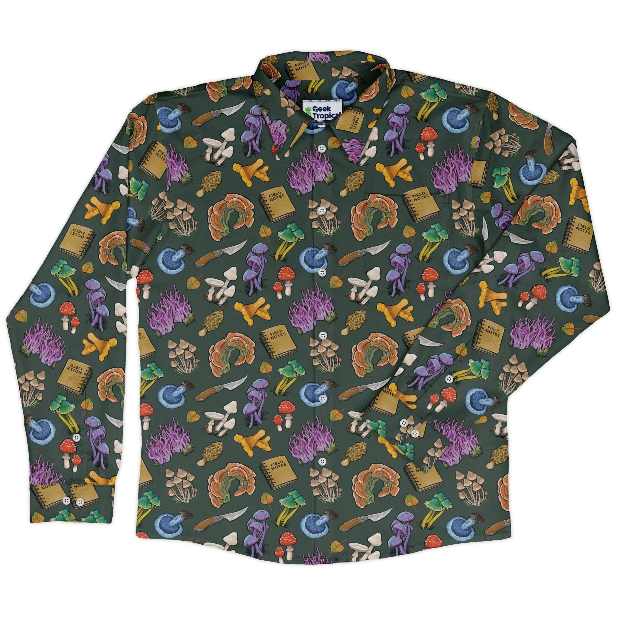 The Anime Mushrooms Long Sleeve Button Up Shirt is a botanical flex for anime lovers. Designed by Ivy Dolamore, it features an allover grove of characterful fungi rendered with playful linework and manga energy, from tiny stems to oversized caps. A clean collar and long sleeves keep it sharp for workdays or con days. Printed with eco-conscious inks and artist-backed, this one brings geeky nature to your rotation.