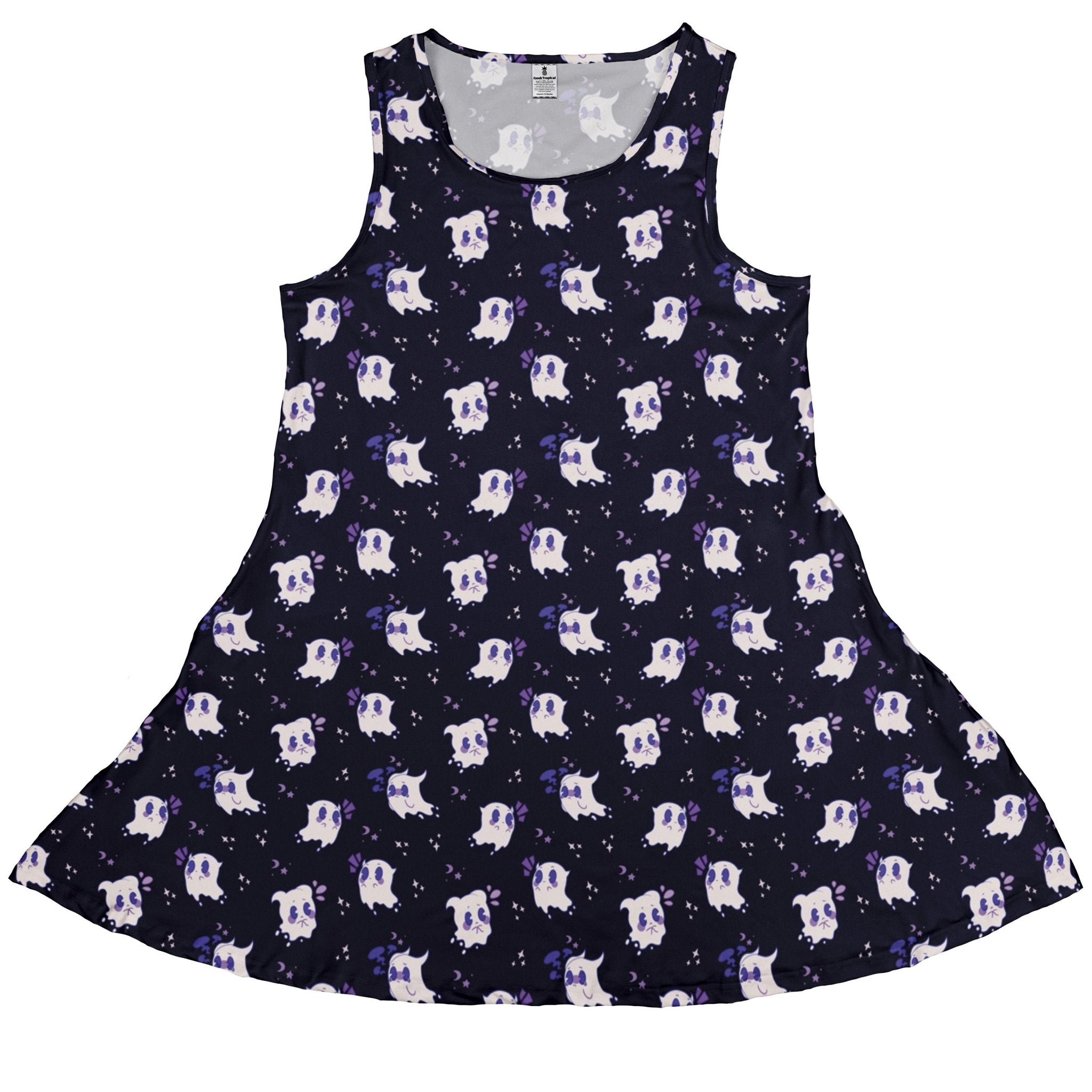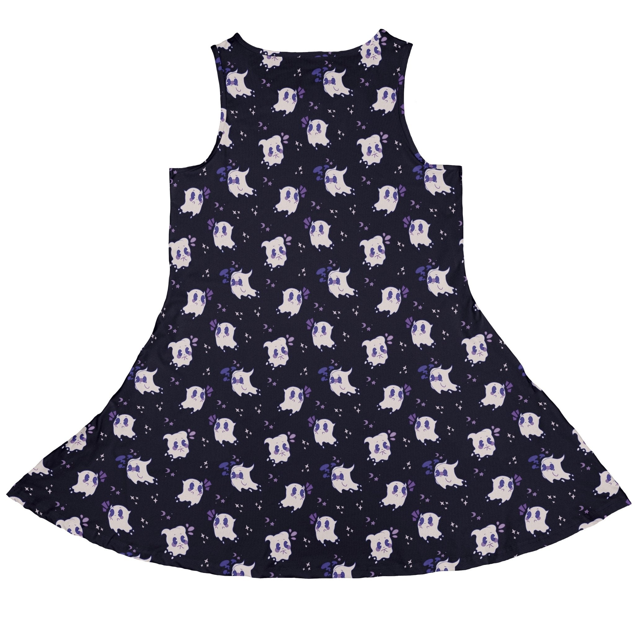 Meet the Anxious Ghosts Purple Dress, a playful haunt for your wardrobe. On a saturated purple field, a scatter of bashful little ghosts floats in a tidy all-over pattern—cute, a bit jittery, and ready for adventures. Handy pockets keep your gear close, and the clean finish dresses up or down for game night, cons, or Halloween hangs. Designed by Ardi Tong and proudly artist-backed.