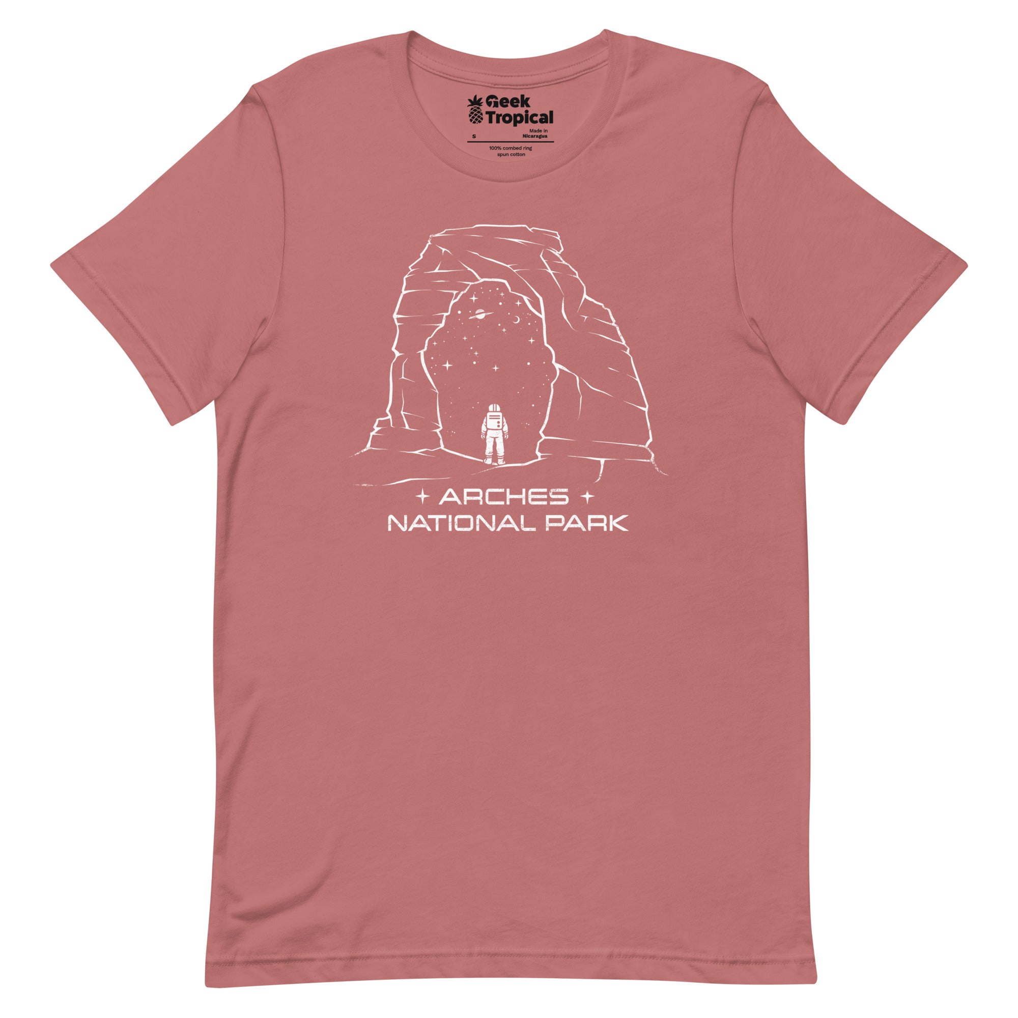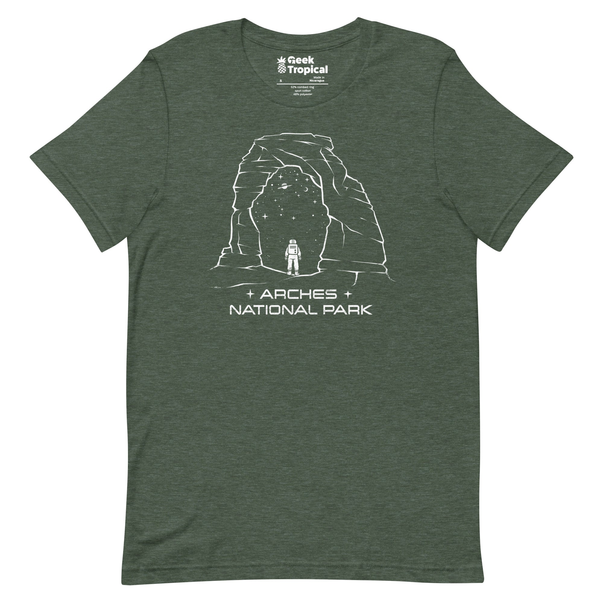 Arches National Park T-Shirt celebrates the desert’s sculpted geology with a crisp, stylized scene of natural rock arches and open sky, arranged in bold, balanced lines that stand out without shouting. Designed by Tobe Fonseca for Geek Tropical’s park-loving nerds, it’s artist-backed and printed with eco-conscious inks—perfect for road-trip dreams, trail days, and everyday awe for ancient stone.