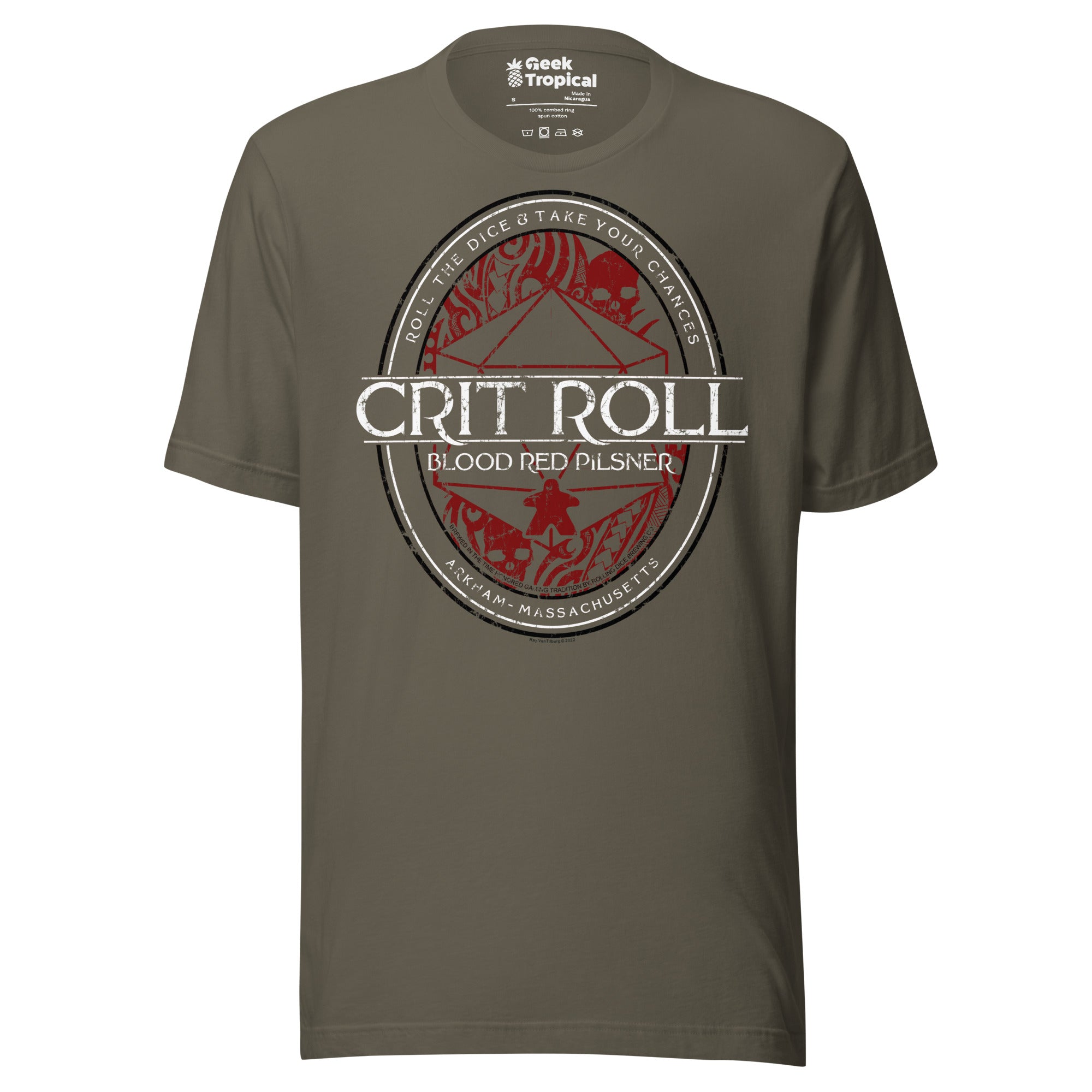 The Arkham RPG Crit Roll T-Shirt blends horror-academia swagger with tabletop pride. The print puts Arkham in bold type with RPG callouts and a clear “Crit Roll” highlight—perfect for that nat-20 grin. Clean linework and moody contrast keep it sharp from game night to streetwear. Designed by Off World Designs, this artist-backed piece suits Dnd storytellers who like their victories a little eldritch.