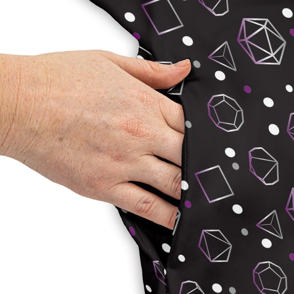 The Asexual Pride Flag Dnd Dice Dress levels up your look with bold black, gray, white, and purple striping, dotted with crisp Dnd dice across the bodice and skirt. Smooth and breathable with a substantial feel, it offers confident coverage and easy wear for game night or Pride. Yes, there are pockets. Designed by Heather Davenport, this artist-backed piece lets your ace pride roll high in everyday style.