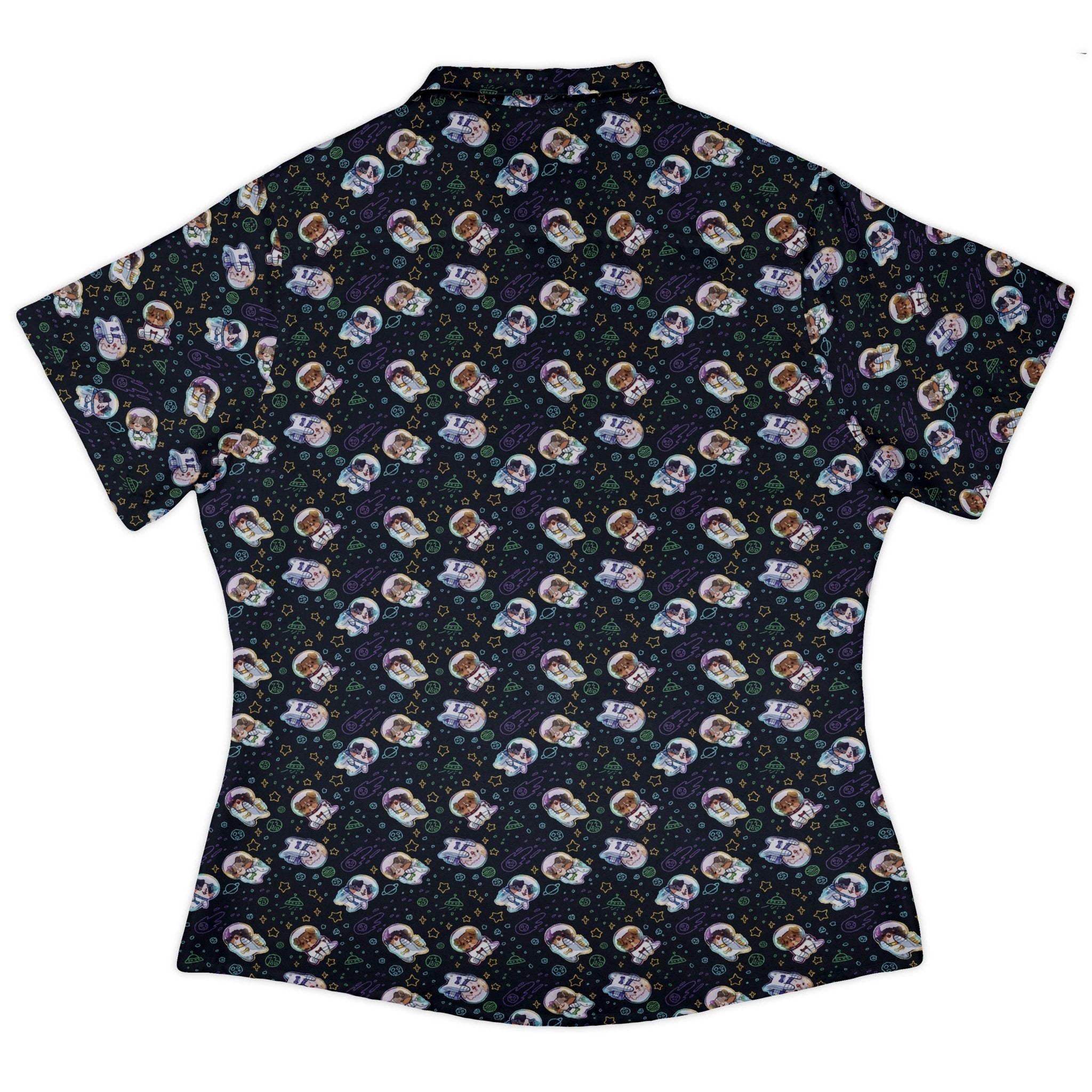Meet the Aussie-Nauts Curvy Button Up Shirt, a spacefaring statement tailored for shapely silhouettes. Designed by Ardi Tong, its astronaut-speckled print brings starry whimsy to your everyday orbit. Thoughtful shaping at the bust and waist flatters comfortably, with contoured shoulders that move with you. A curved hem shines untucked, and adjustable sleeves flex your style. Pattern-matched pocket, branded buttons, and eco-conscious inks—plus artist support—complete the look.