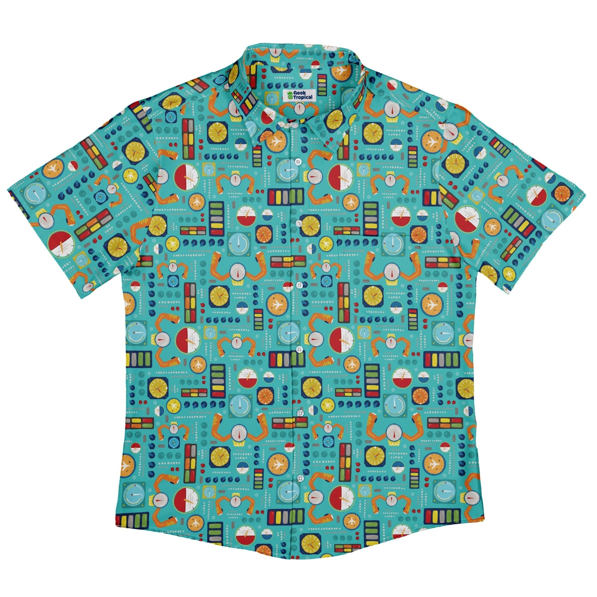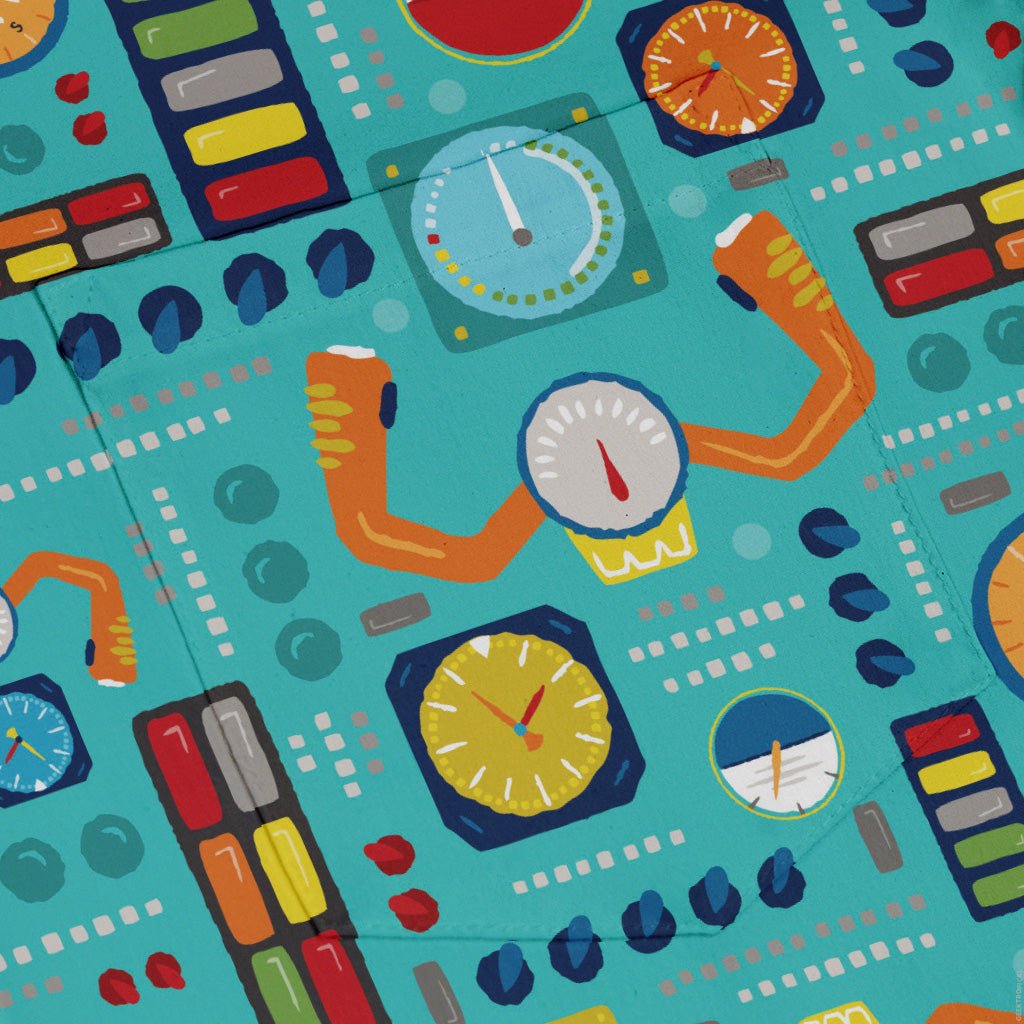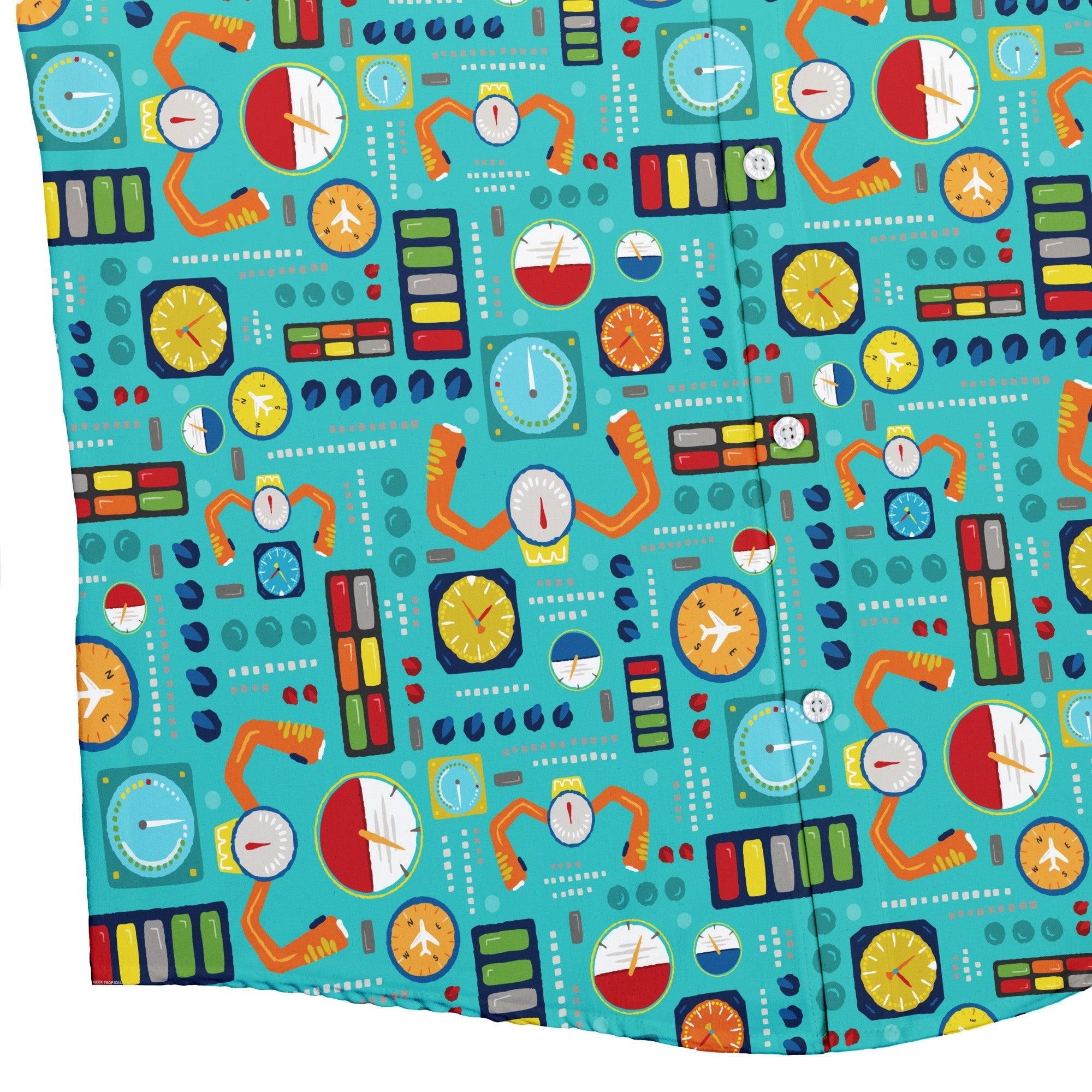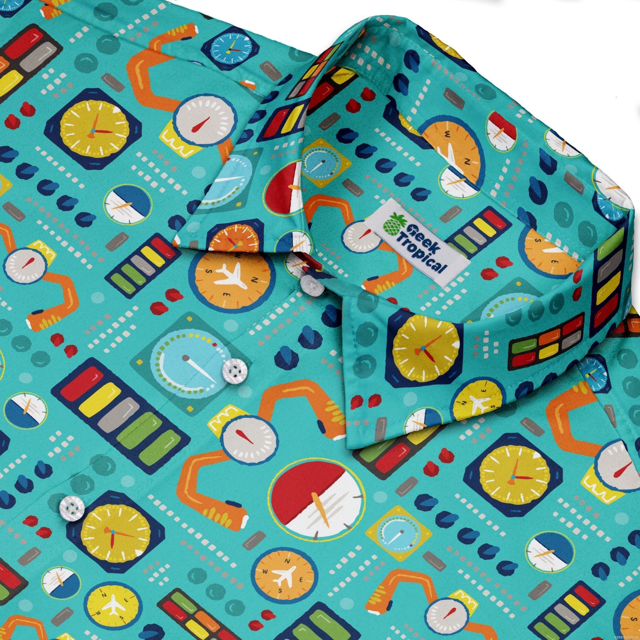 The Aviation Adventure instrument Button Up Shirt turns cockpit geekery into gallery-grade style. Across the shirt, a crisp array of aviation instruments—gauges, needles, and precise markings—creates a rhythmic, technical pattern that reads smart from any distance. Thoughtful placement keeps the artwork flowing cleanly over the placket and optional pocket. Designed by Zirkus Design, it’s a sharp, conversation-starting piece for flight nerds and design lovers alike.