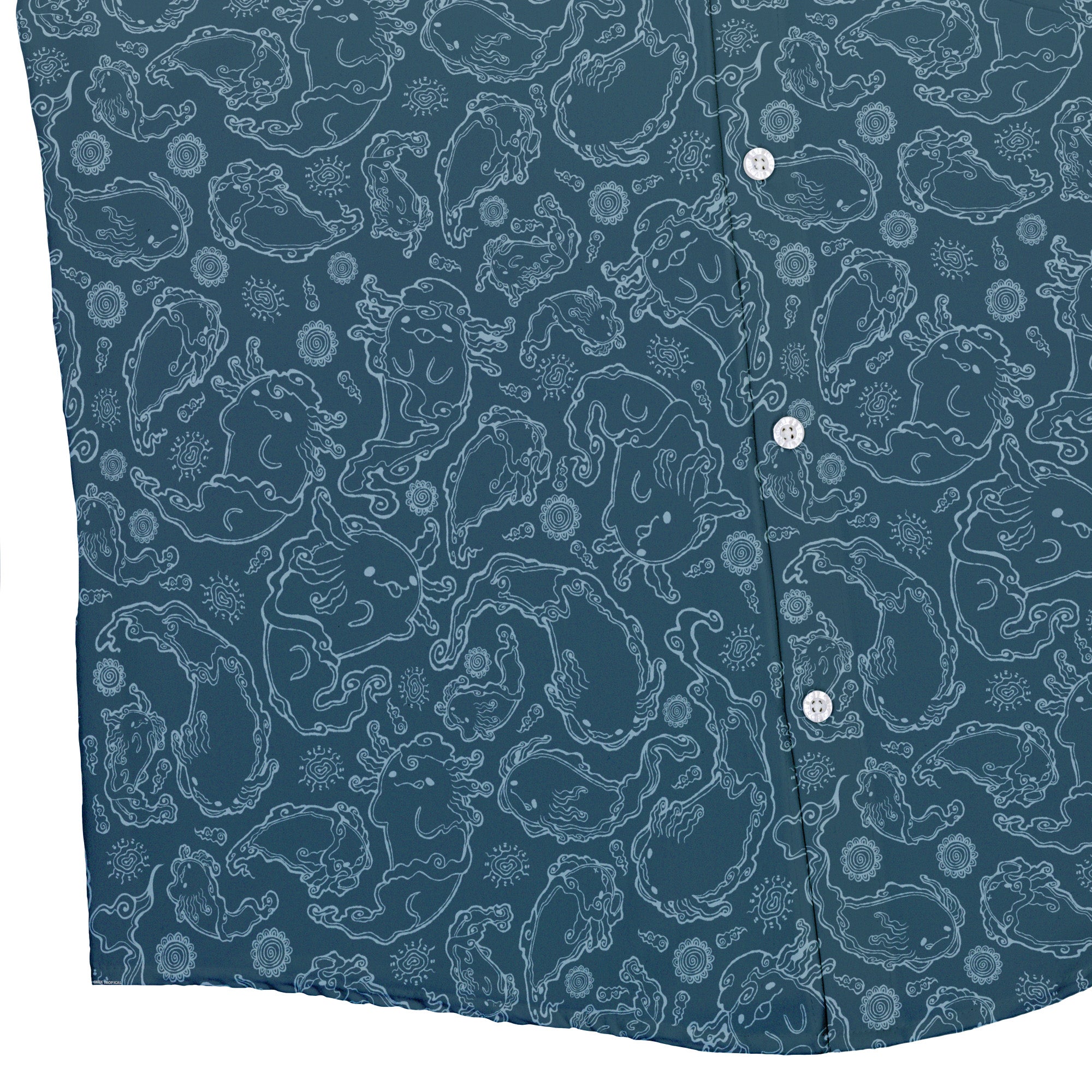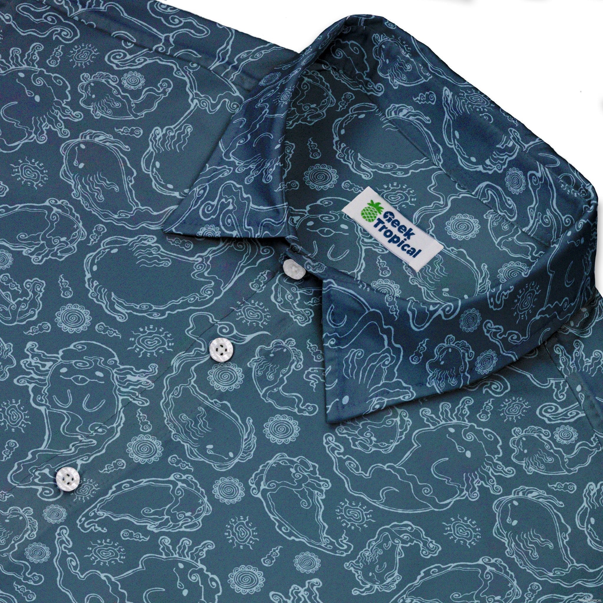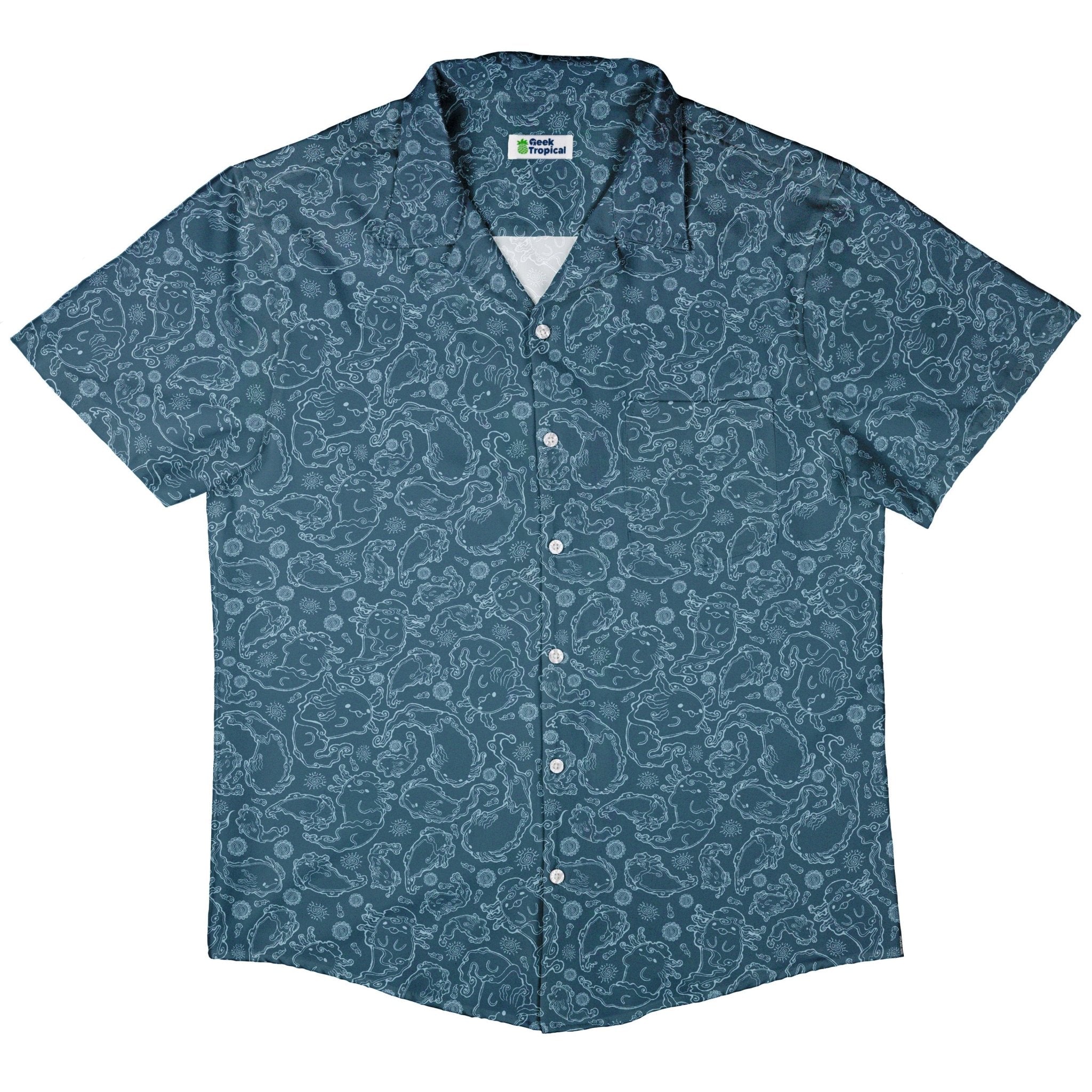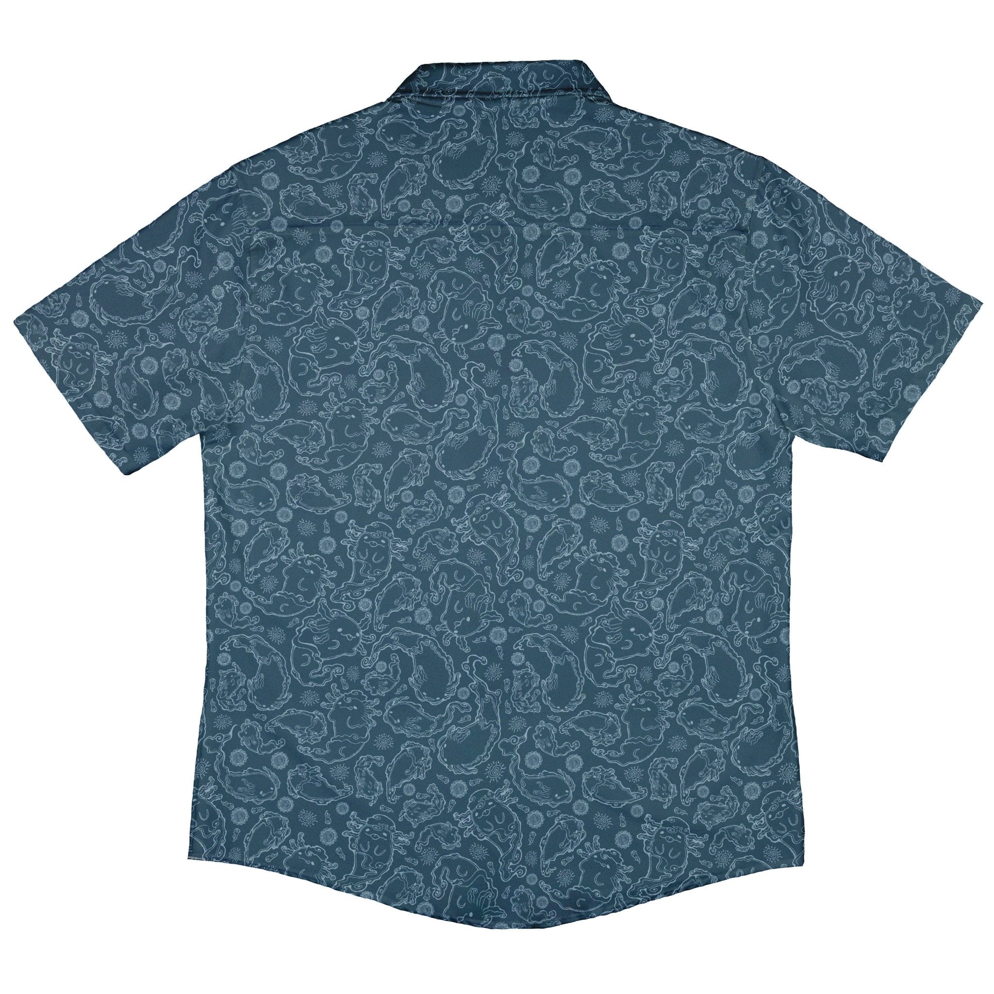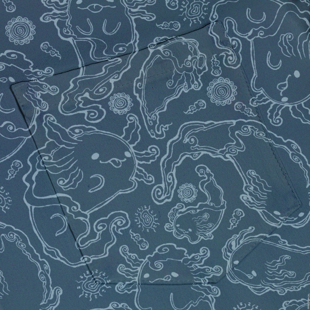 The Axolotl Airbending Salamanders Button Up Shirt breezes in with anime flair: chubby axolotls and sleek salamanders whipping up stylized wind swirls across a cool, seamless pattern. Soft curves, motion rings, and floating motes create a calm, kinetic vibe that dresses up or down. Designed by Ardi Tong, this artist-backed piece keeps you comfy, sharp, and a little bit nerdy—licensed art that helps support its creator.