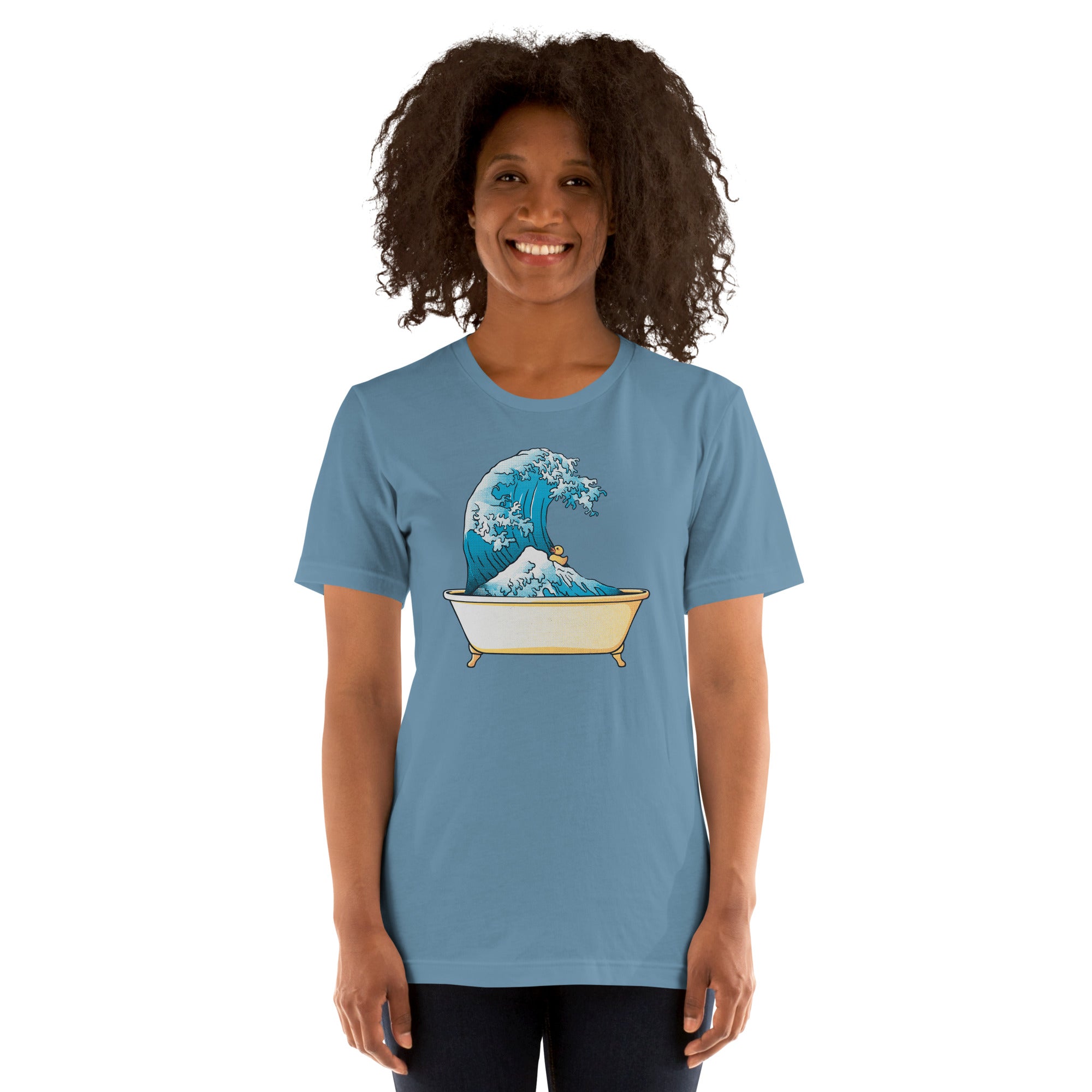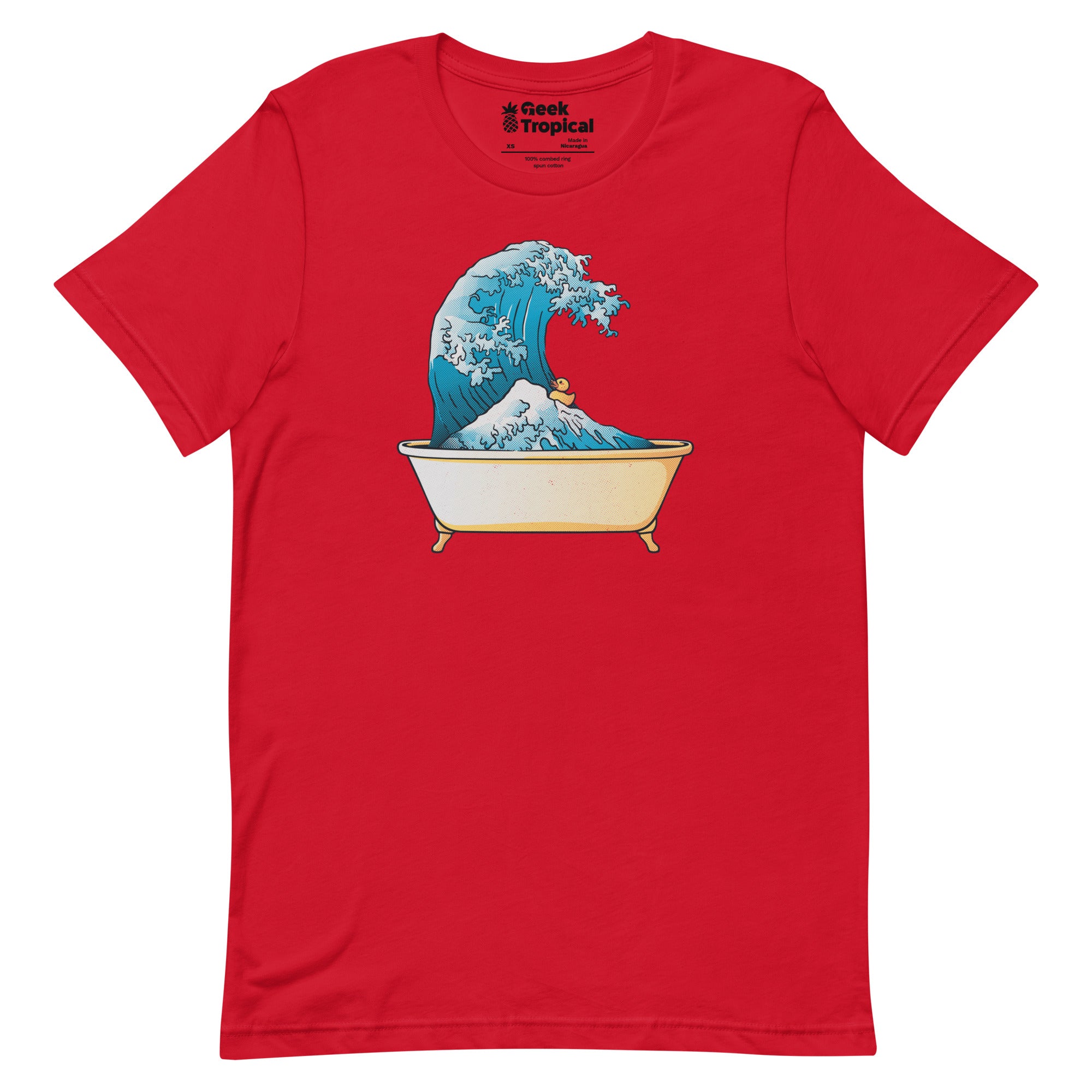 The Bathtub Kanagawa Wave T-Shirt turns bath time into epic myth: a Great Wave homage surging from a classic bathtub, foam curling in crisp, dynamic lines. Designed by Tobe Fonseca, it blends museum-level drama with playful, geeky humor. Soft, breathable, and ready for everyday wear, with a clean, durable print that holds color. Artist-backed and responsibly printed, so your drip supports the creator as much as the vibe.