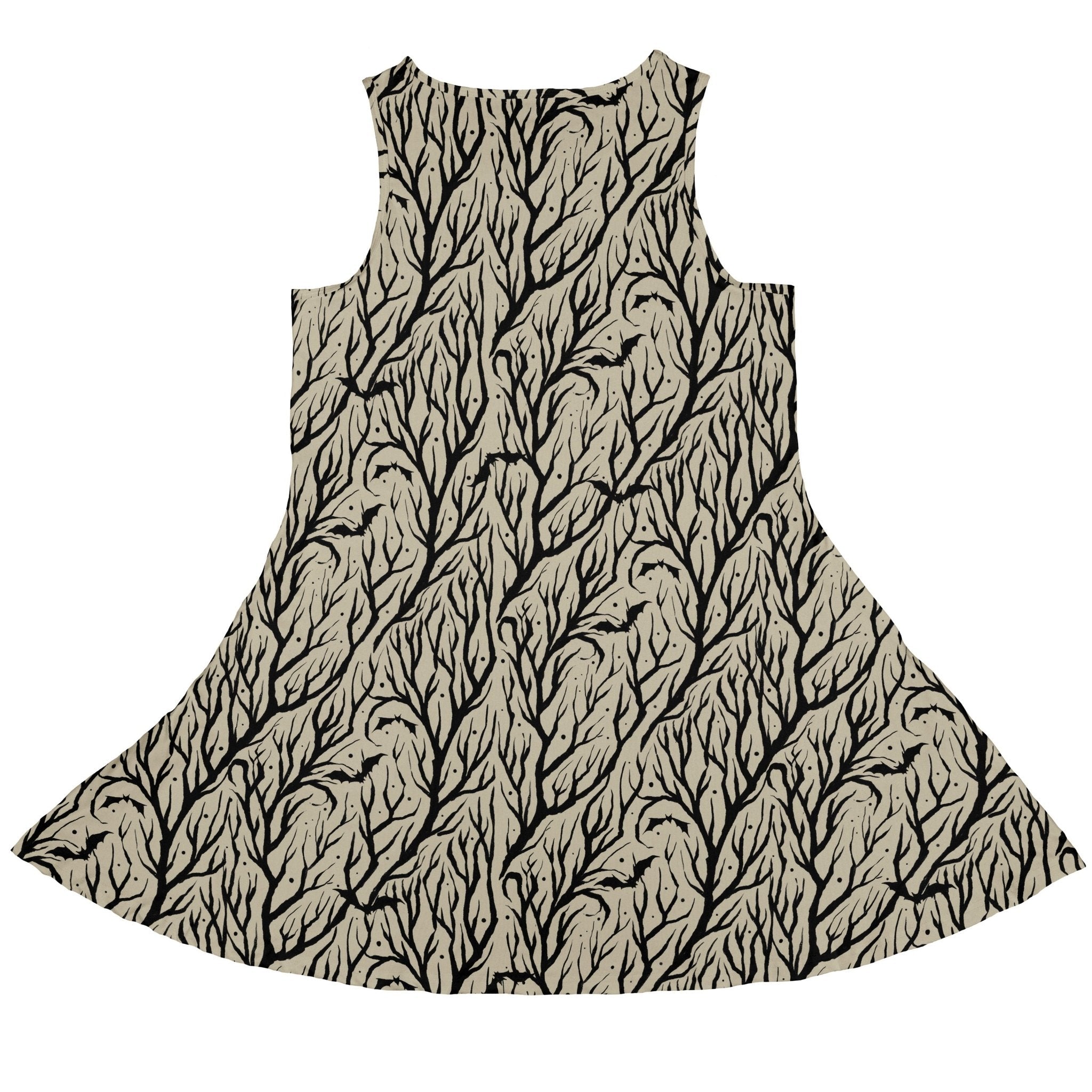 The Bats in the Vines Dress wraps you in a moody garden where winding vines weave around crisp bat silhouettes, designed by Episodic. Smooth and comfy with an opaque, confident drape, it’s built for everyday quests. Roomy side pockets carry your essentials—even a controller. Easy to style for spooky season or year‑round, it delivers casual‑meets‑polished vibes while supporting licensed artists.