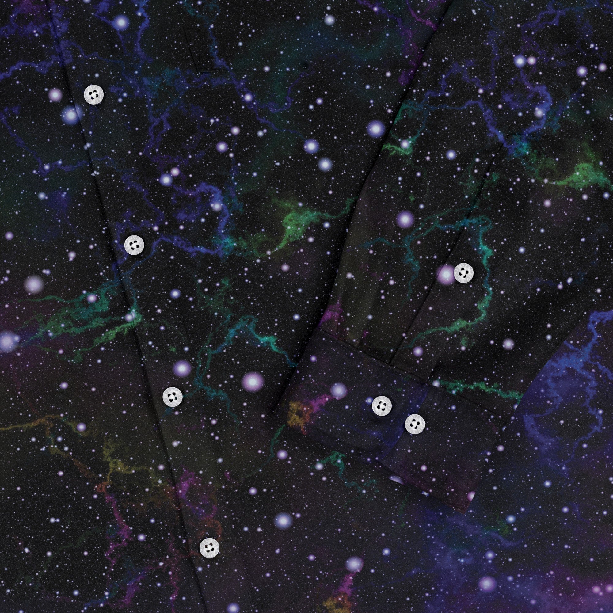Meet the Beautiful Nebula Outer Space Long Sleeve Button Up Shirt, a cosmic flex for earthbound wardrobes. Swirling nebula clouds and star-dusted depths wrap across the front in a seamless panorama, with a pattern-matched chest pocket that keeps the galaxy unbroken. The fabric is soft and breathable for all-day missions, and the silhouette lands relaxed but sharp. Finished with signature buttons and printed using eco-conscious inks to support the artists fueling your favorite universe.