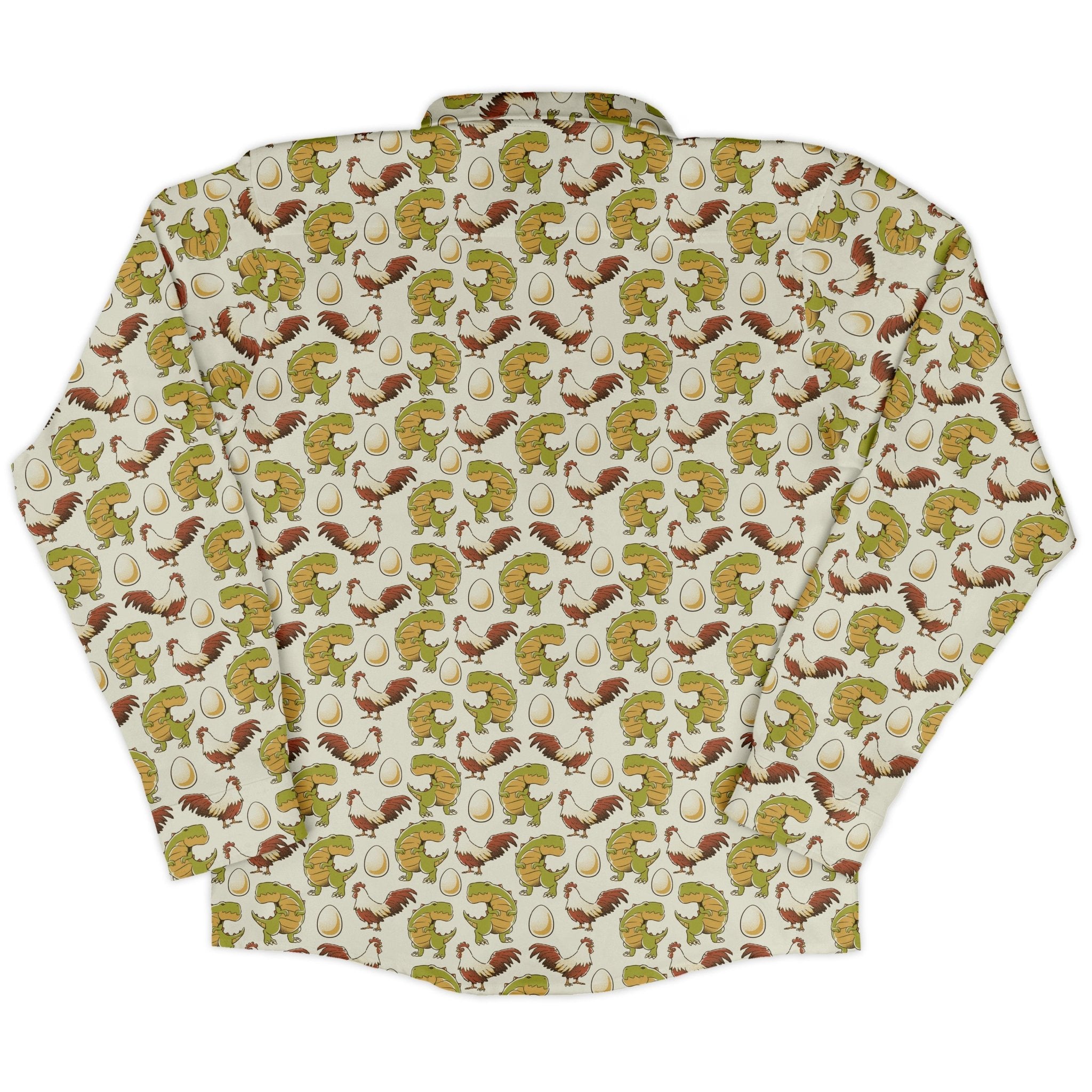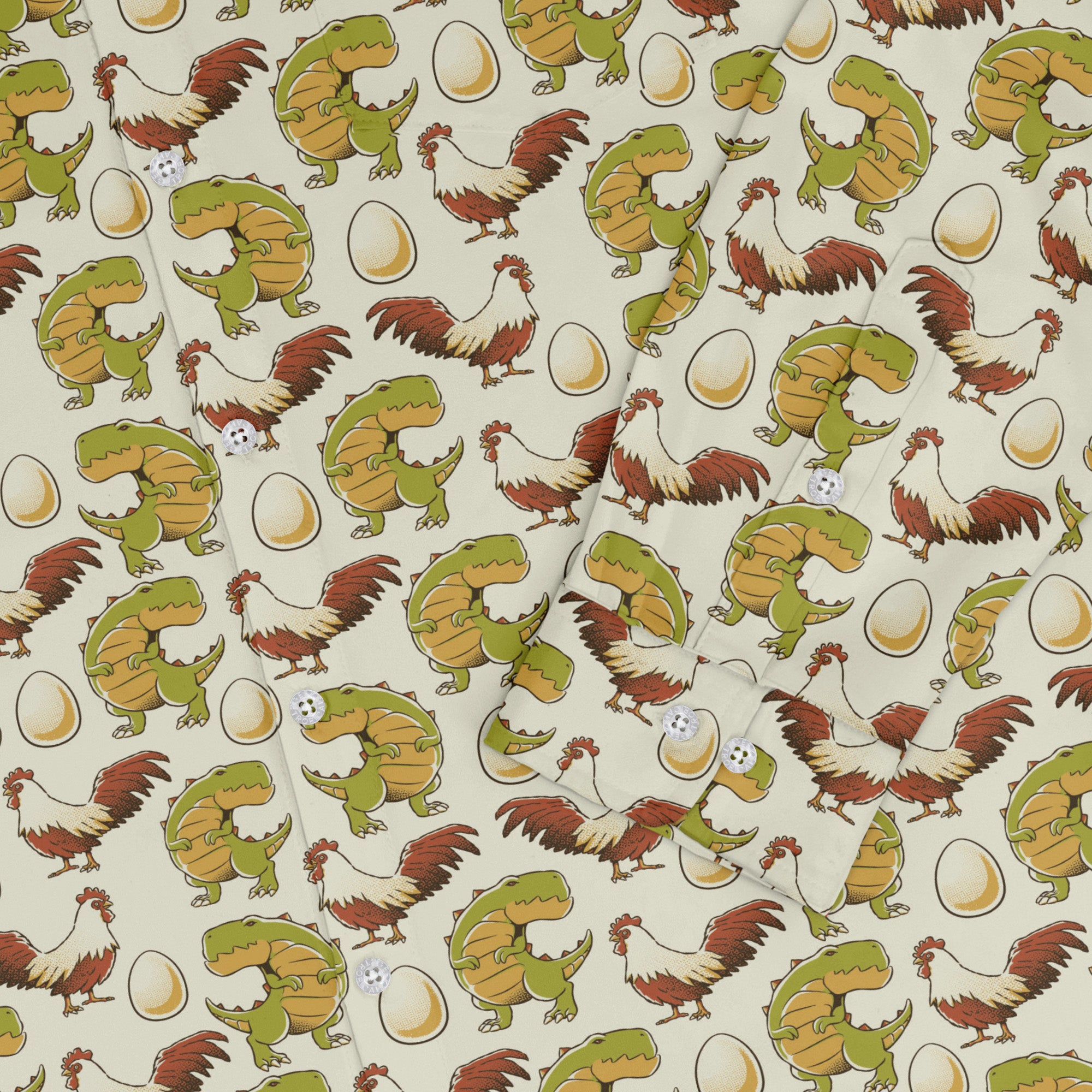 The Before the Chicken Long Sleeve Button Up Shirt packs clever arcade energy into a clean, allover repeat that nods to the age-old egg-or-chicken debate. Retro game sprites march in tidy rows for a look that reads smart up close and geek-chic from afar. Soft, breathable, and printed with eco-conscious inks, it’s built for all-day play. Unisex styling and artist-backed design make it an easy win from office quests to weekend high scores.