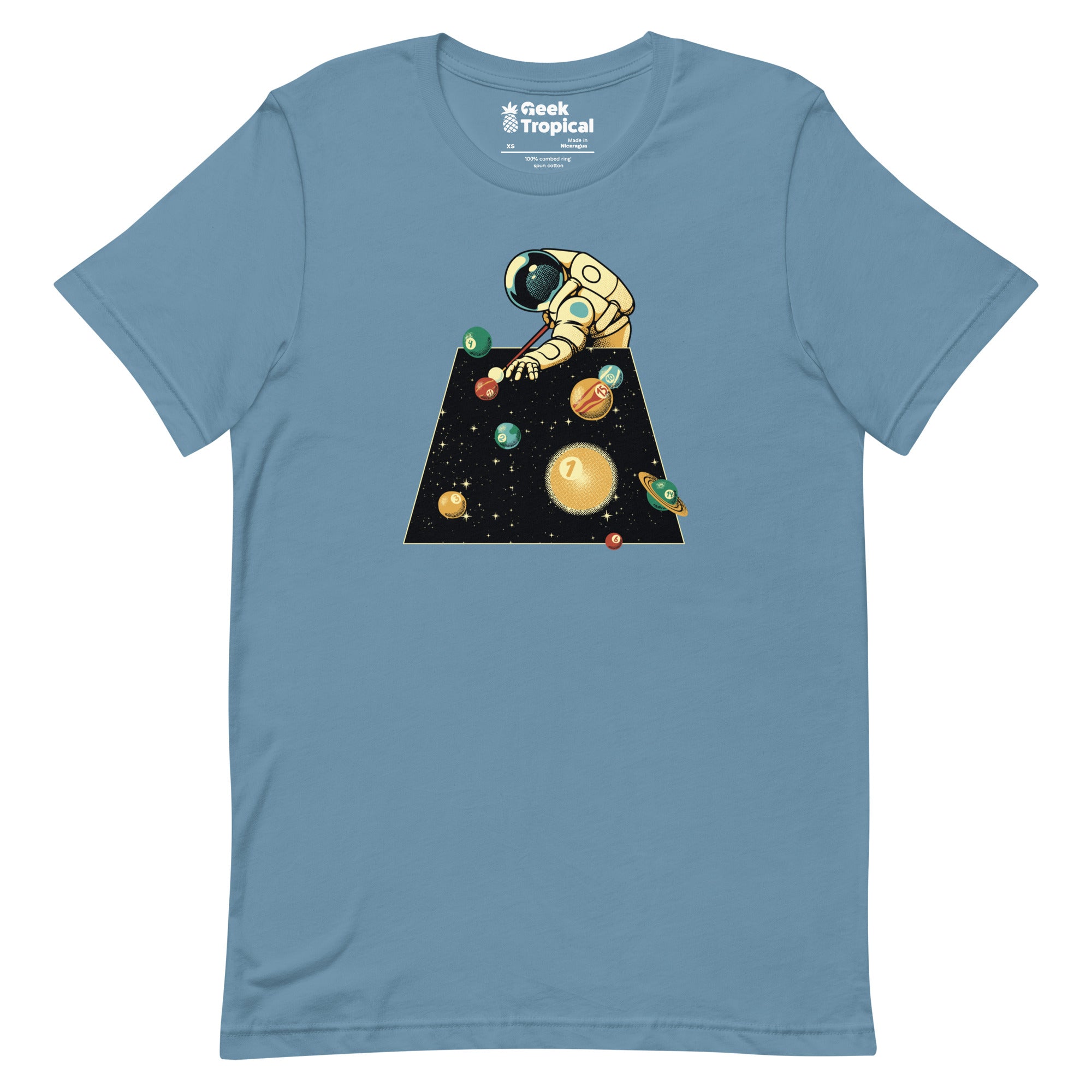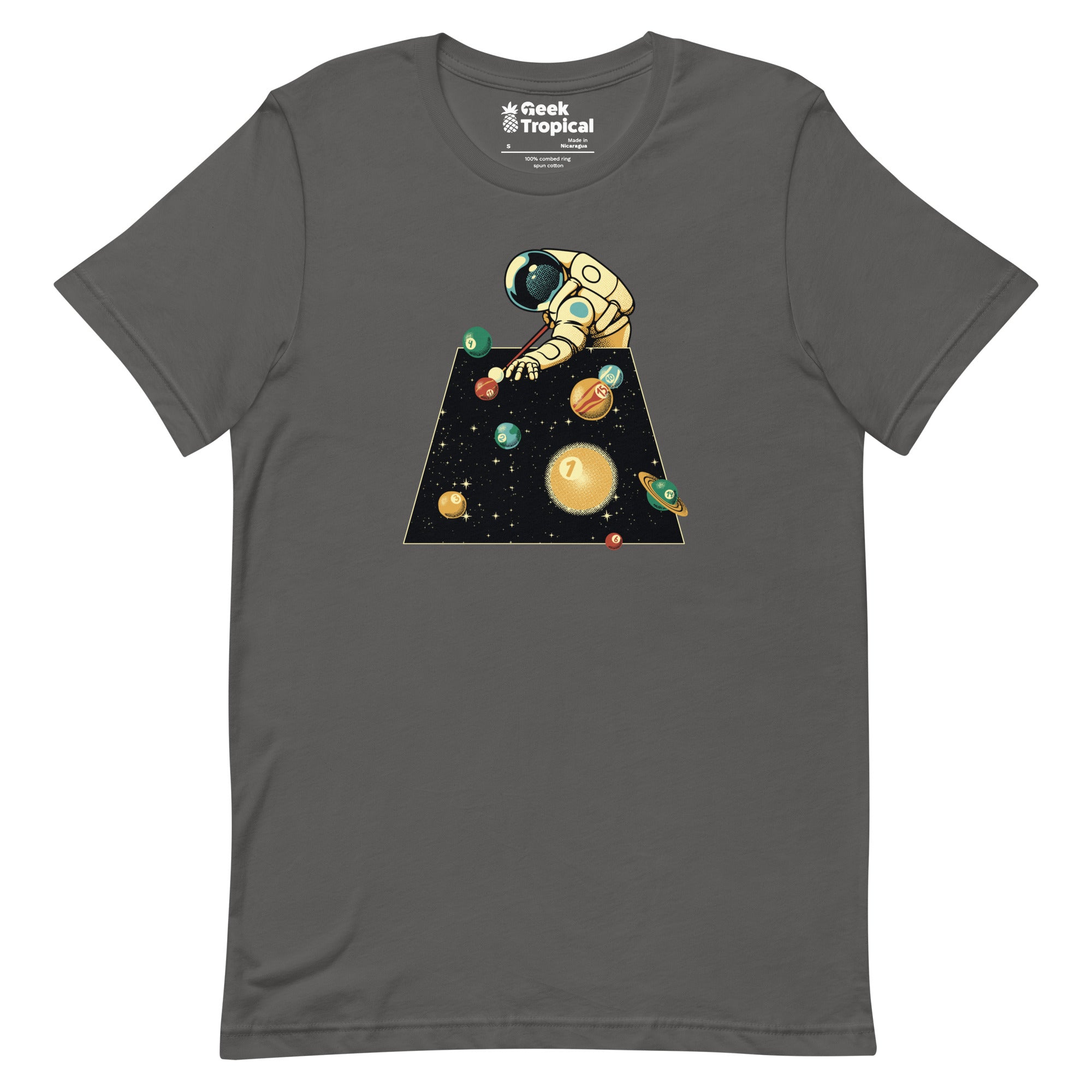 Billiard Ball Solar System T-Shirt splices cosmic curiosity with game-room wit. Designed by Tobe Fonseca, the artwork turns the planets into glossy billiard spheres arranged in a compact mini-solar system over a subtle starfield—a smart nod to physics, angles, and play. Nerdy, art-backed, and ready for everyday orbit, it’s a soft, easy wear with crisp, lasting color for science fans and pool strategists alike.
