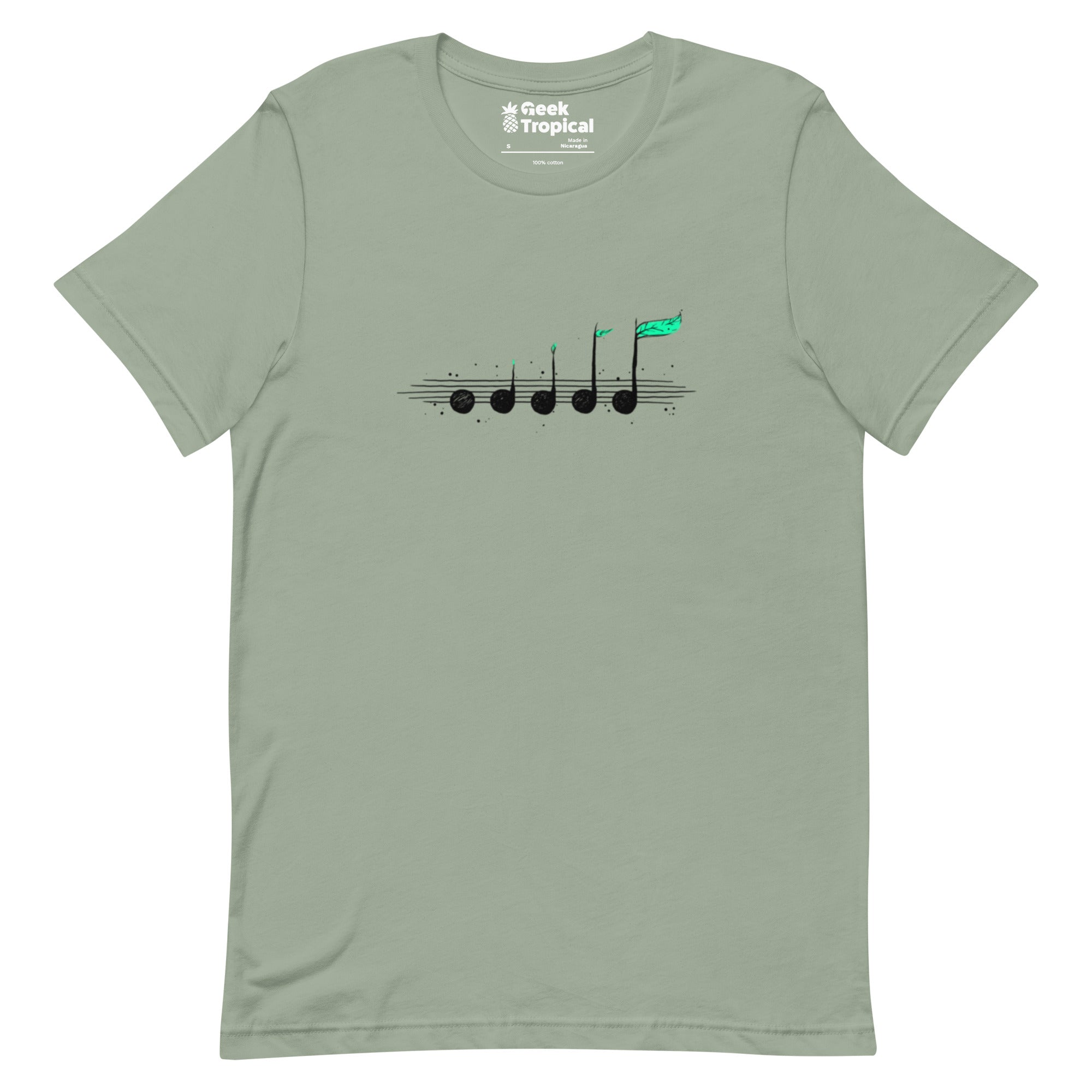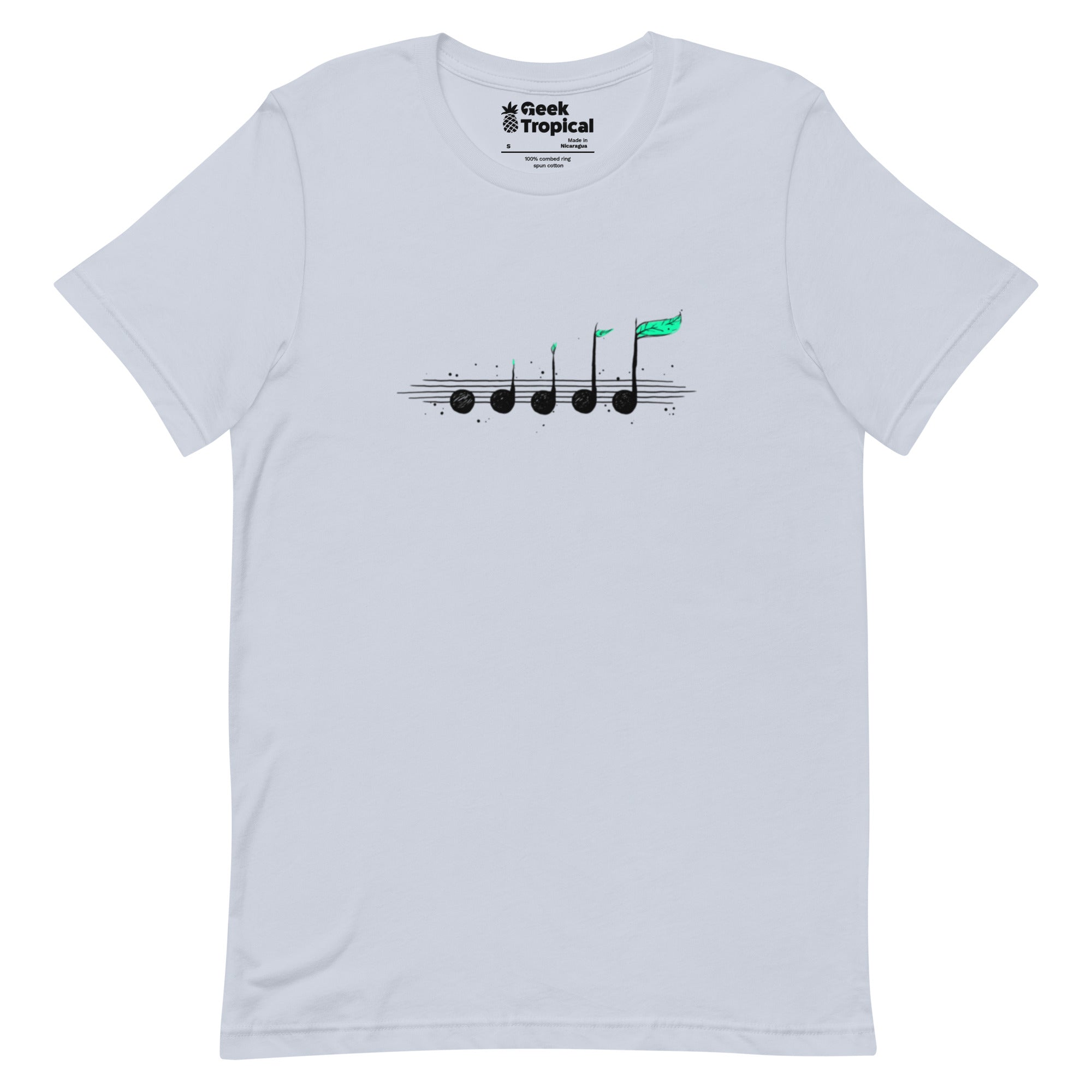 The Biosphere Music Notes T-Shirt turns your love of sound into a tiny world. Designed by Tobe Fonseca, a dense constellation of music notes gathers into a globe-like biosphere, swirling in organic currents that feel alive and rhythmic. Perfect for concerts, studios, and late-night listens. Artist-backed and printed with planet-friendly inks for color that stays sharp, season after season.
