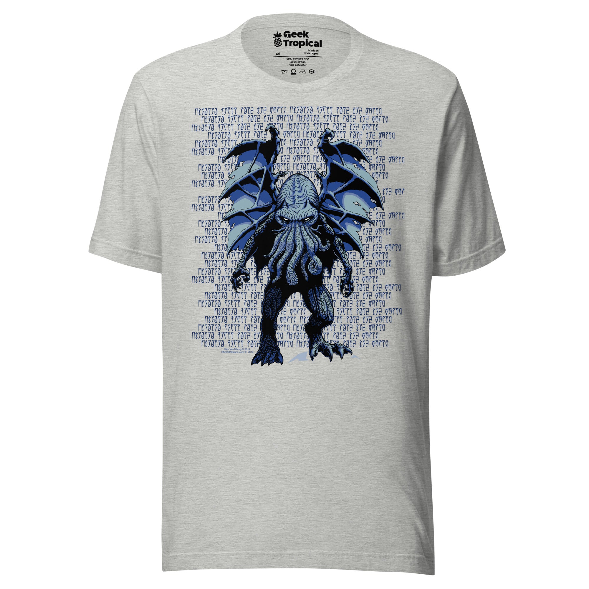 The Blue Cthulhu T-Shirt channels deep-sea myth with a bold, central illustration of the Great Old One—curling tentacles, a brooding gaze, and layered blue highlights that punch through with rich contrast. Clean linework and tonal shading add depth worthy of a cult classic. Designed by Off World Designs and proudly artist-backed at Geek Tropical, it delivers crisp, lasting color with an easy, everyday feel for quests, cons, or coffee.
