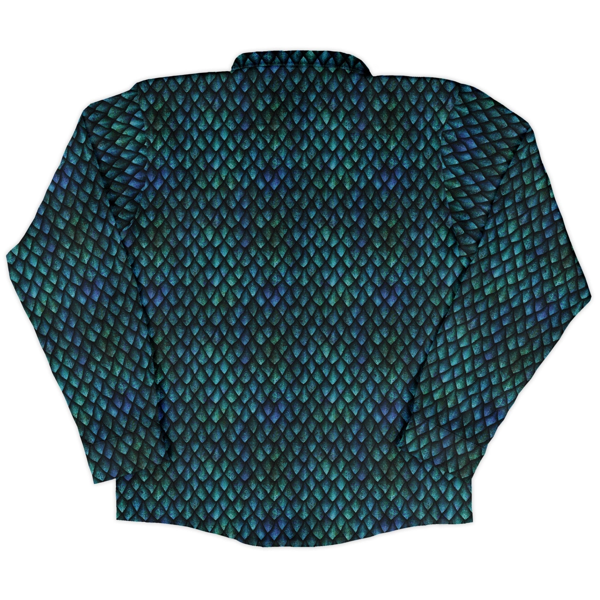 Blue Purple Dragon Scales Long Sleeve Button Up Shirt