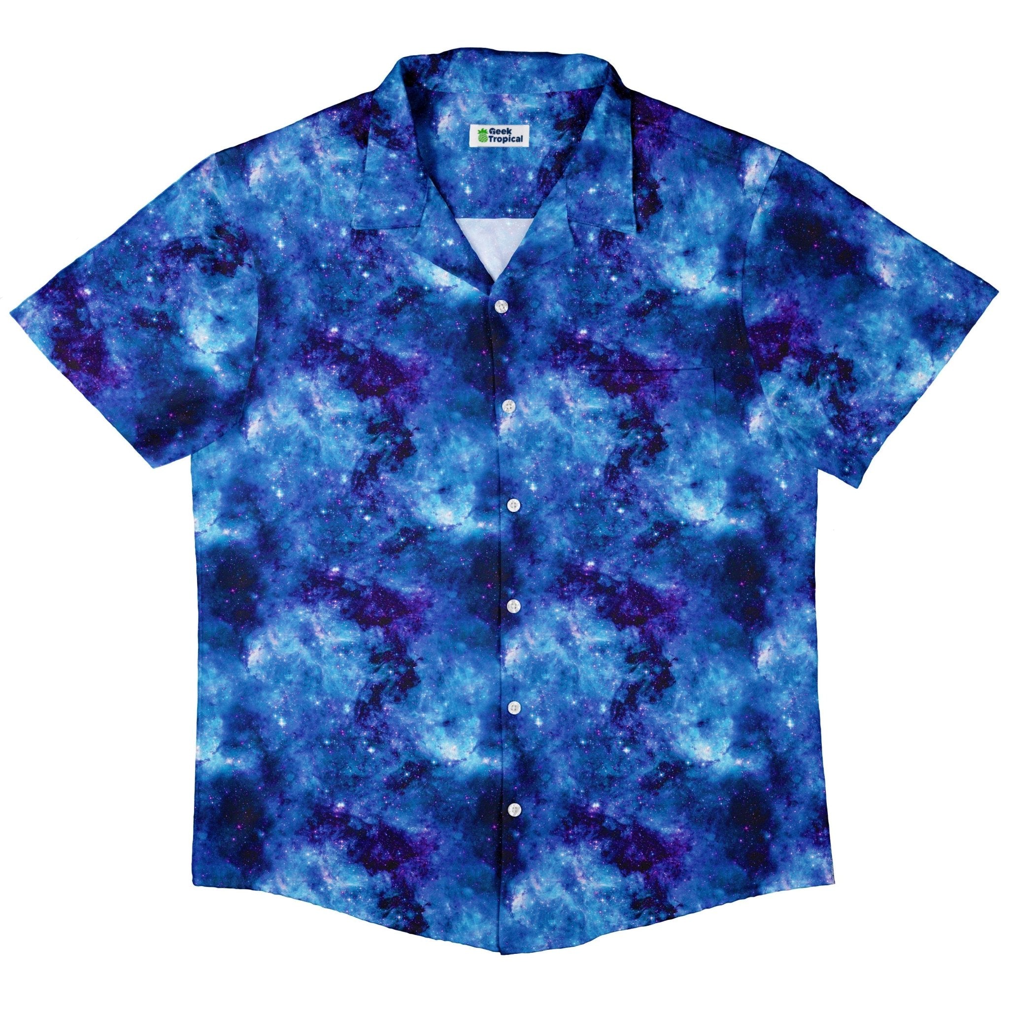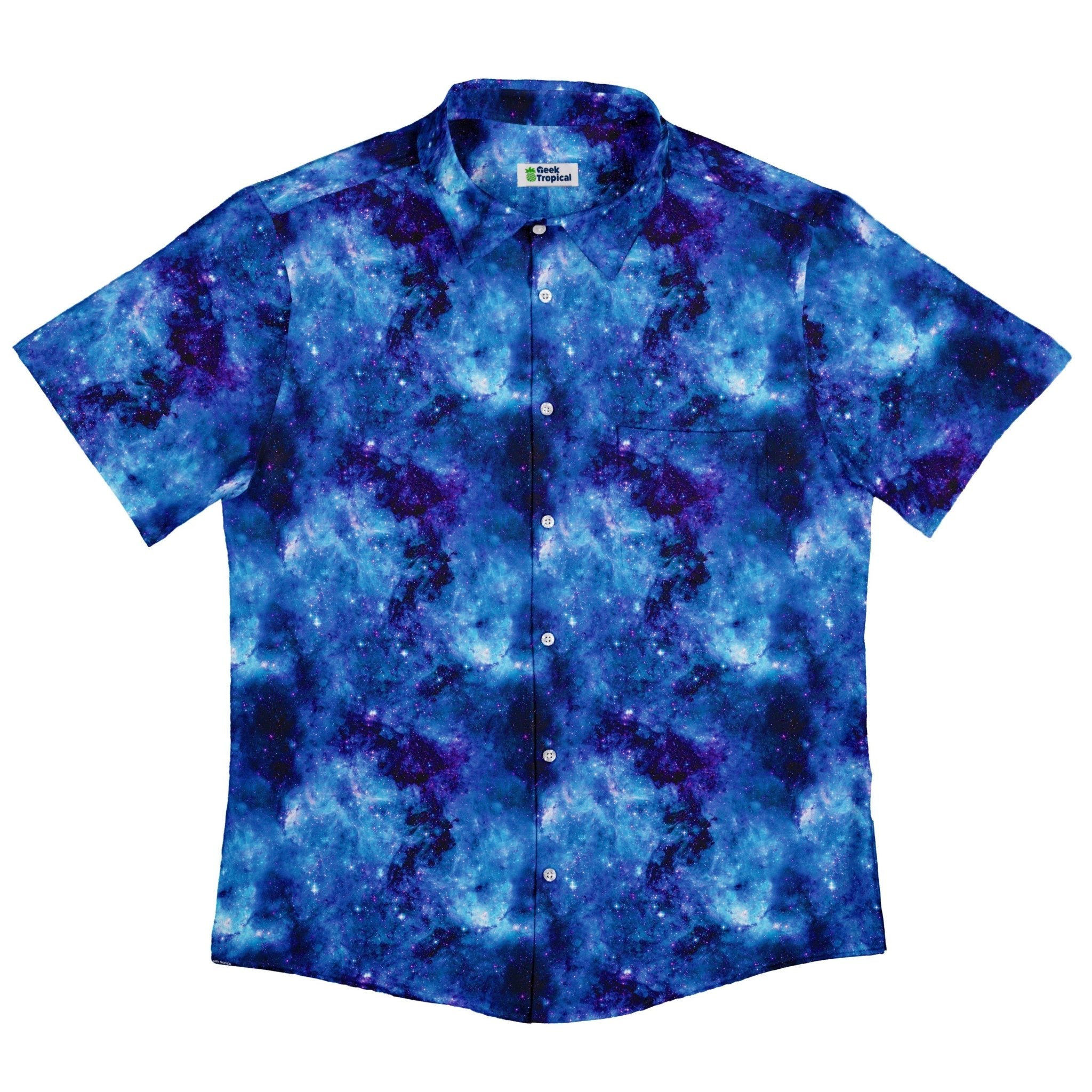 Meet the Blue Purple Nebula Space Button Up Shirt, a cosmic flex for your daily orbit. Swirls of cobalt and violet clouds drift through a starry void, with the print flowing cleanly across the front for an uninterrupted galaxy vibe. Soft on the skin and easy to wear, this artist-backed piece is printed with eco-conscious inks—ideal for stargazers, con-goers, and anyone who likes their style set to warp speed.