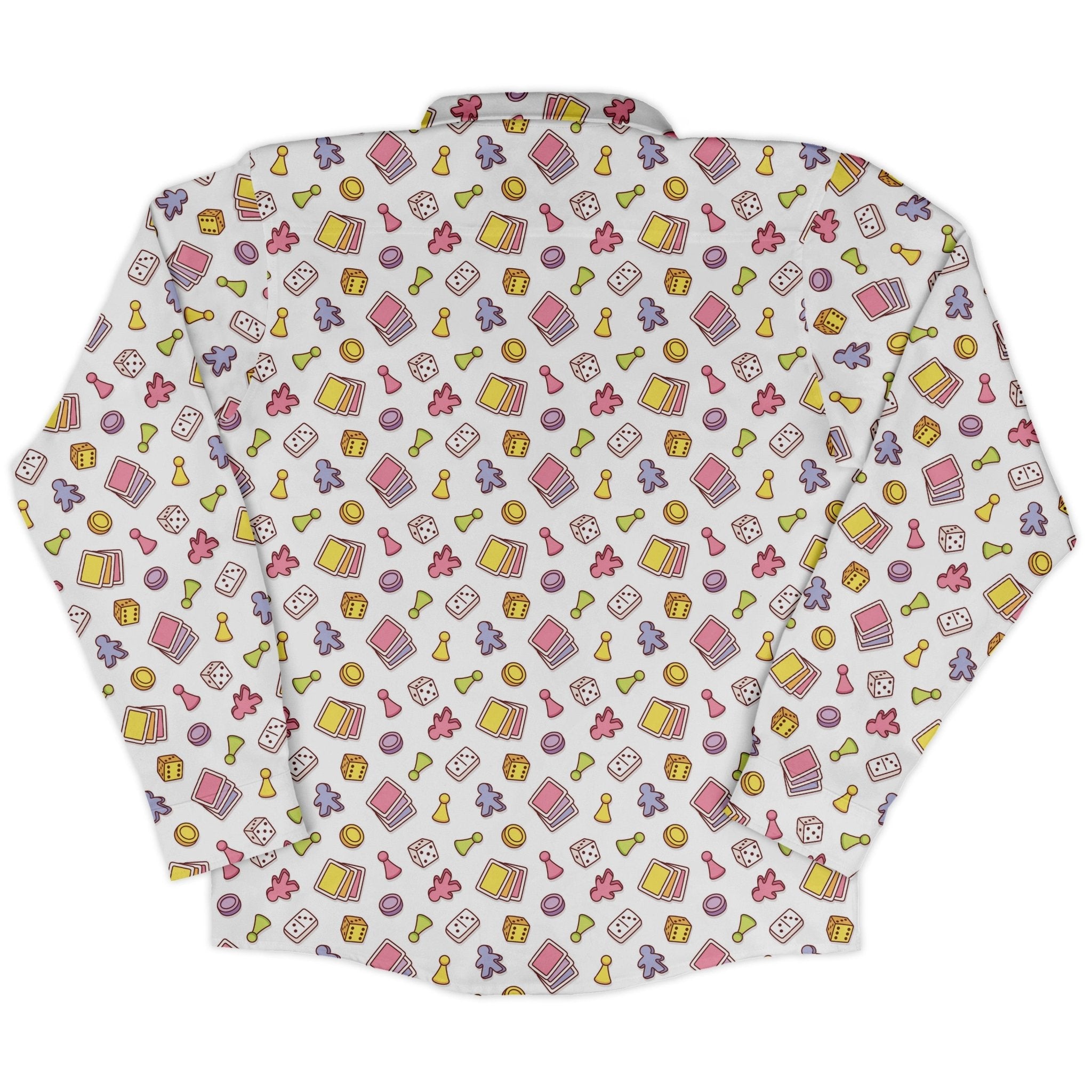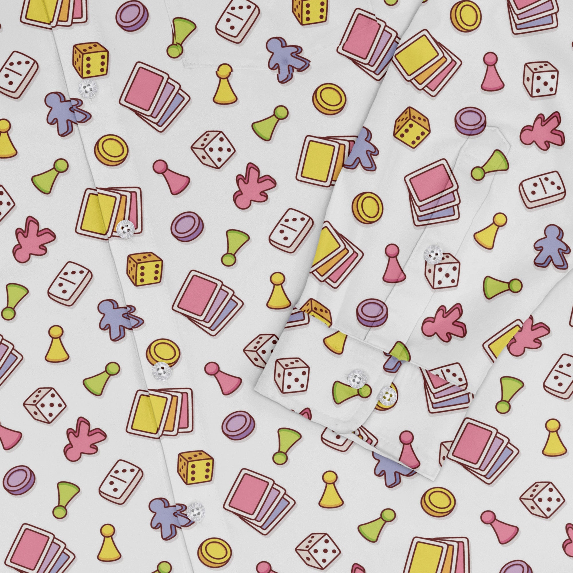 Board Game Objects Meeples White Long Sleeve Button Up Shirt