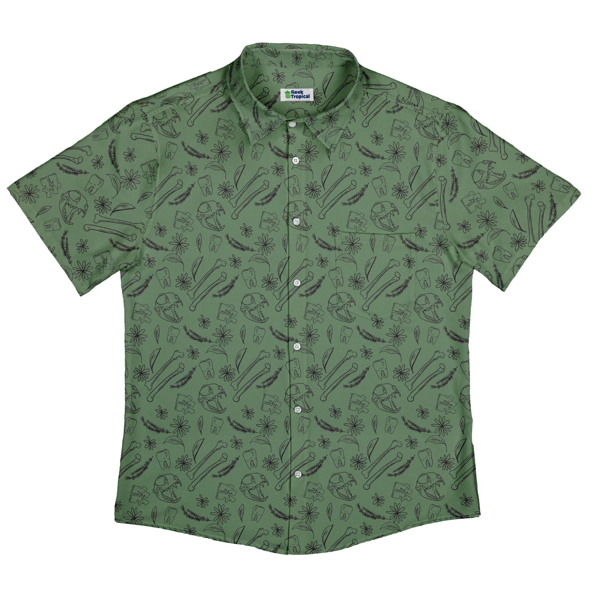 Bones and Flowers Green Button Up Shirt