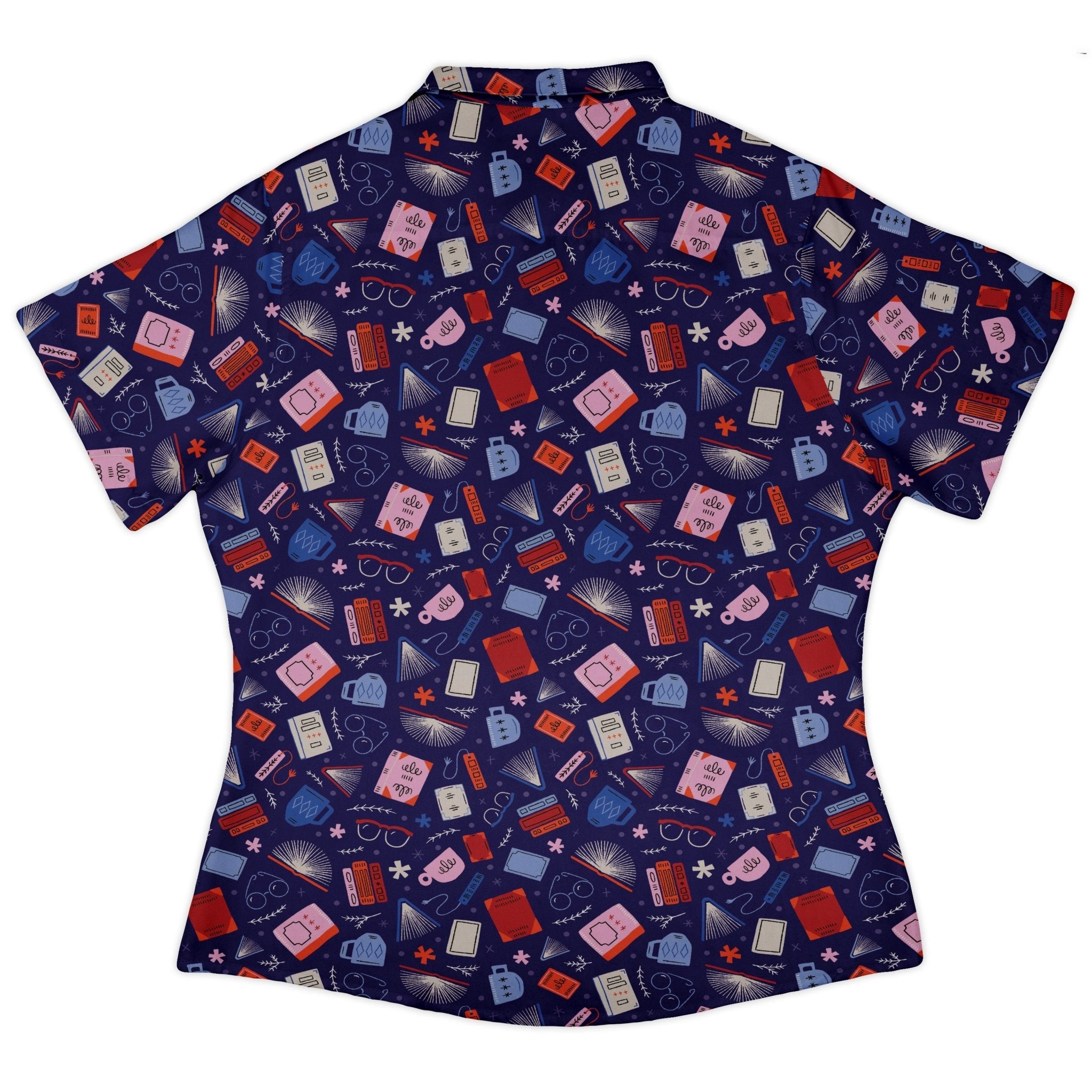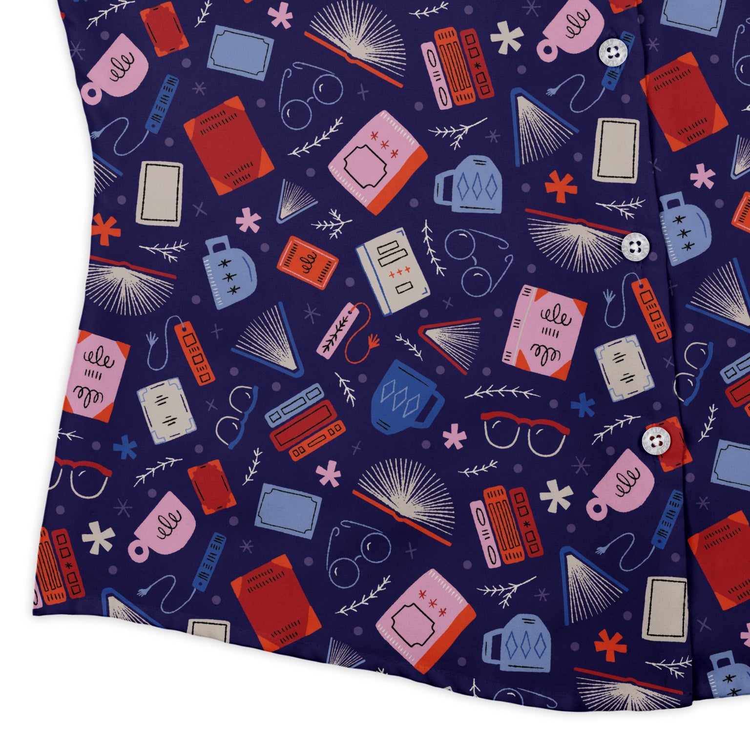 Meet the Book Nerd Curvy Button Up Shirt—your wearable ode to dog‑eared pages and plot twists. The all-over library motif showcases artful book illustrations, designed by Zirkus Design. A curve-loving silhouette keeps things polished yet easy, with silky-soft comfort you can live in. Smart for the office, playful for bookstore crawls, and proudly artist-backed with responsibly printed artwork.
