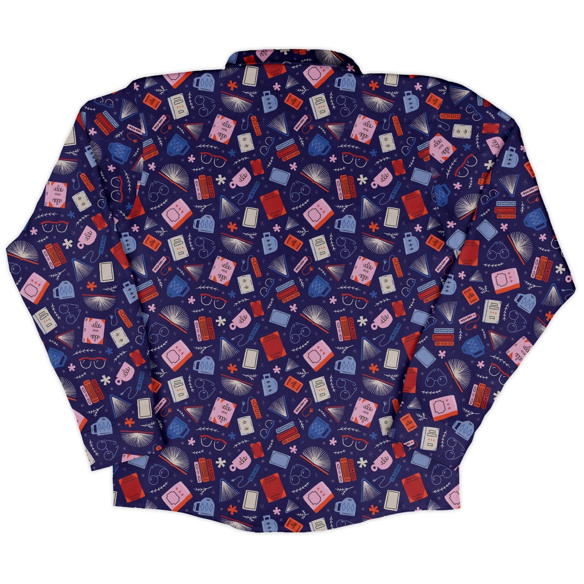 Book Nerd Long Sleeve Button Up Shirt delivers unapologetic bibliophile energy in a crisp, all-over print of illustrated books that flows cleanly across the placket and pocket. Designed by Zirkus Design, it pairs a just-right, easy fit with soft, breathable performance for desk-to-downtown days. Printed with eco-conscious inks to support both stories and the artists who tell them.