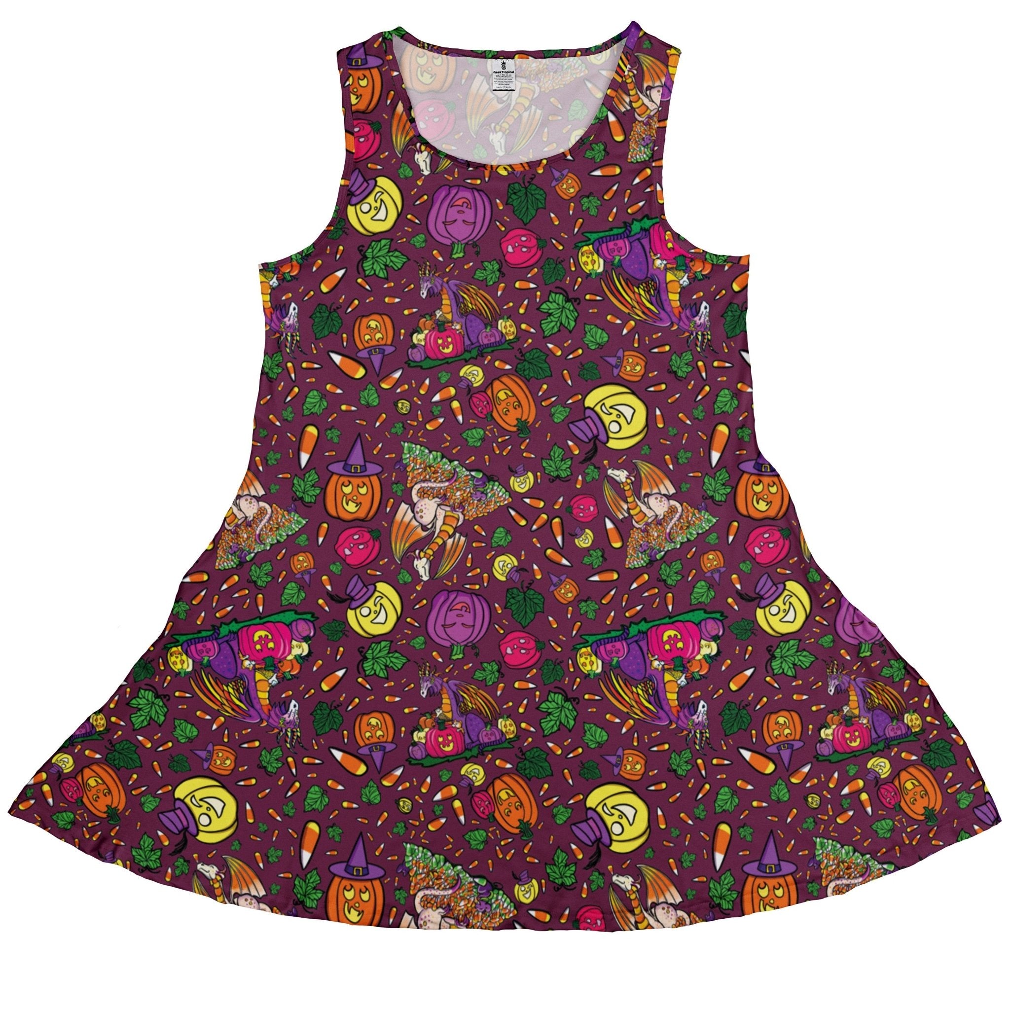 Meet the Candy Corn Dragon Dress, designed by Rose Khan for geeks who haunt arcades and pumpkin patches alike. A bold dragon in candy‑corn gradients—white, honey, and pumpkin—glows against a deep, dark backdrop, delivering spooky-season flair without going full costume. Soft with a confident drape and real pockets for your loot, it nails a laid‑back, polished vibe while backing the artist behind the magic.