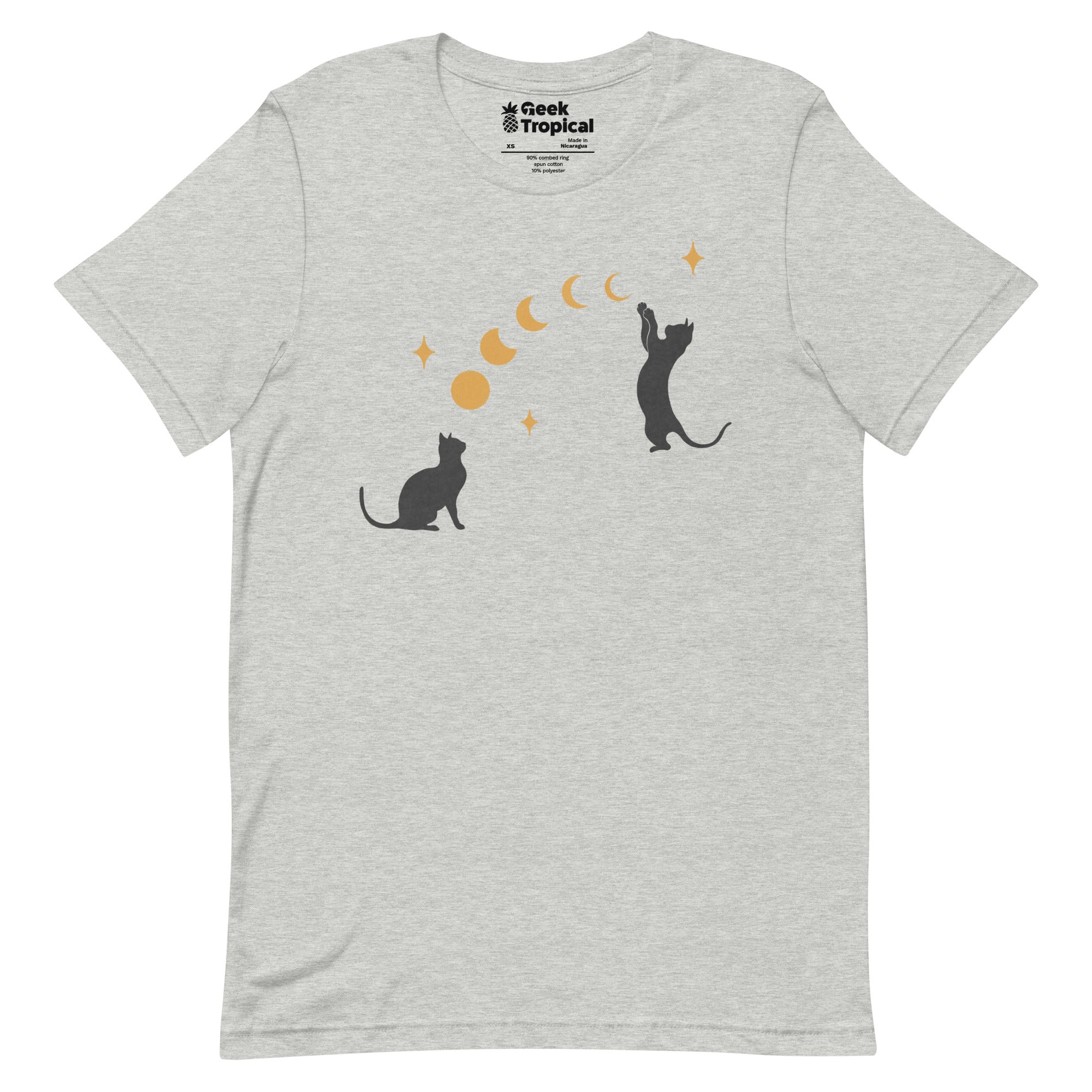 Diagonal Cat and Moon T-Shirt brings cosmic calm with a dash of whiskered attitude. A sleek cat cuts across on a diagonal toward a luminous moon, rendered in clean, minimalist lines for a striking, simple graphic. Designed by Episodic Drawing, this artist-backed piece pops with long-lasting, eco-aware color. Easy to wear, easy to love—perfect for space dreamers and cat people alike.