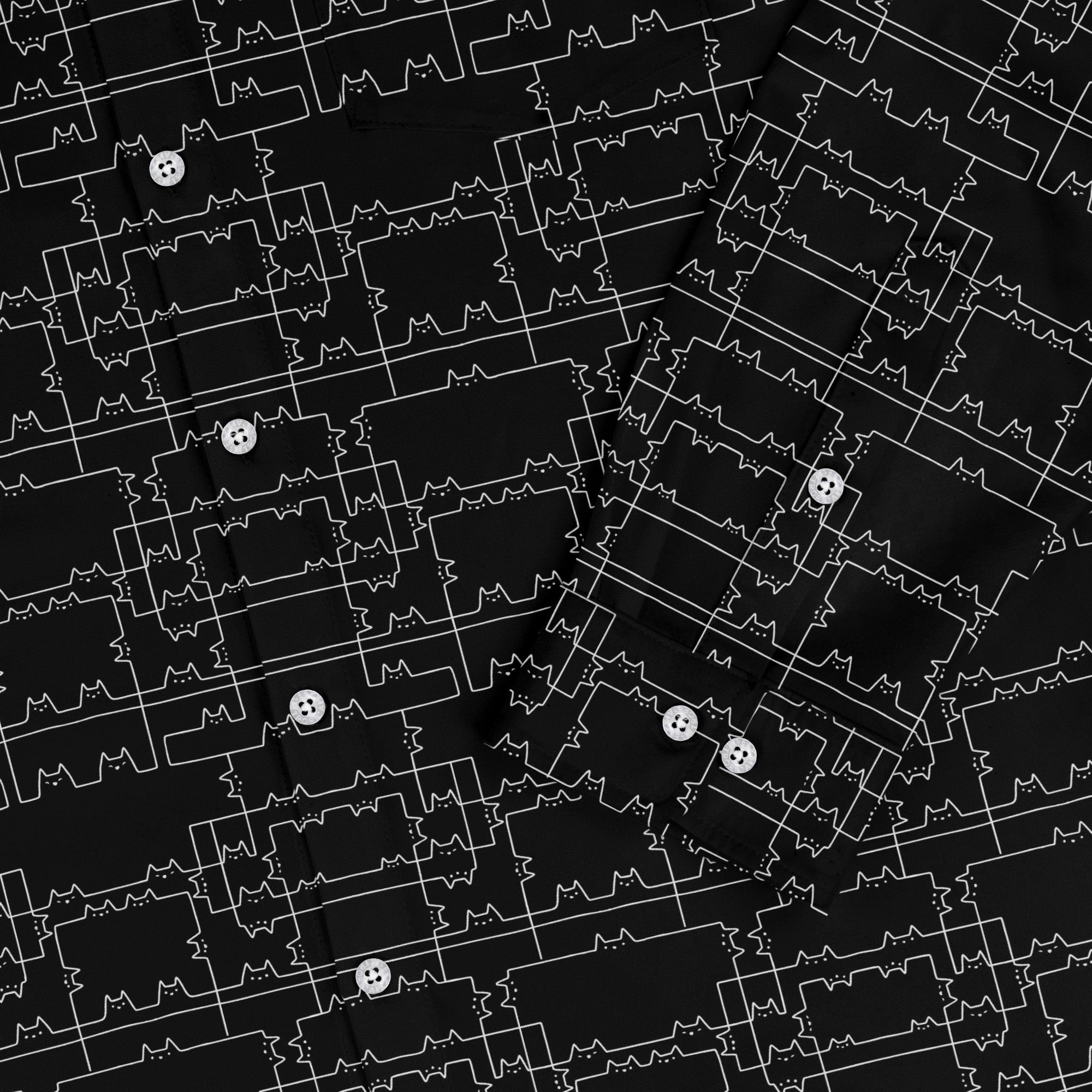 Cat Geometric Cubism Long Sleeve Button Up Shirt