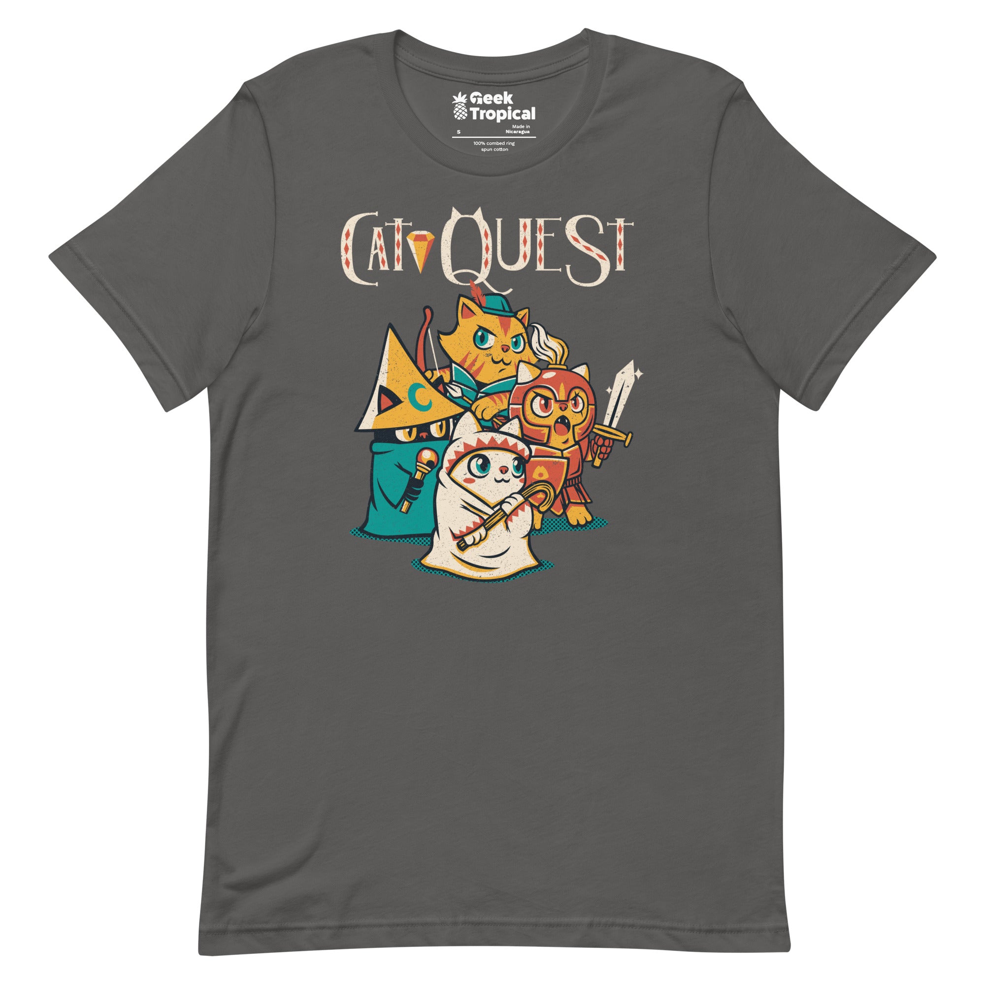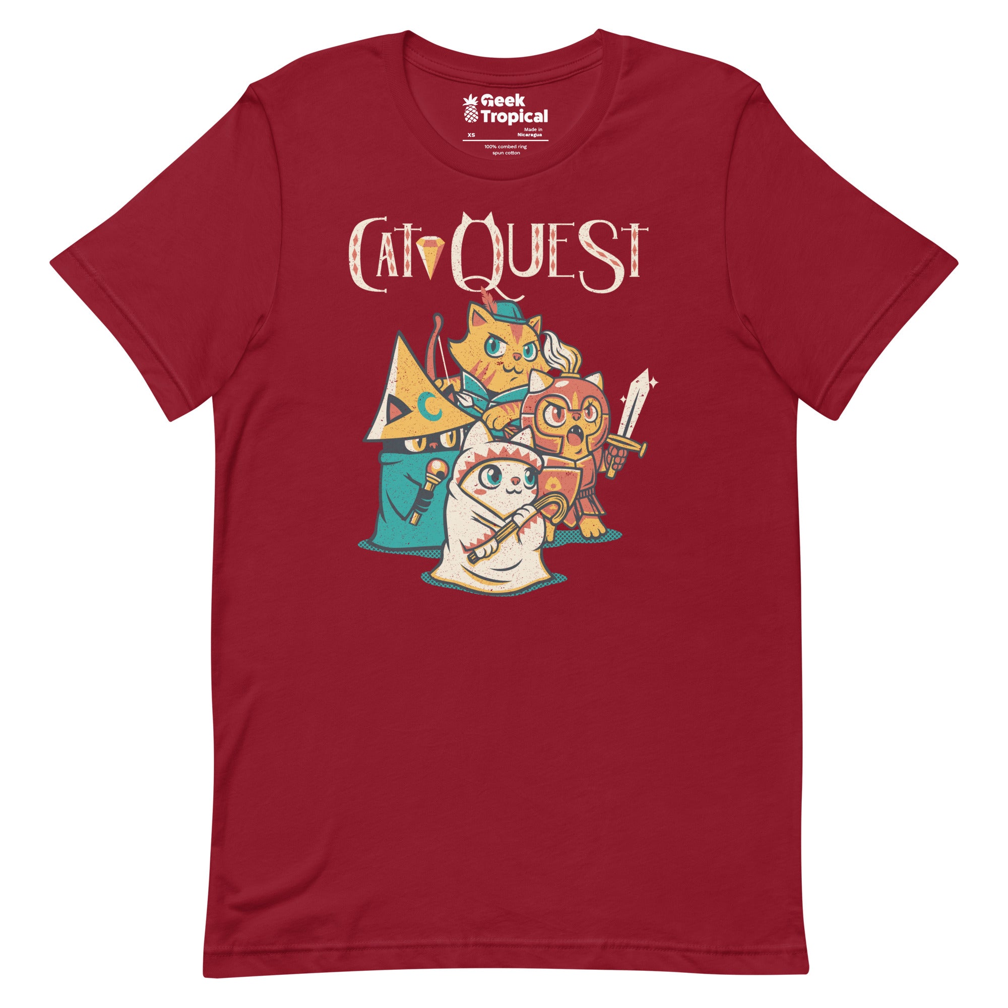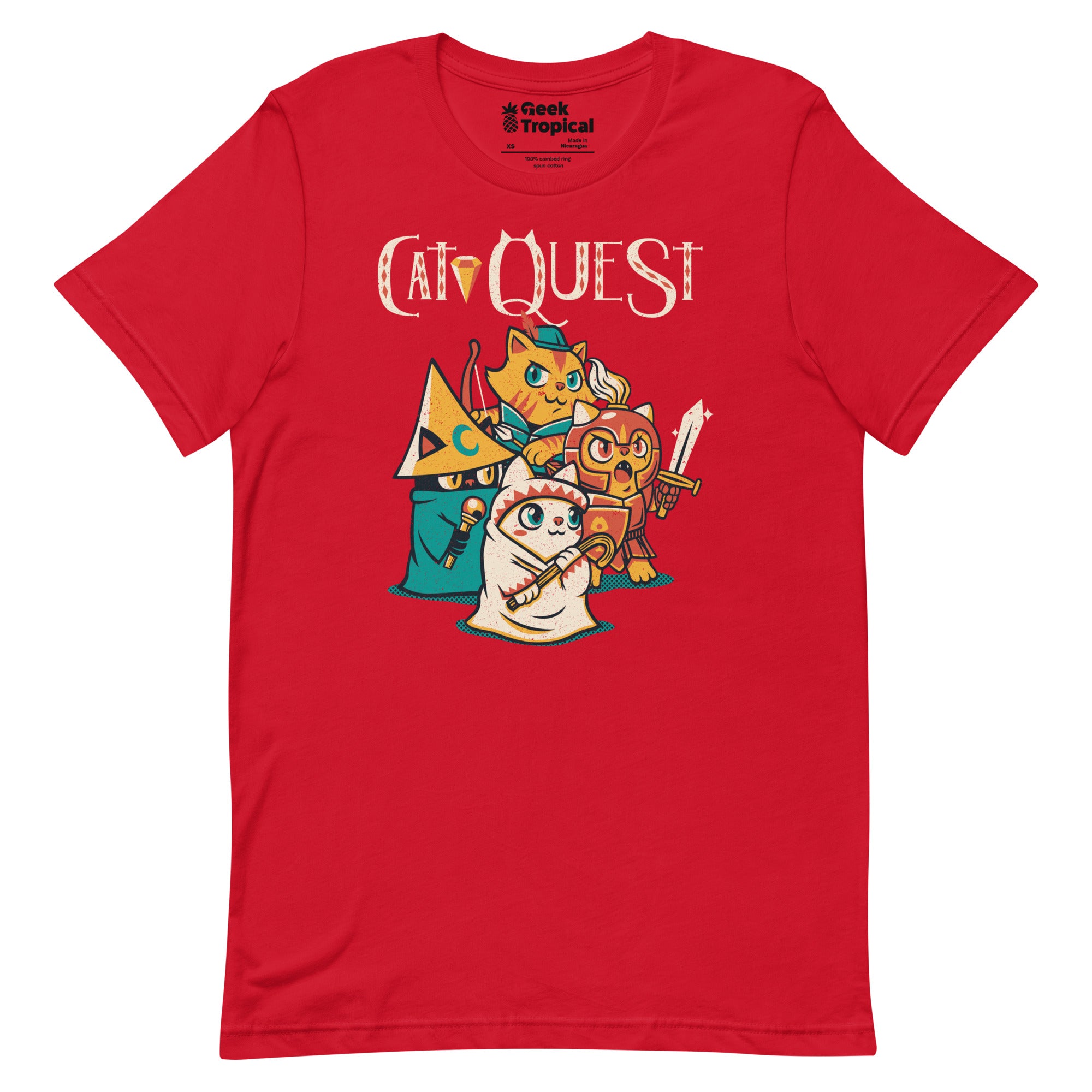 RPG Cat Quest T-Shirt sends a feline adventurer on an epic journey, designed by Tobe Fonseca with playful fantasy energy and crisp, high-contrast art. The cat takes center stage, surrounded by quest-ready vibes that nod to tabletop nights and classic arcade adventures. Vivid, eco-inked print stays sharp through countless campaigns. Licensed artwork supports the creator—ideal for Dnd sessions, LAN hangs, and cozy cat naps.