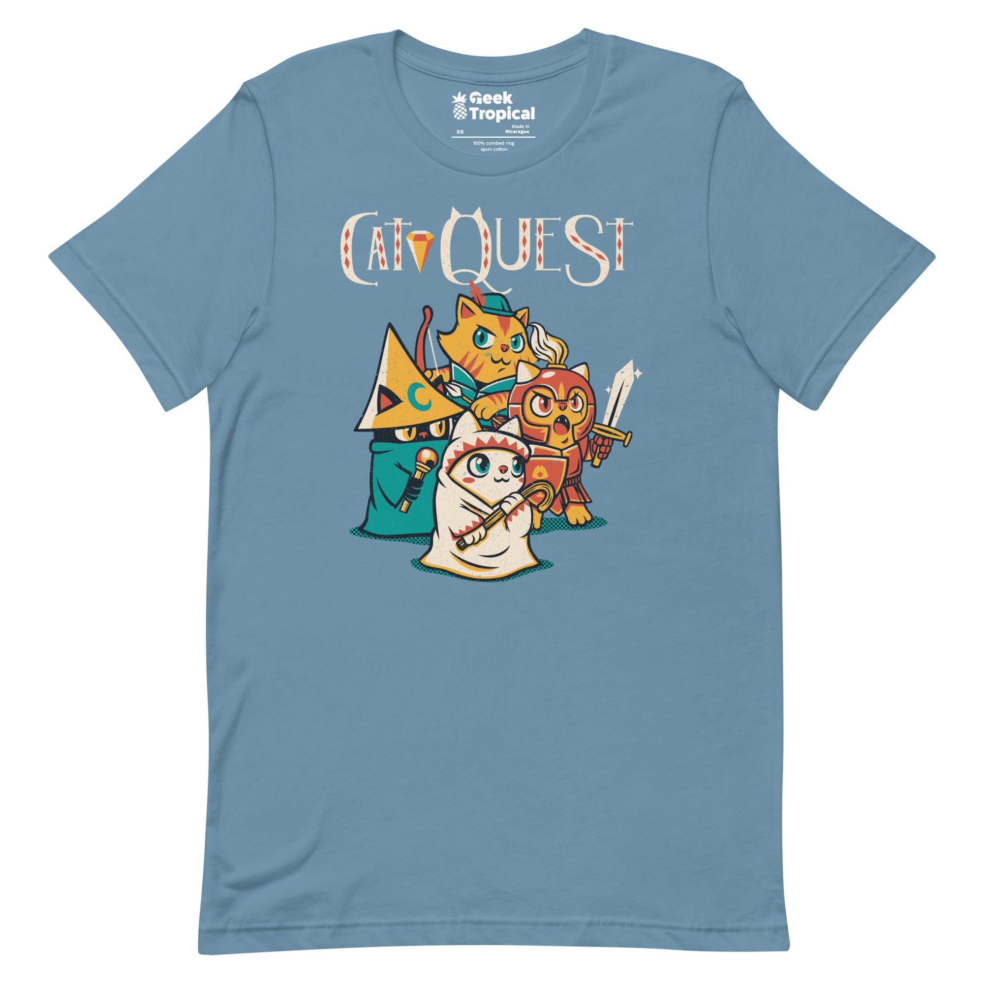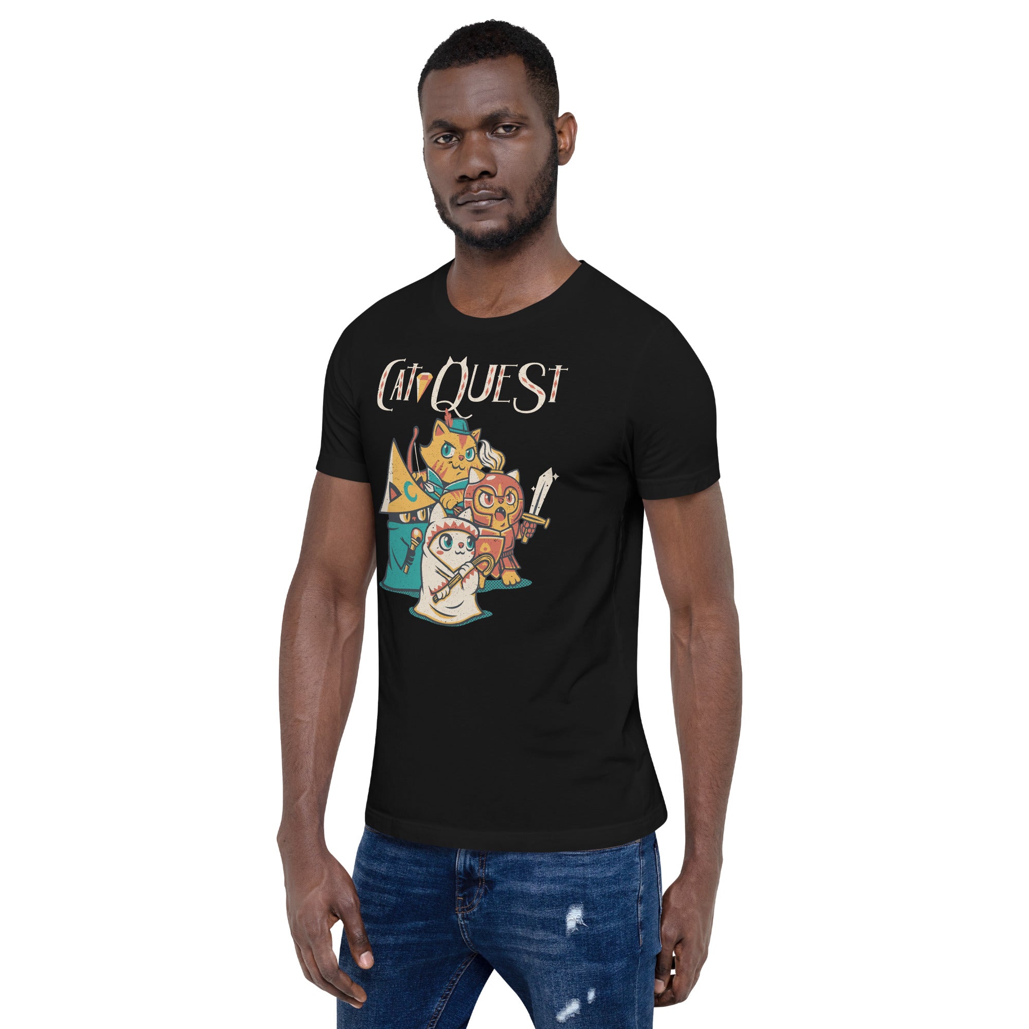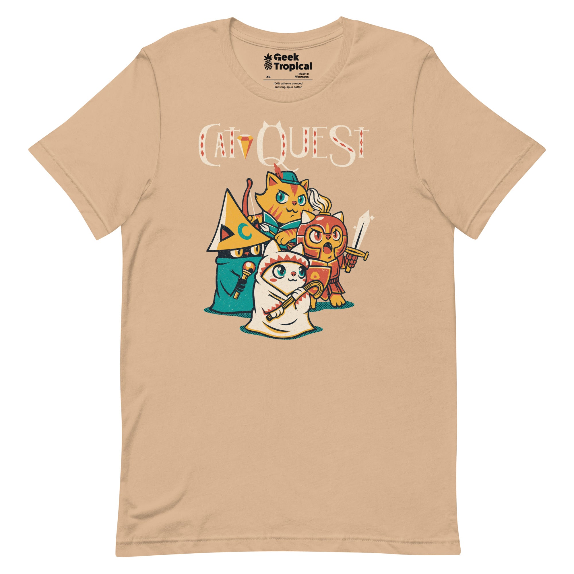RPG Cat Quest T-Shirt sends a feline adventurer on an epic journey, designed by Tobe Fonseca with playful fantasy energy and crisp, high-contrast art. The cat takes center stage, surrounded by quest-ready vibes that nod to tabletop nights and classic arcade adventures. Vivid, eco-inked print stays sharp through countless campaigns. Licensed artwork supports the creator—ideal for Dnd sessions, LAN hangs, and cozy cat naps.
