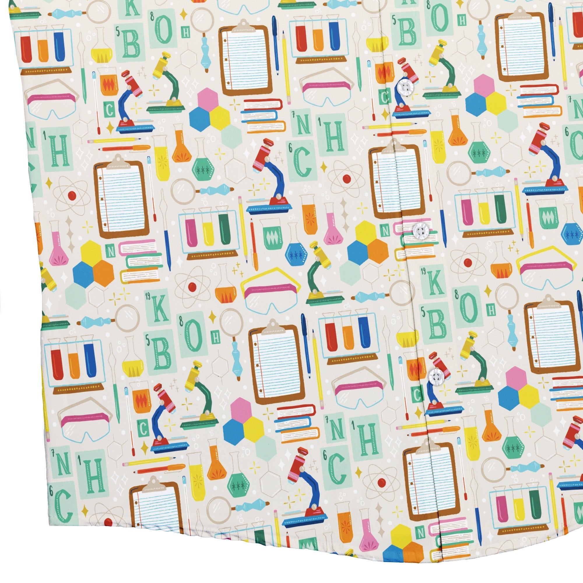 The Chemistry Tool Set Button Up Shirt turns lab love into daily style. A repeating array of illustrated lab essentials—sleek glassware and precision tools—flows across the shirt with nerd-approved order. Designed by Zirkus Design, the artwork aligns across the placket and optional pocket, and it's printed with eco-conscious inks. Wear it from lab meeting to lounge mode without missing a beat.