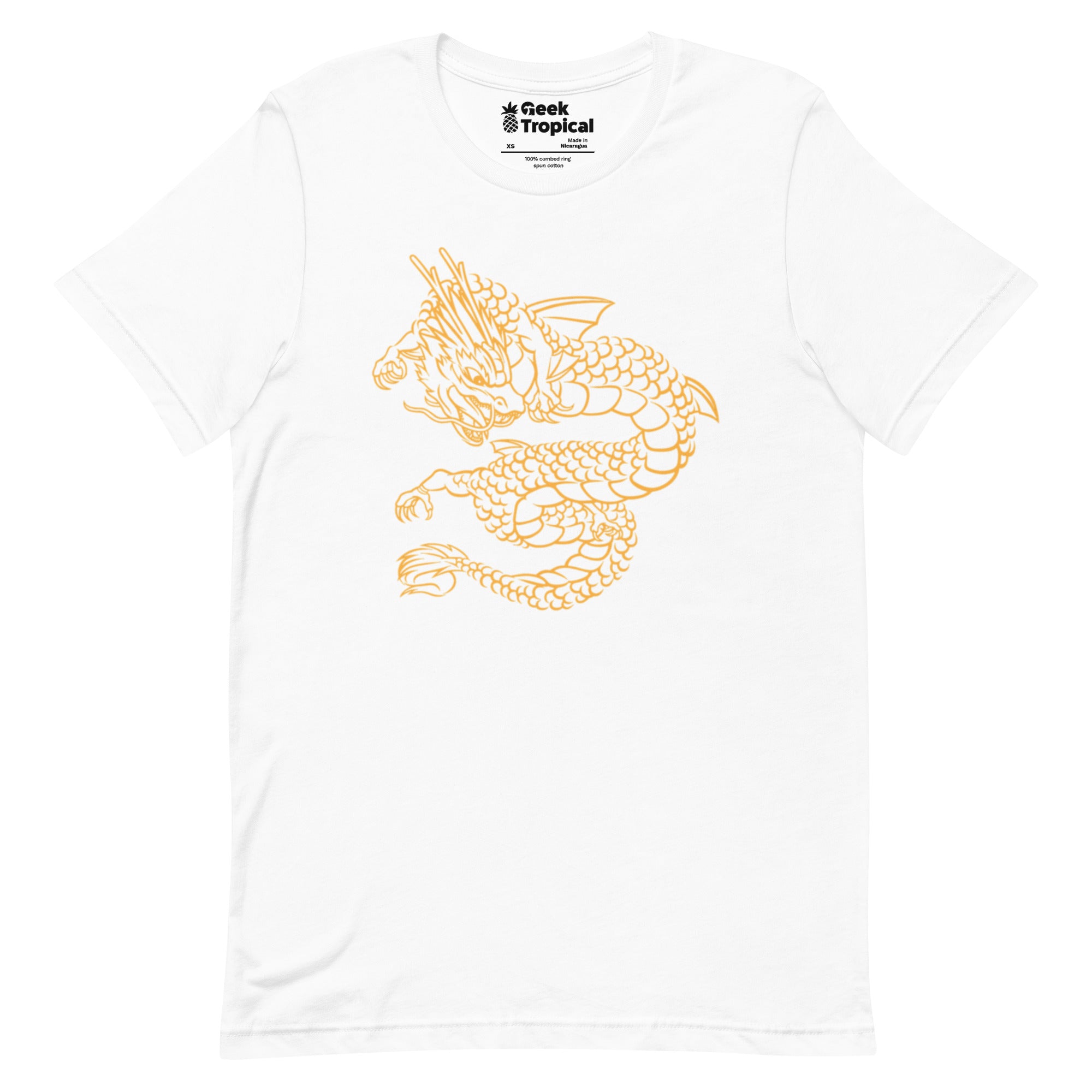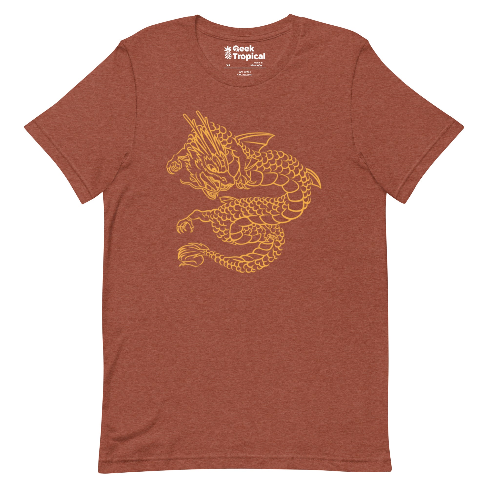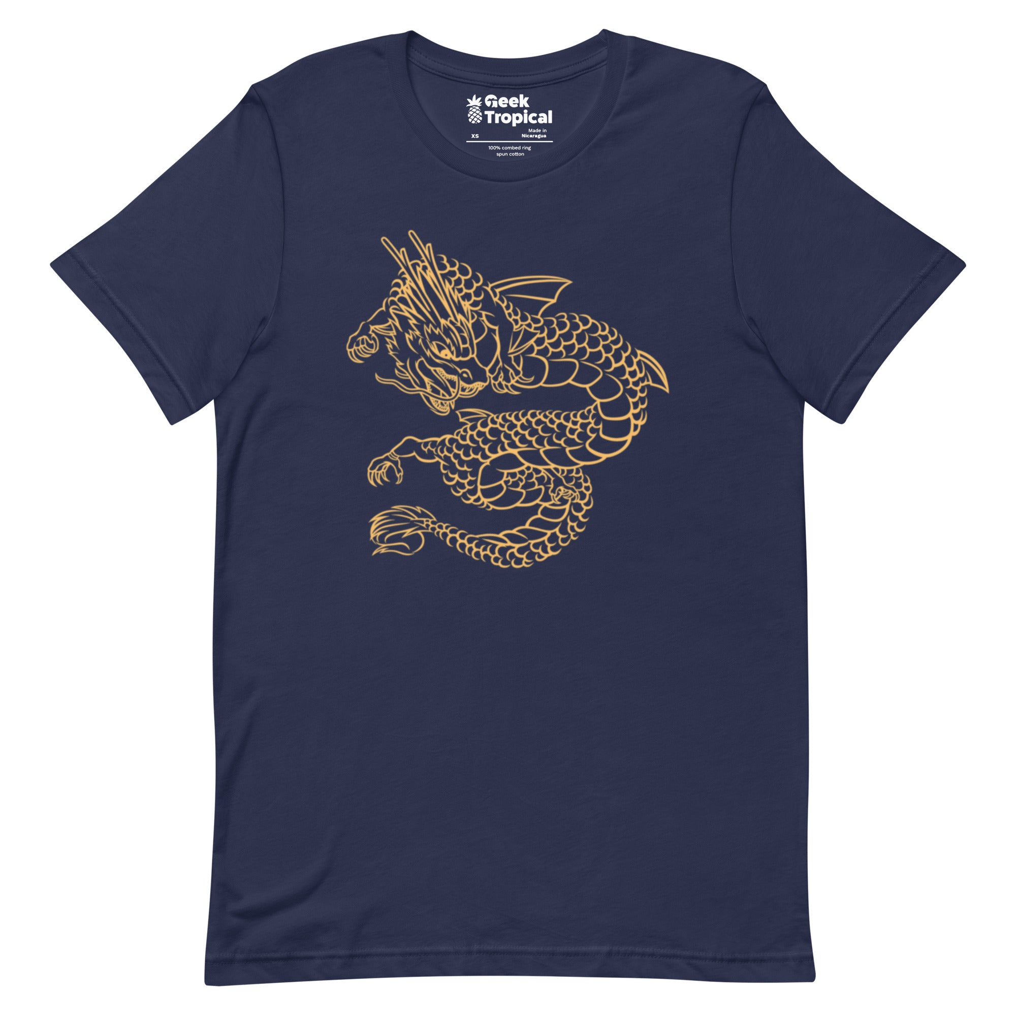The Chinese Golden Dragon T-Shirt channels mythic swagger: a gold-hued Eastern dragon coils in motion, whiskers streaming, scales finely rendered for fierce elegance. Designed by Tobe Fonseca, this artist-backed print fuses tradition and fantasy with crisp linework and rich contrast—ready for streetwear, festivals, or late-night Dnd quests. Soft on skin, strong on style, and responsibly made to keep the art vivid.