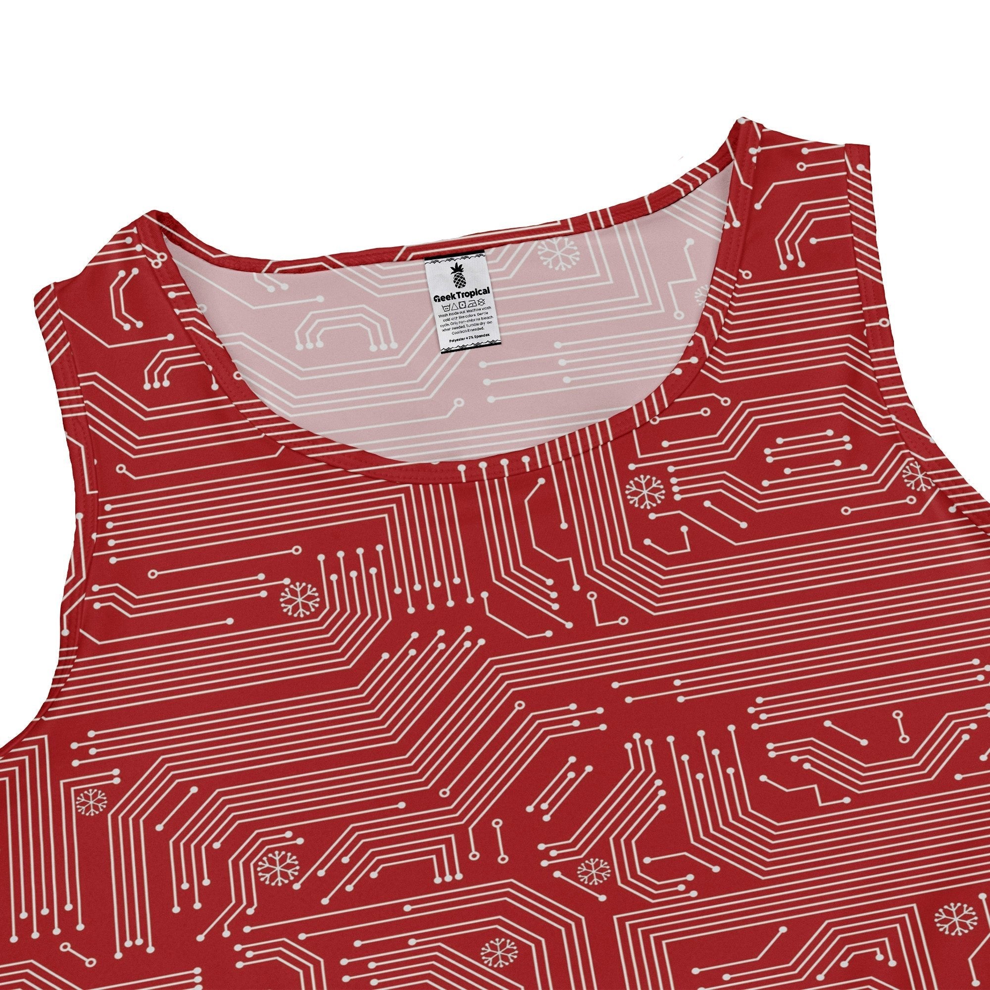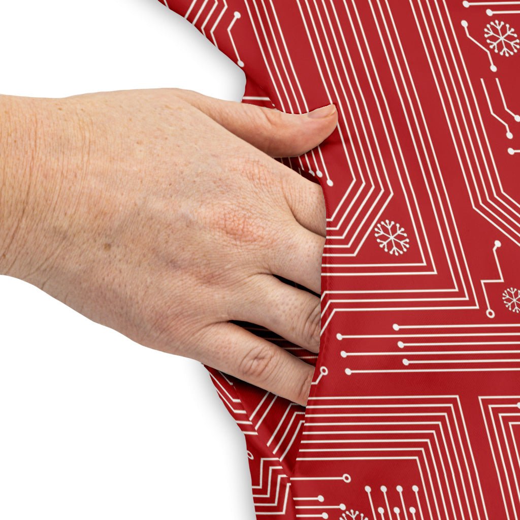 The Christmas Red Computer Circuit Board Dress dials up festive flair with crisp white PCB traces, chips, and tiny vias mapped across a deep holiday red. Smooth, breathable stretch keeps you comfy while the easy silhouette reads laid-back yet polished. Stealthy side pockets hold your essentials—yes, even a game controller. Geeky, confident, and artist-backed, it’s ready for parties, office days, and cozy game nights.