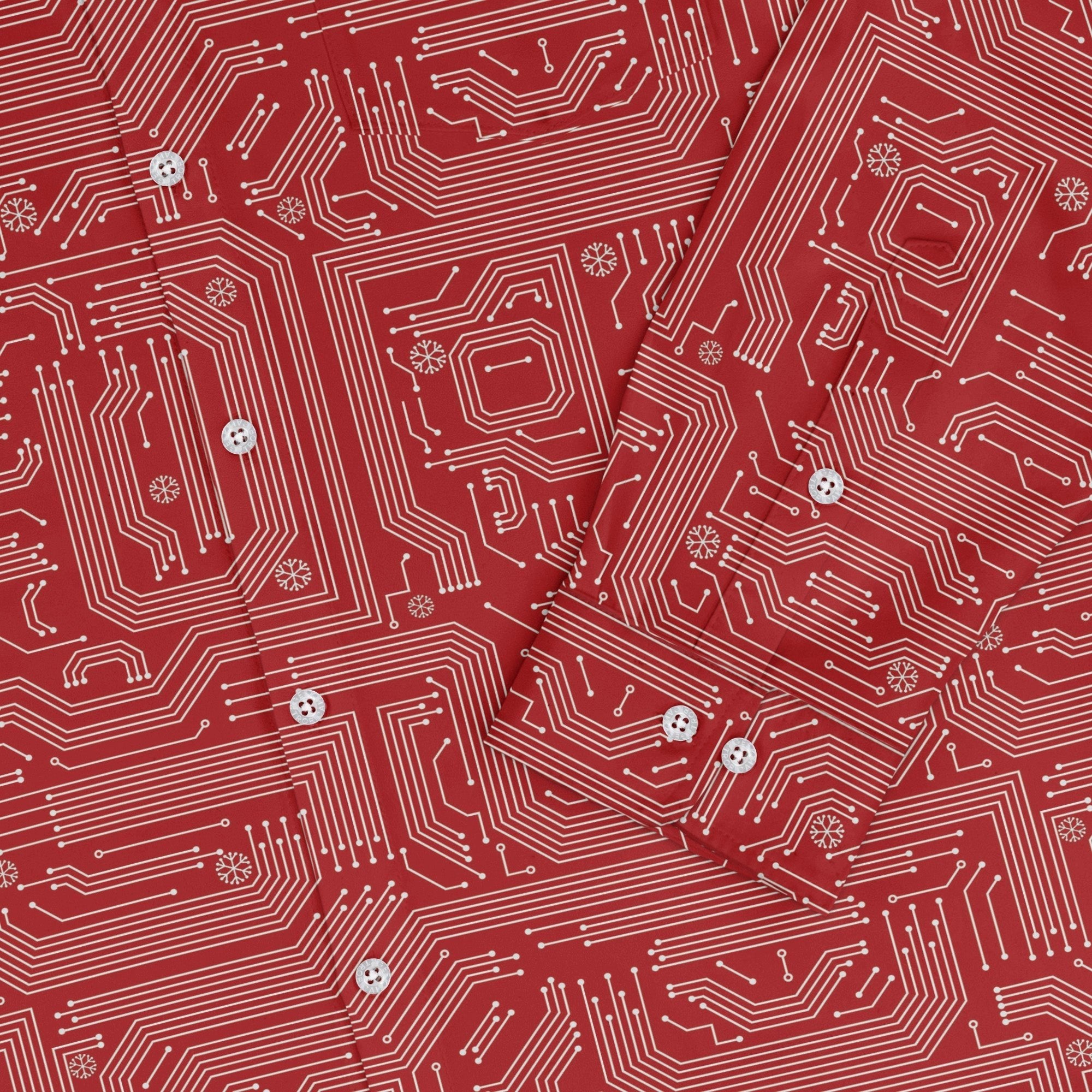 Christmas Red Computer Circuit Board Long Sleeve Button Up Shirt