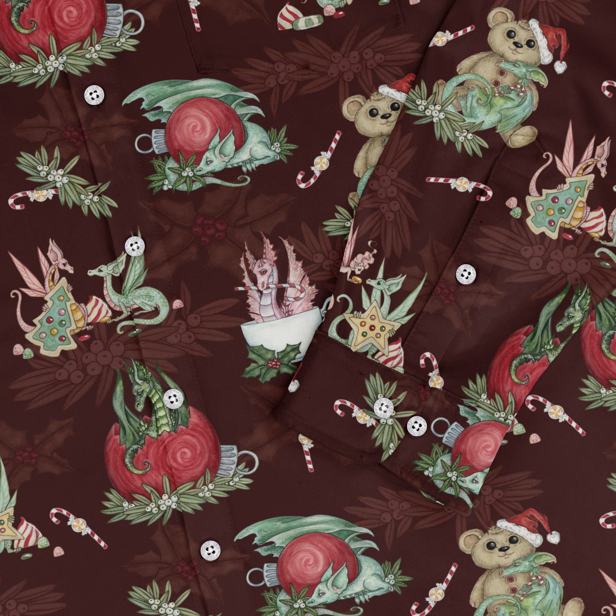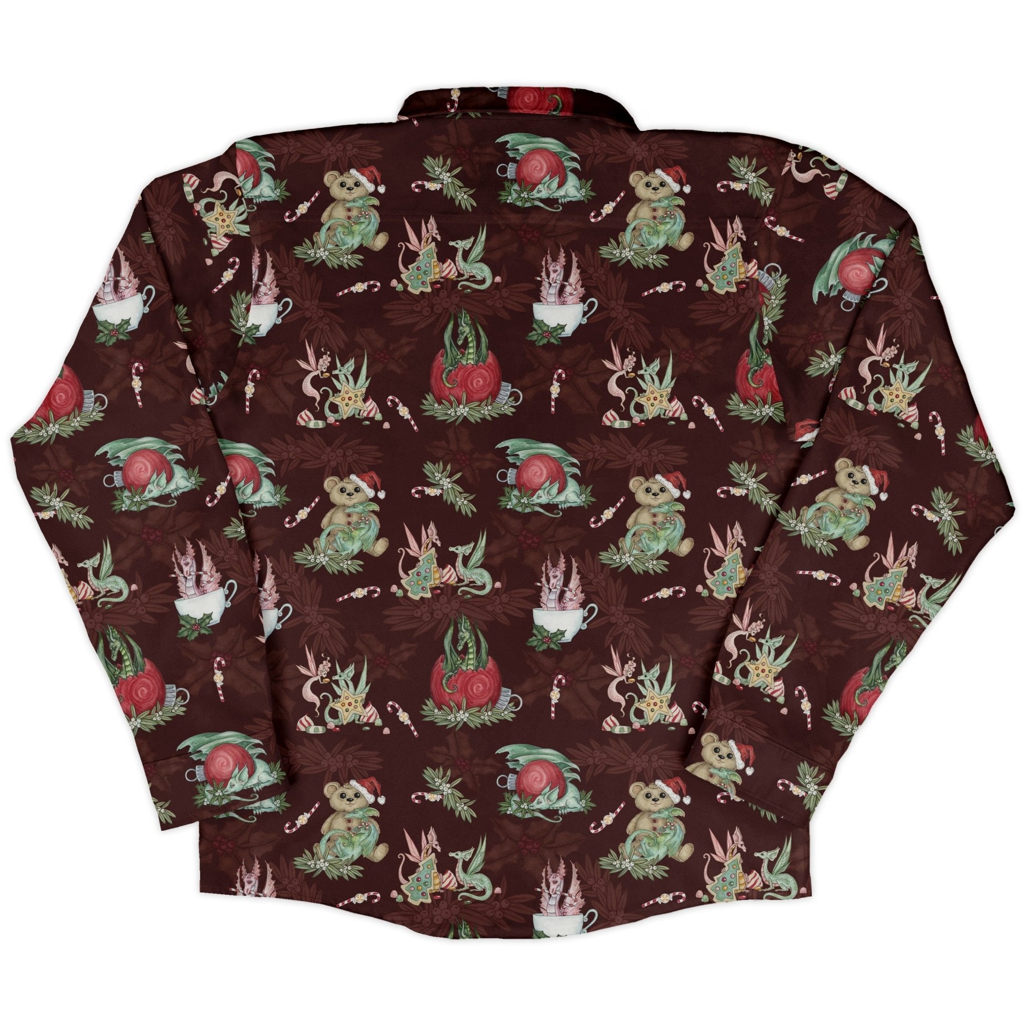 Christmas Time with Dragons Long Sleeve Button Up Shirt