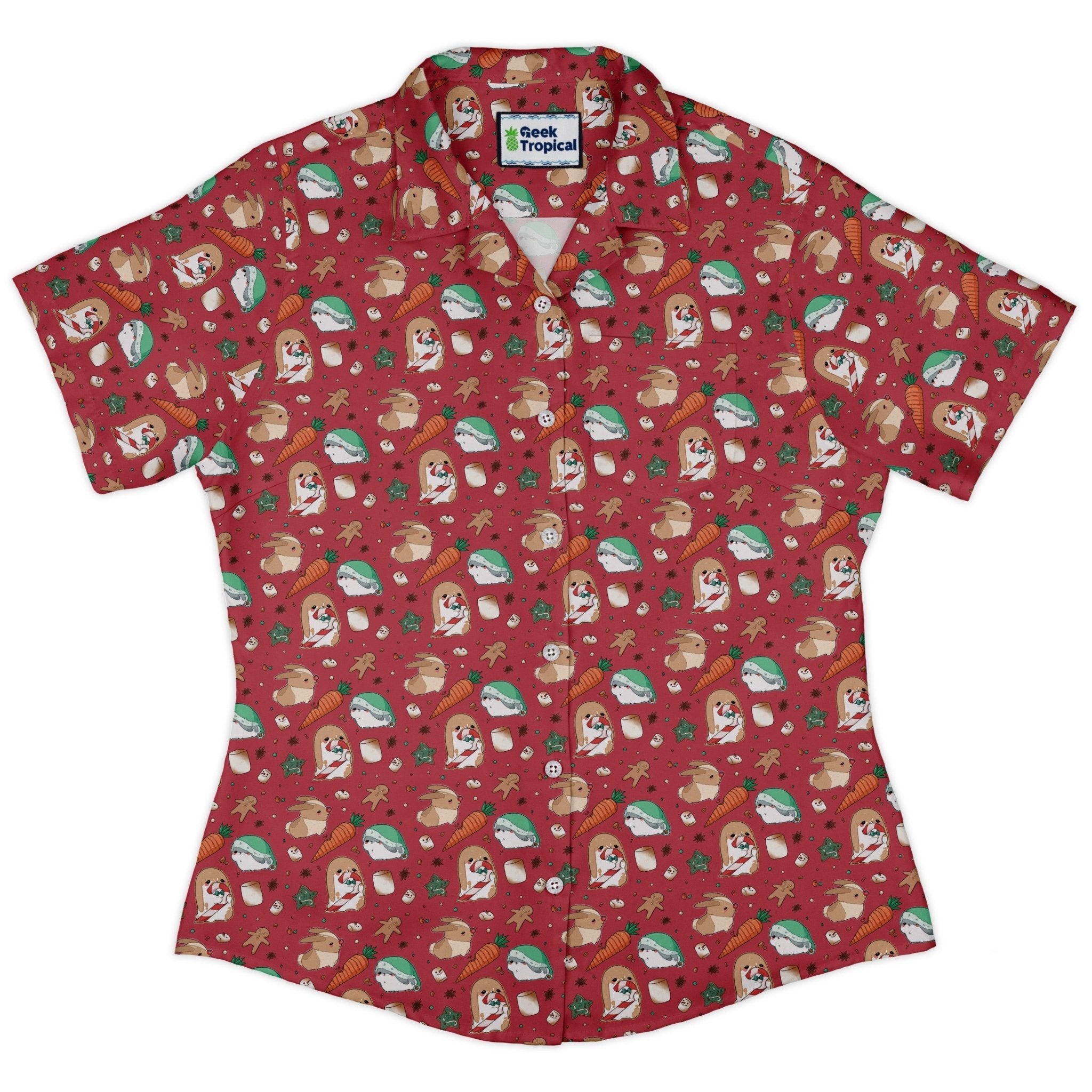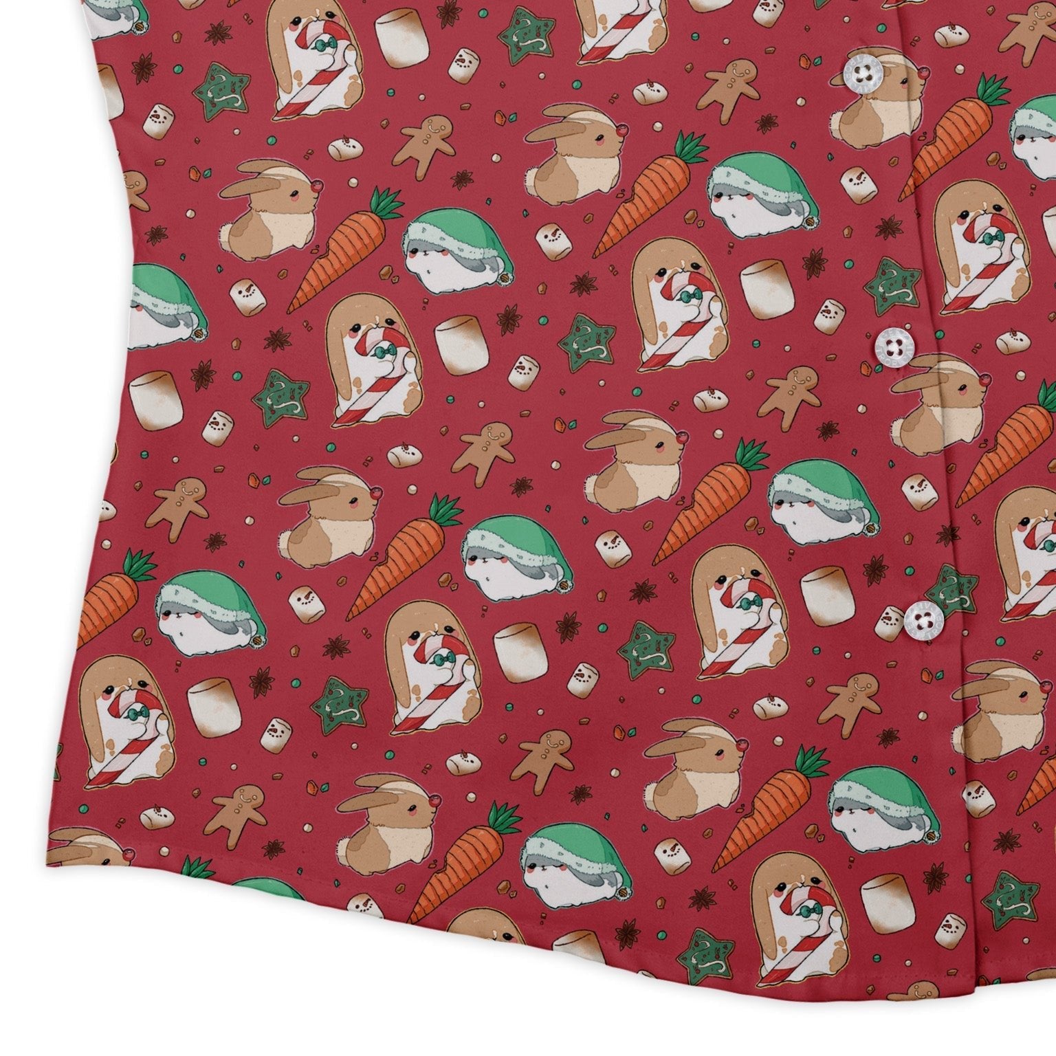 Meet the cinnamon anime bunnies Curvy Button Up Shirt—cute, cozy, and confidently geeky. A warm cinnamon palette frames expressive anime bunnies in a festive repeat, designed by Ardi Tong. Tailored for curves with a clean, untucked-ready shape, it feels easy all day. Seam-matched pocket keeps the art flowing, branded buttons finish the look, and eco-friendly inks make every hop a little greener.