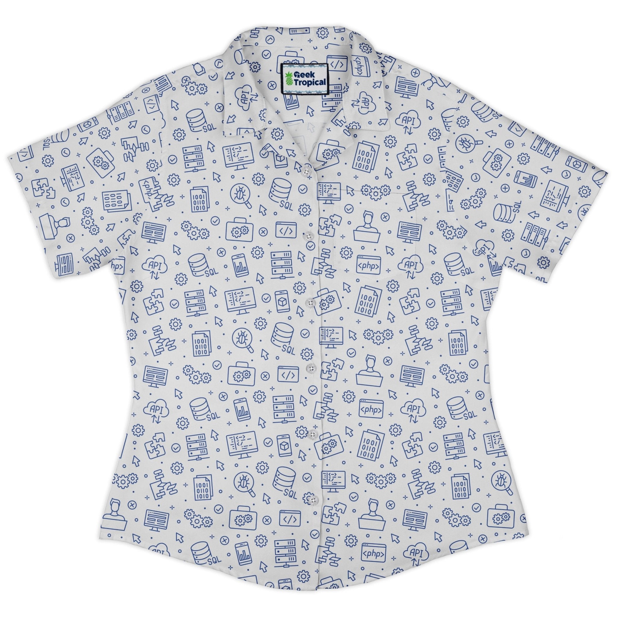 Clearance Ready-to-Ship Computer Software Engineer White Curvy Button Up Shirt