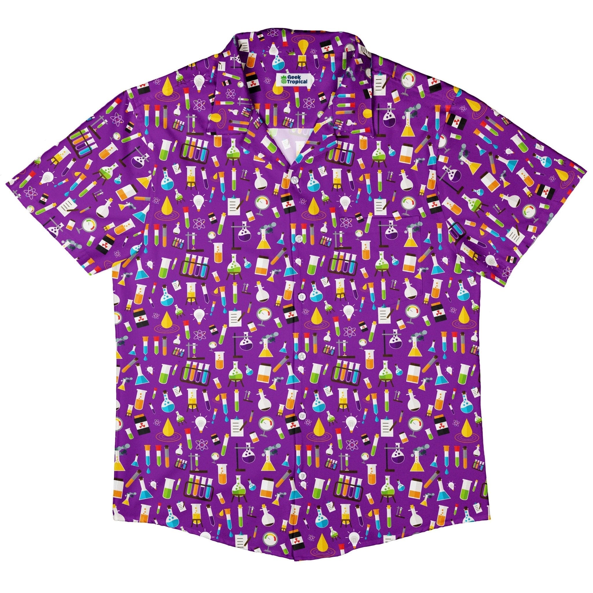 Clearance Ready-to-Ship Lab Beakers Purple Science Button Up Shirt