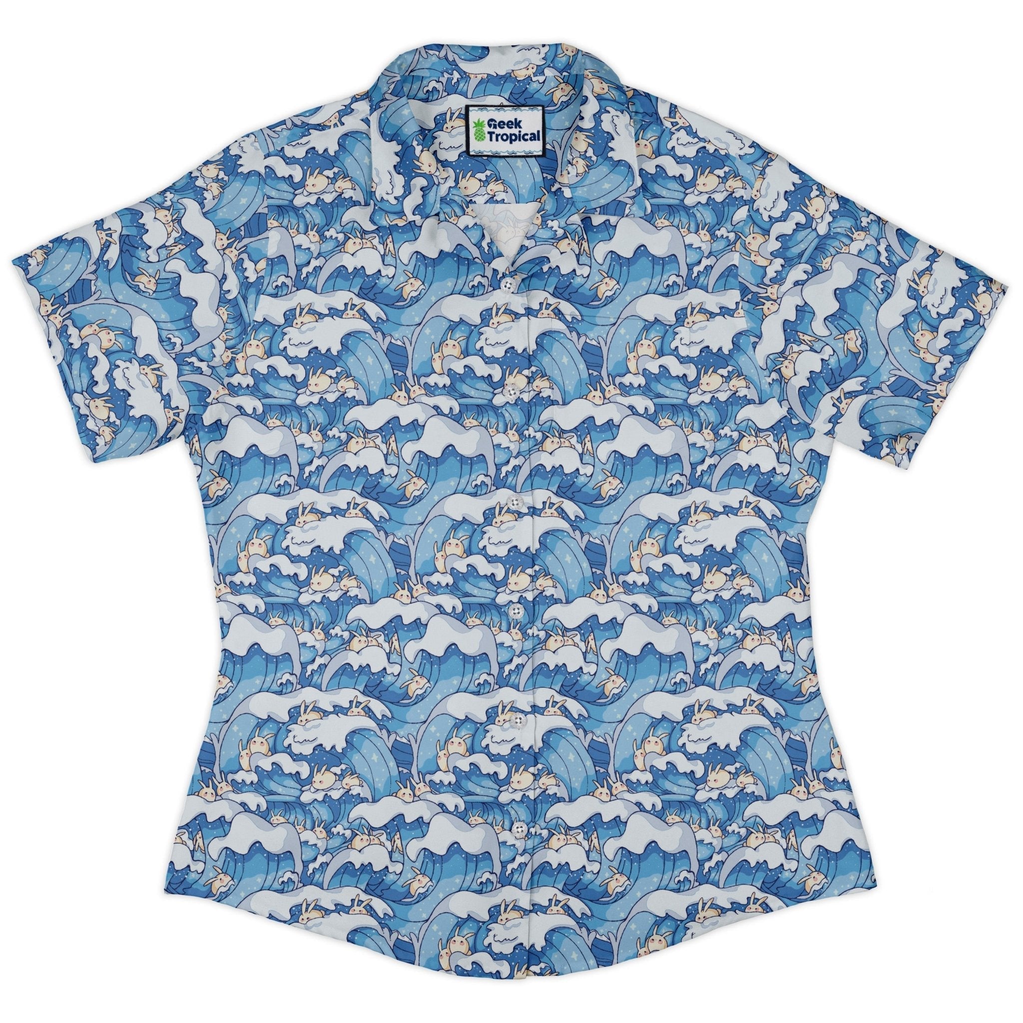 Clearance Ready-to-Ship Surfer Bunnies Anime Curvy Button Up Shirt