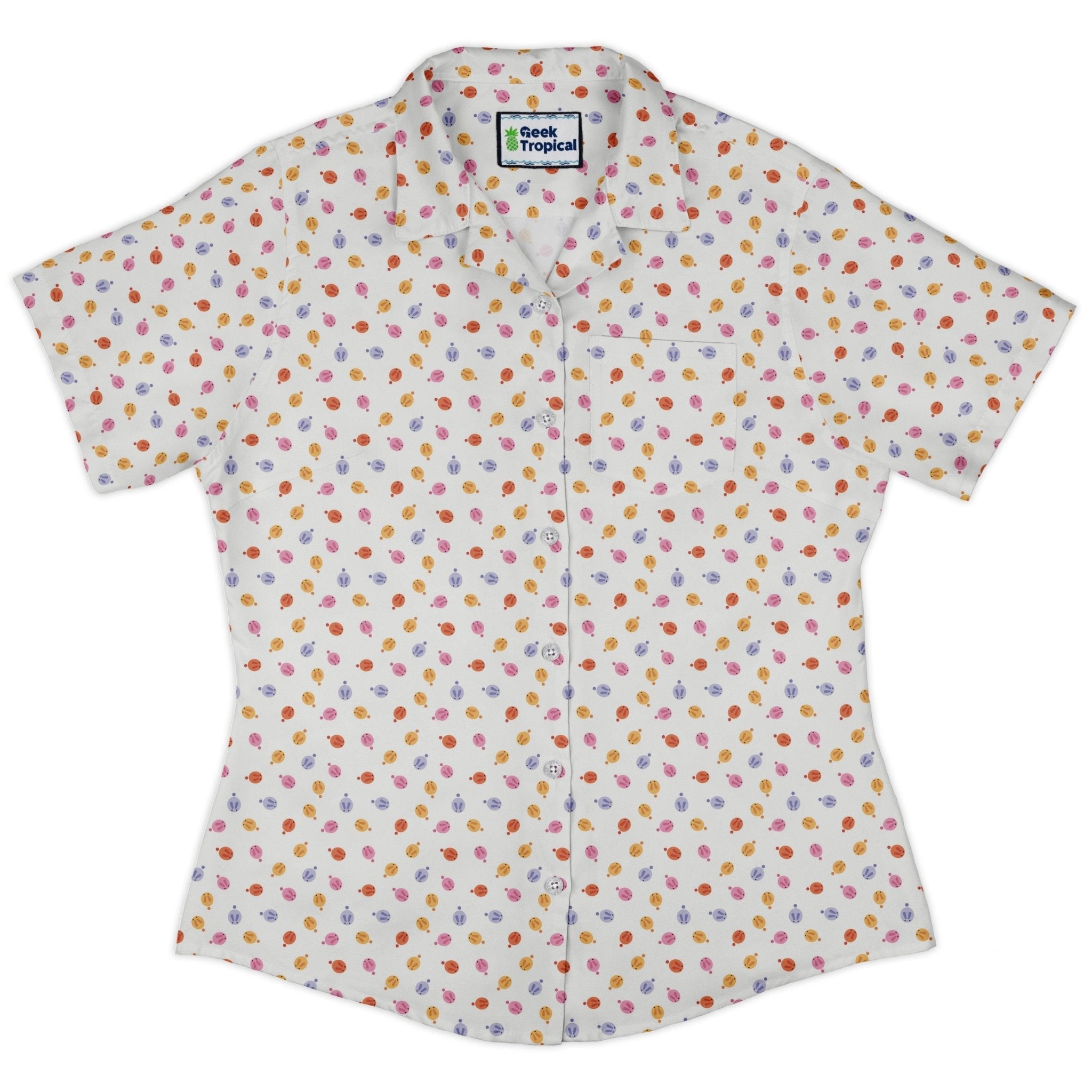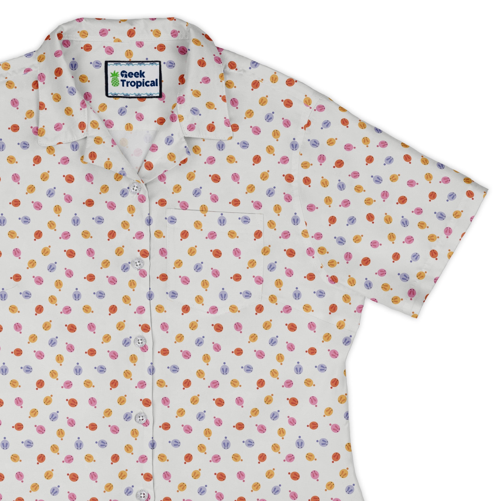 The Colorful Wagashi Rabbits Curvy Button Up Shirt plates up confectionary whimsy with geek-grade style. Mochi‑inspired bunnies and wagashi sweets parade across the print in bright, dessert‑toned pastels, blending anime‑influenced charm with crisp, modern lines. The curvy cut flatters without fuss, easy to dress up or down. Designed by Ardi Tong, printed with planet‑kind inks, and proudly supporting independent art.