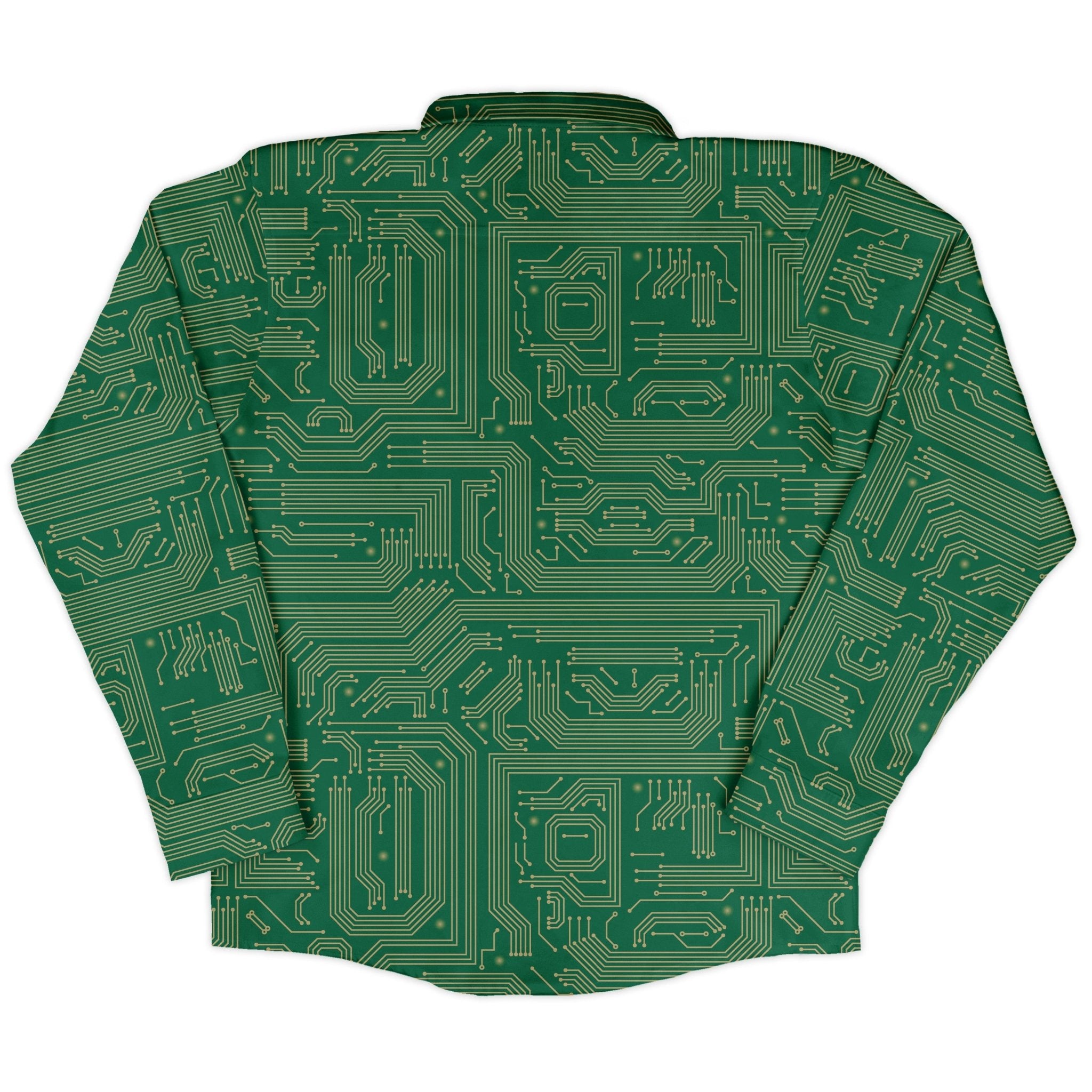 computer circuit board yellow green Long Sleeve Button Up Shirt