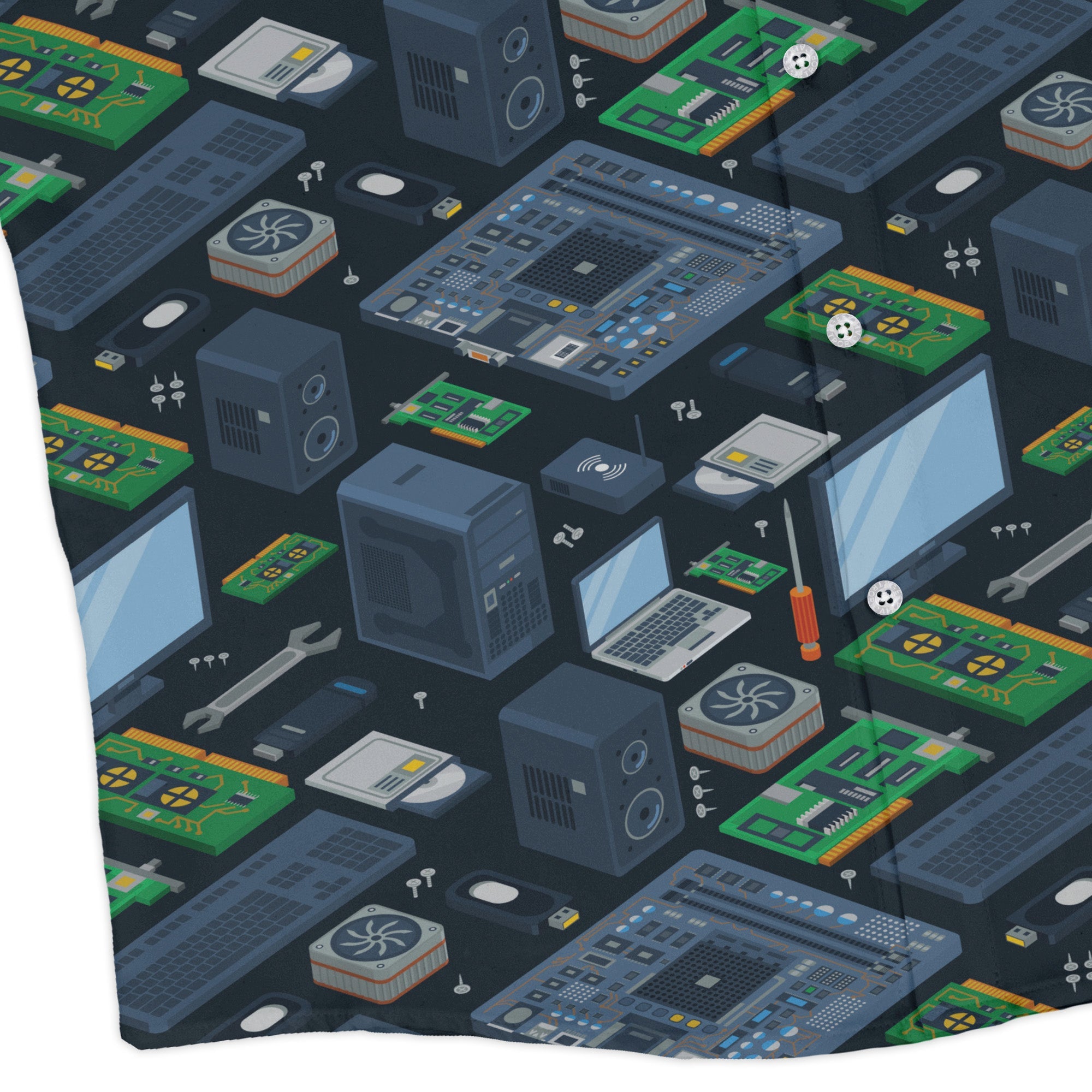 Computer Electronic Parts Dark Navy Long Sleeve Button Up Shirt