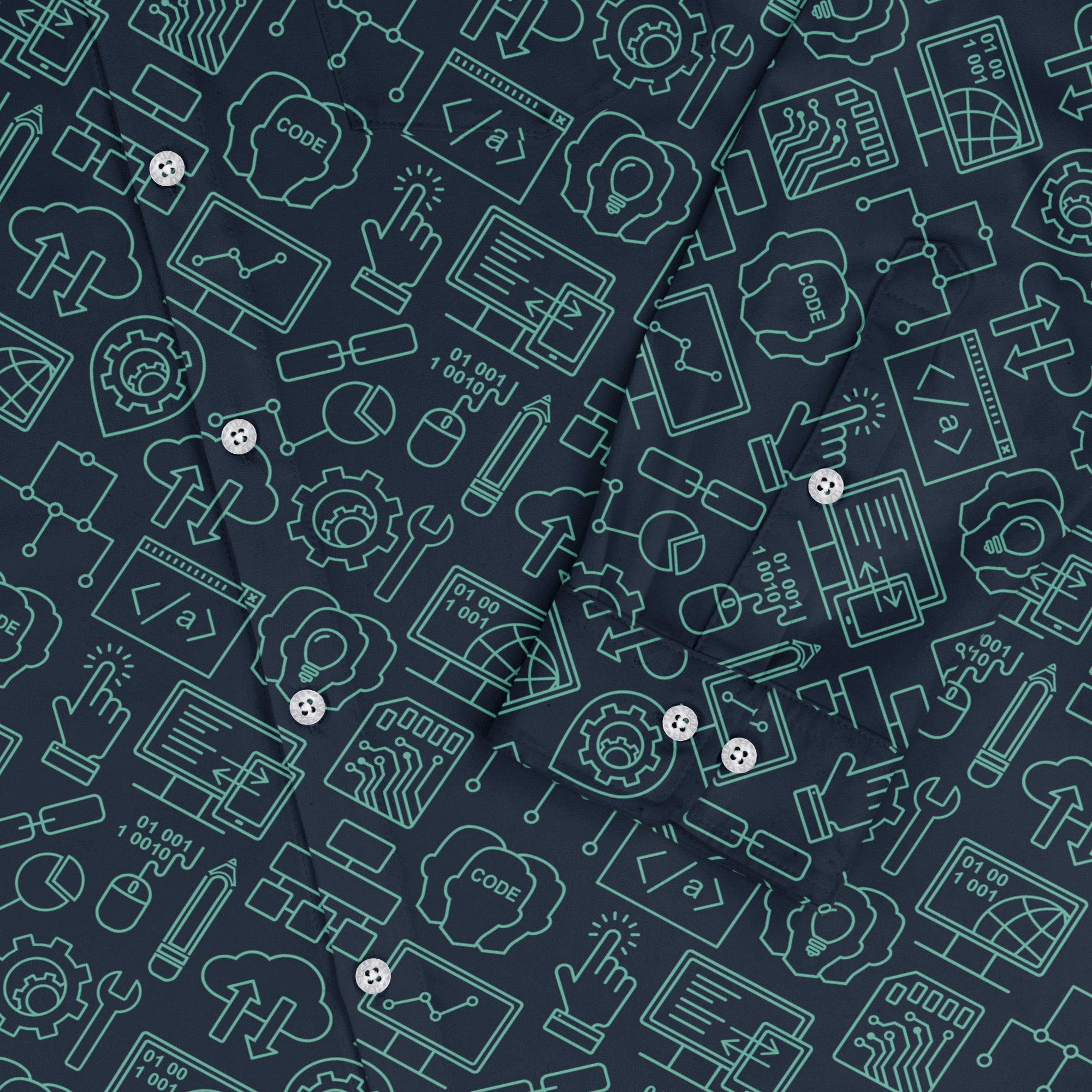 The Computer Internet Technology Long Sleeve Button Up Shirt brings your inner coder to the surface with an all-over tech motif that broadcasts keyboard-warrior cred from collar to cuff. Clean lines, matched patterning across the chest pocket, and polished buttons make it boardroom-to-boardgame ready. Soft, breathable comfort keeps you in the flow, and every artist-backed print keeps creativity online IRL.