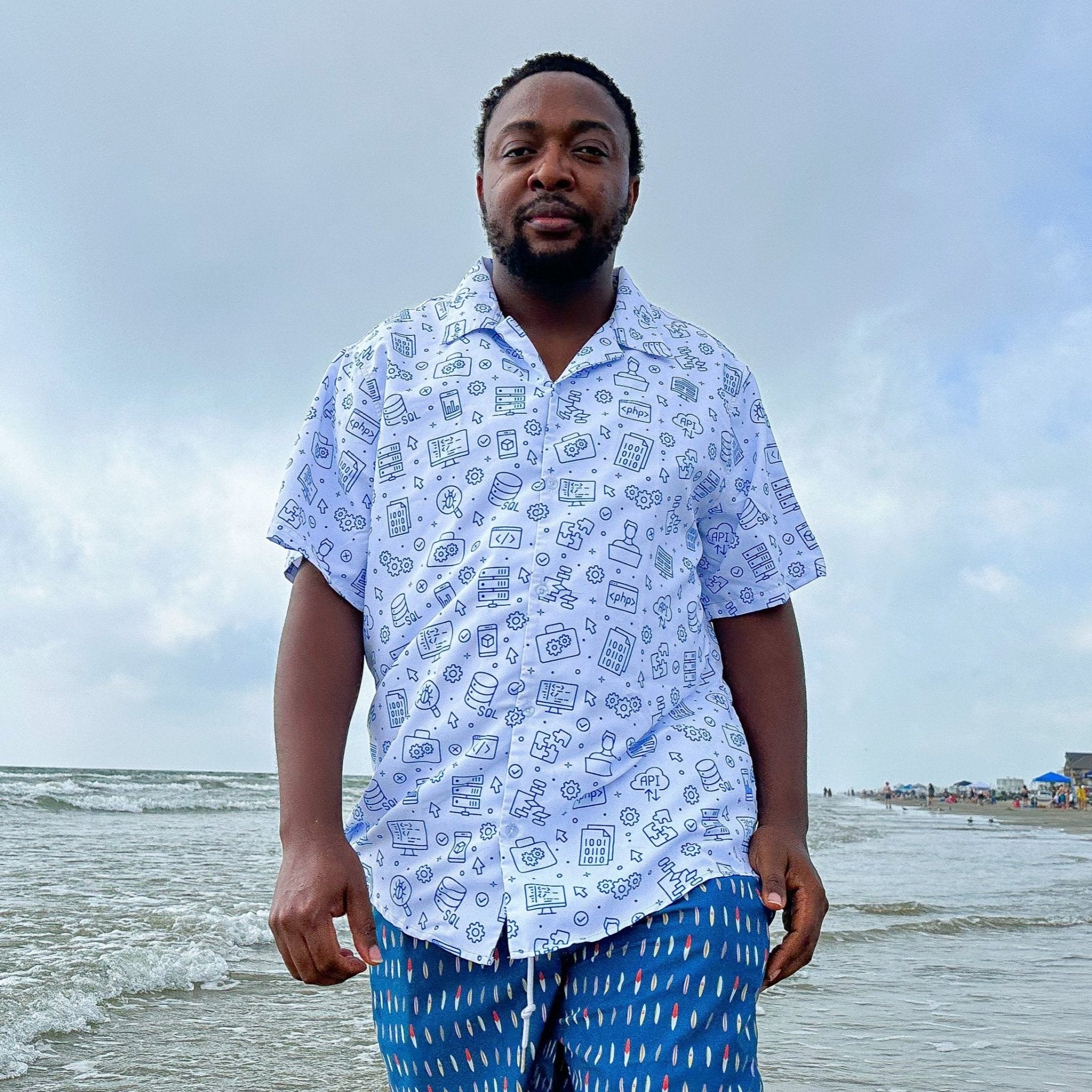 Meet the Computer Software Engineer White Button Up Shirt—crisp, white, and quietly nerdy. A subtle microprint of black, computer-themed icons and schematic lines pattern the fabric, reading clean and professional from a distance and delightfully geeky up close. Tailored for everyday comfort with an easy drape, it levels up standups, code reviews, and date nights. Licensed, artist-backed artwork; smart, simple, undeniably you.