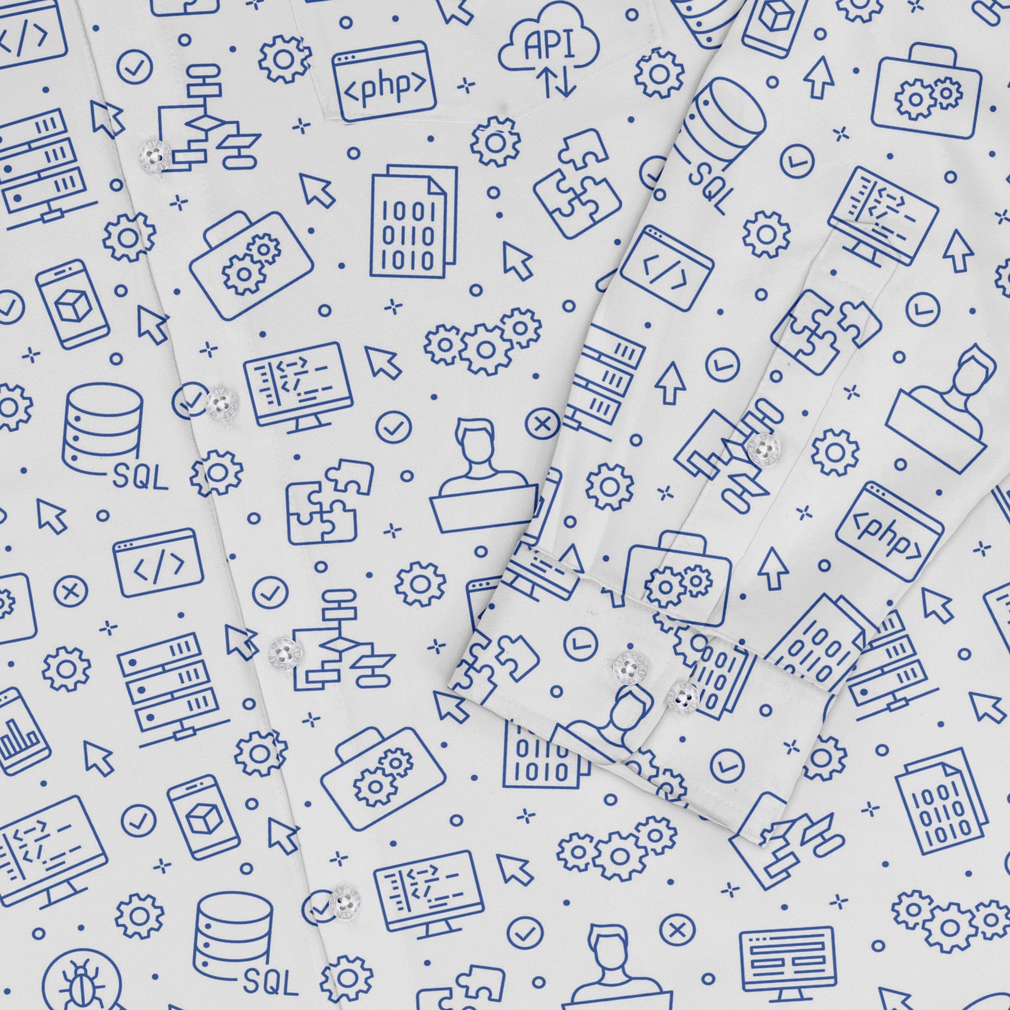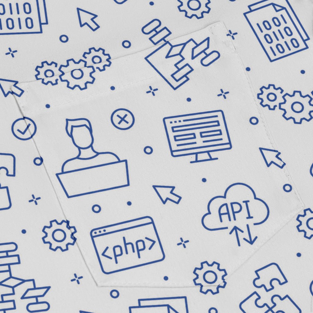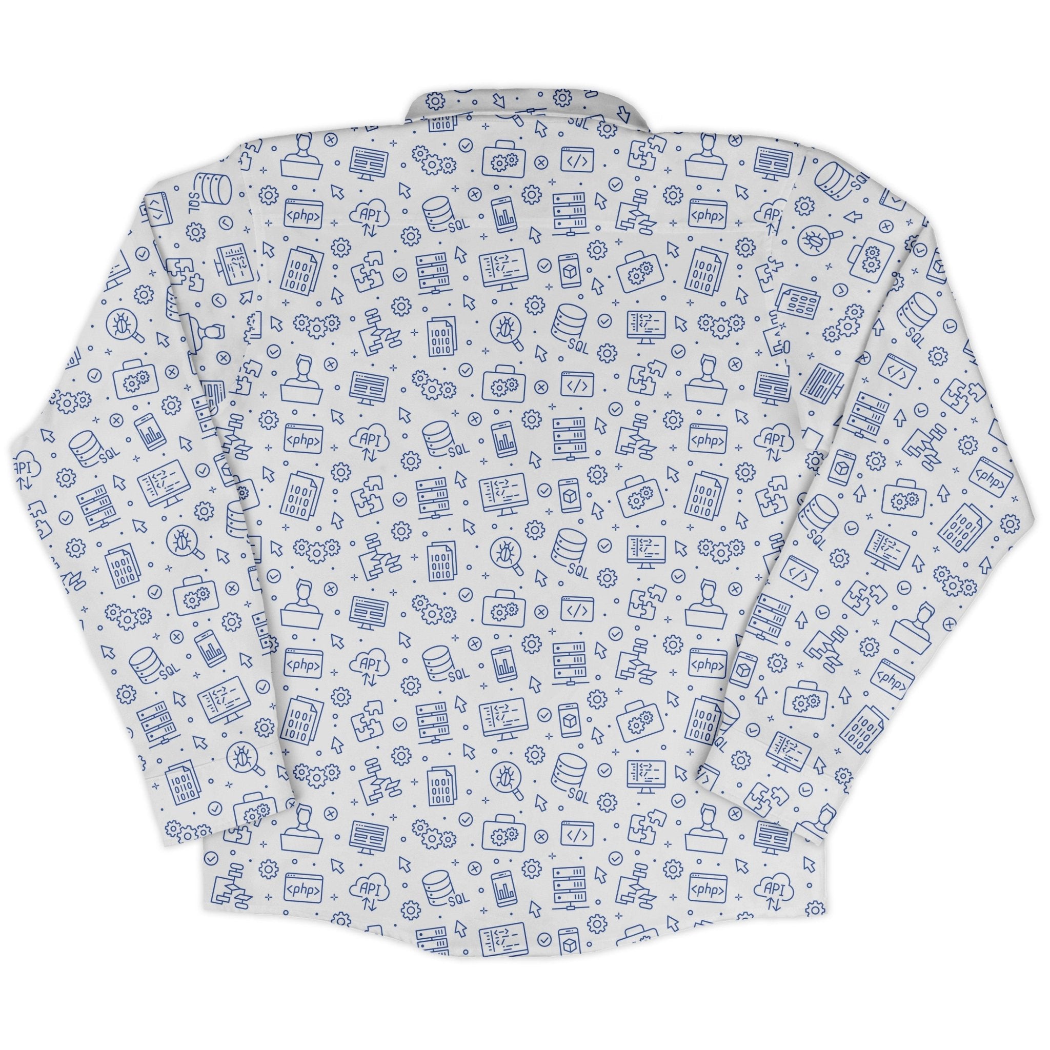 The Computer Software Engineer White Long Sleeve Button Up Shirt turns clean, professional vibes into subtle geek cred. A crisp white base carries a tidy, repeating computer print—minimalist, code-inspired, and meeting-friendly yet playful enough for game night. The pattern flows across the pocket for a seamless look, and the regulaxed cut keeps it easy to wear. Artist-backed and printed with eco-conscious inks for smart style with a smarter footprint.