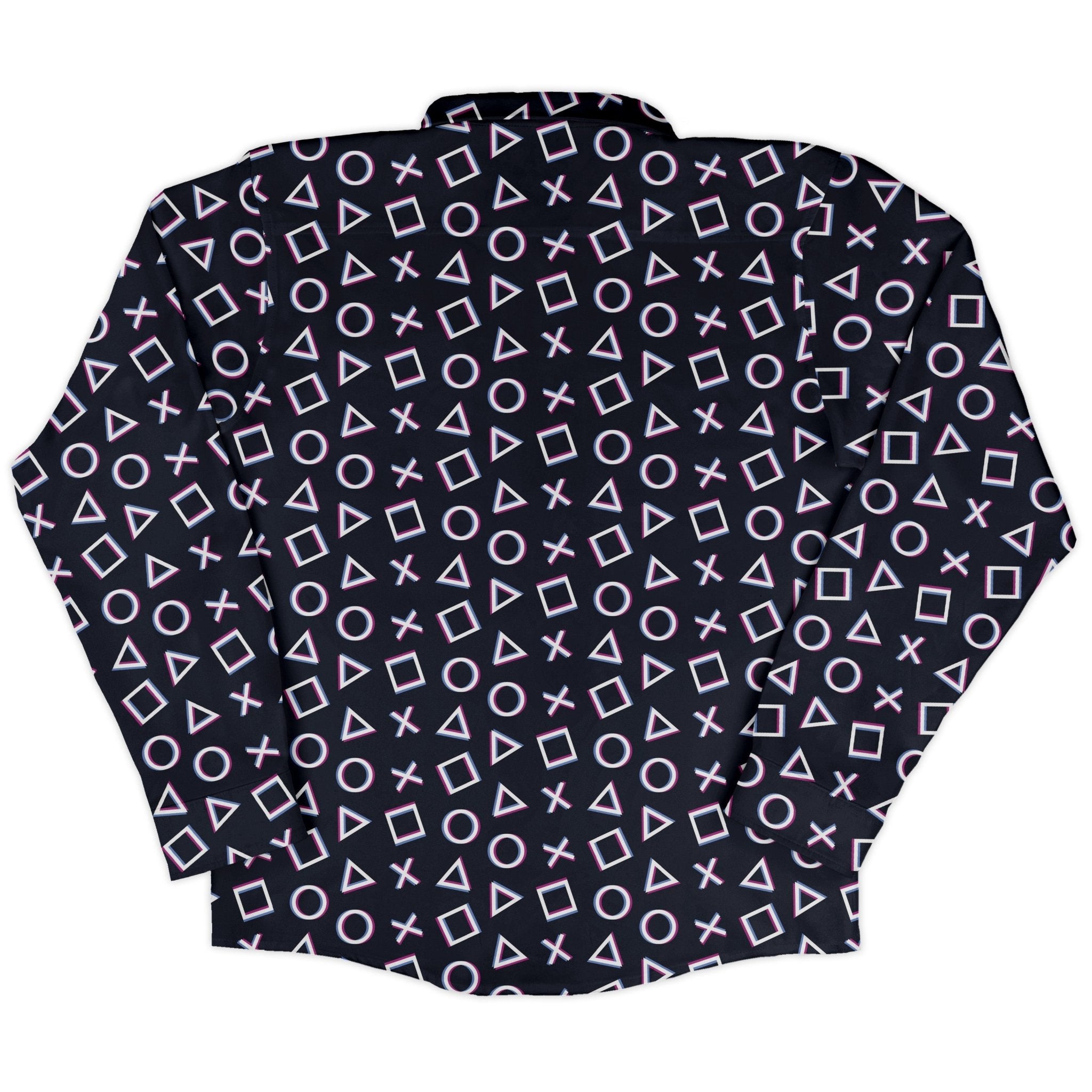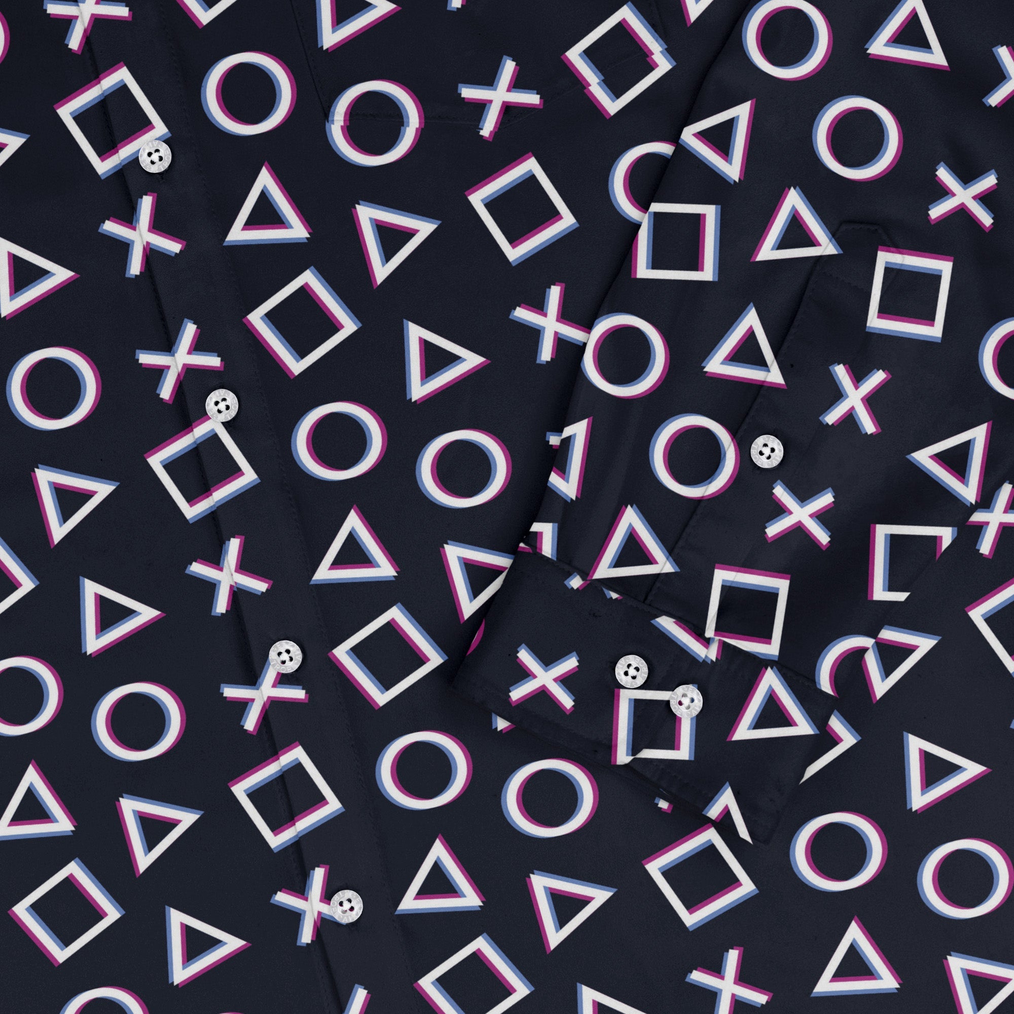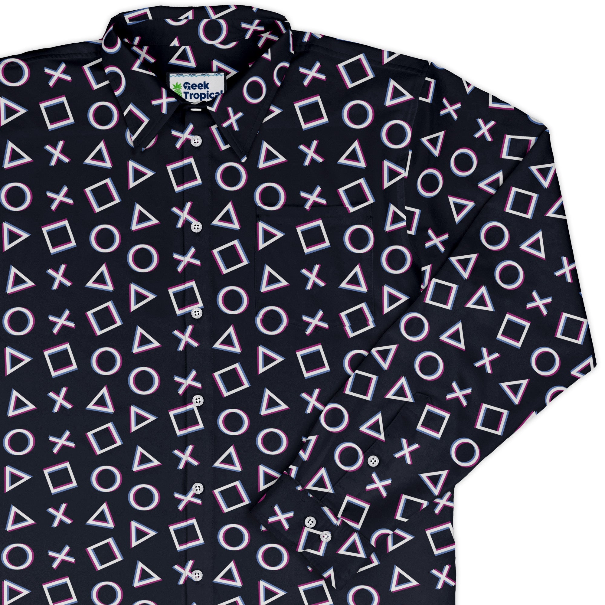 Controller Gamepad Buttons Gray Video Game Long Sleeve Button Up Shirt