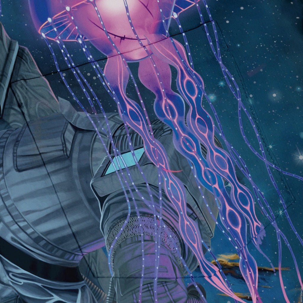 The Cosmic Encounters Button Up Shirt launches your look into orbit with an all-over constellation of astronauts and celestial bodies drifting across a star-sprinkled sky. Designed by Vincent Hie, the artwork flows cleanly over the placket and pocket for a seamless scene. Subtle board-game nods keep the theme on point—perfect for game night or daily wear. Artist-backed, playful, and confidently cosmic.